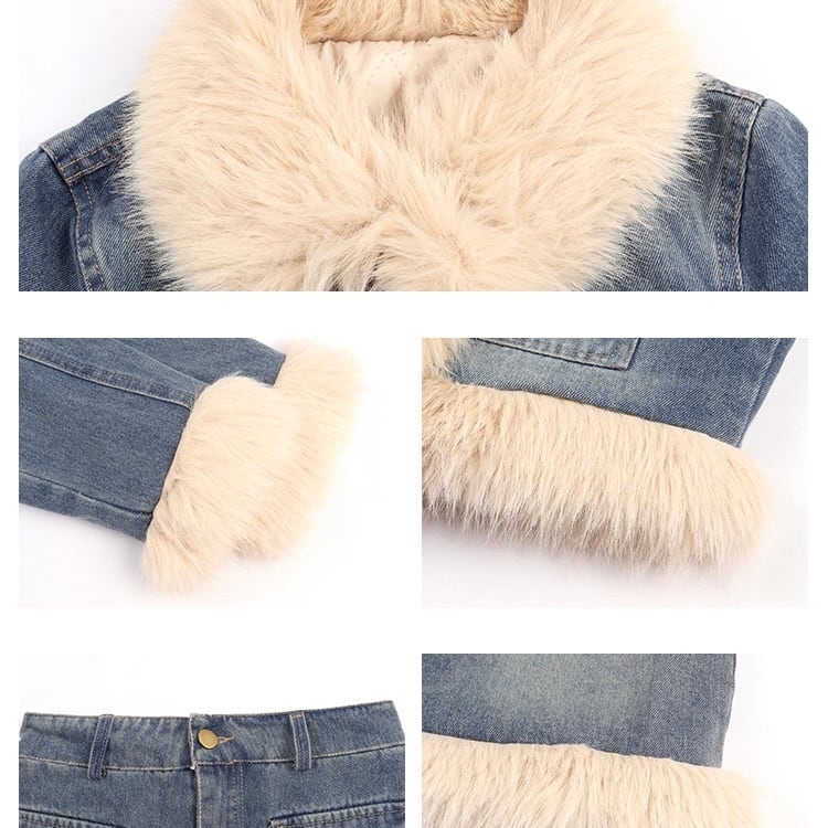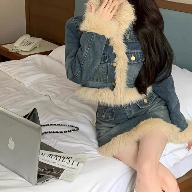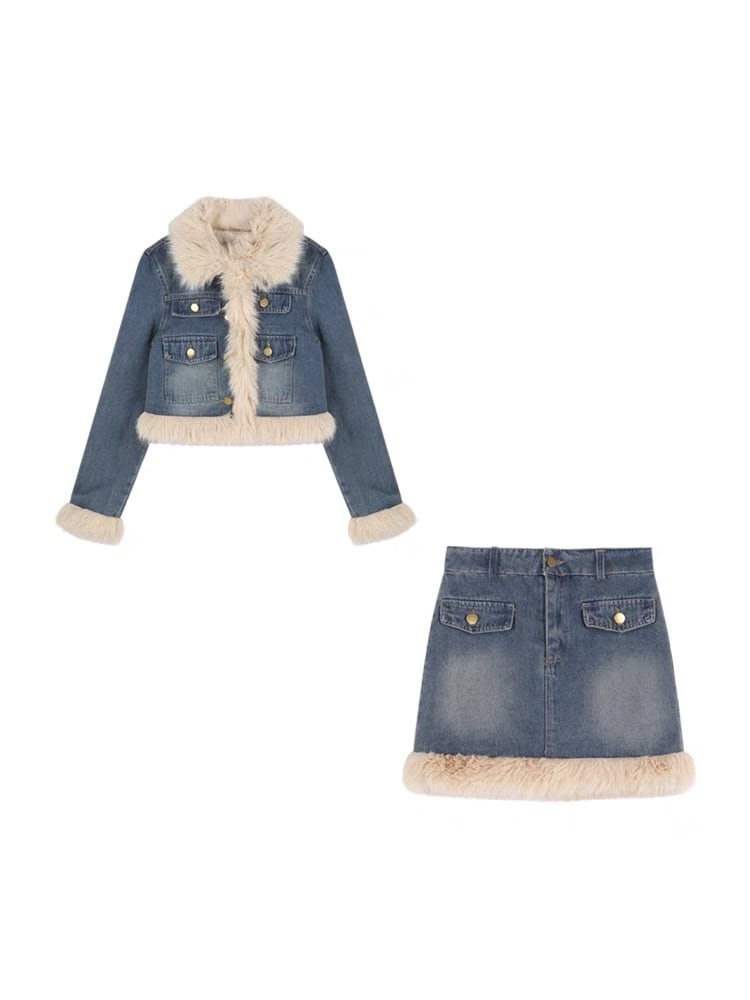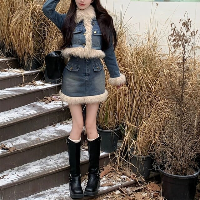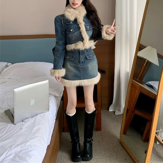 【set】ファーデニムジャケットxスカート AK1008