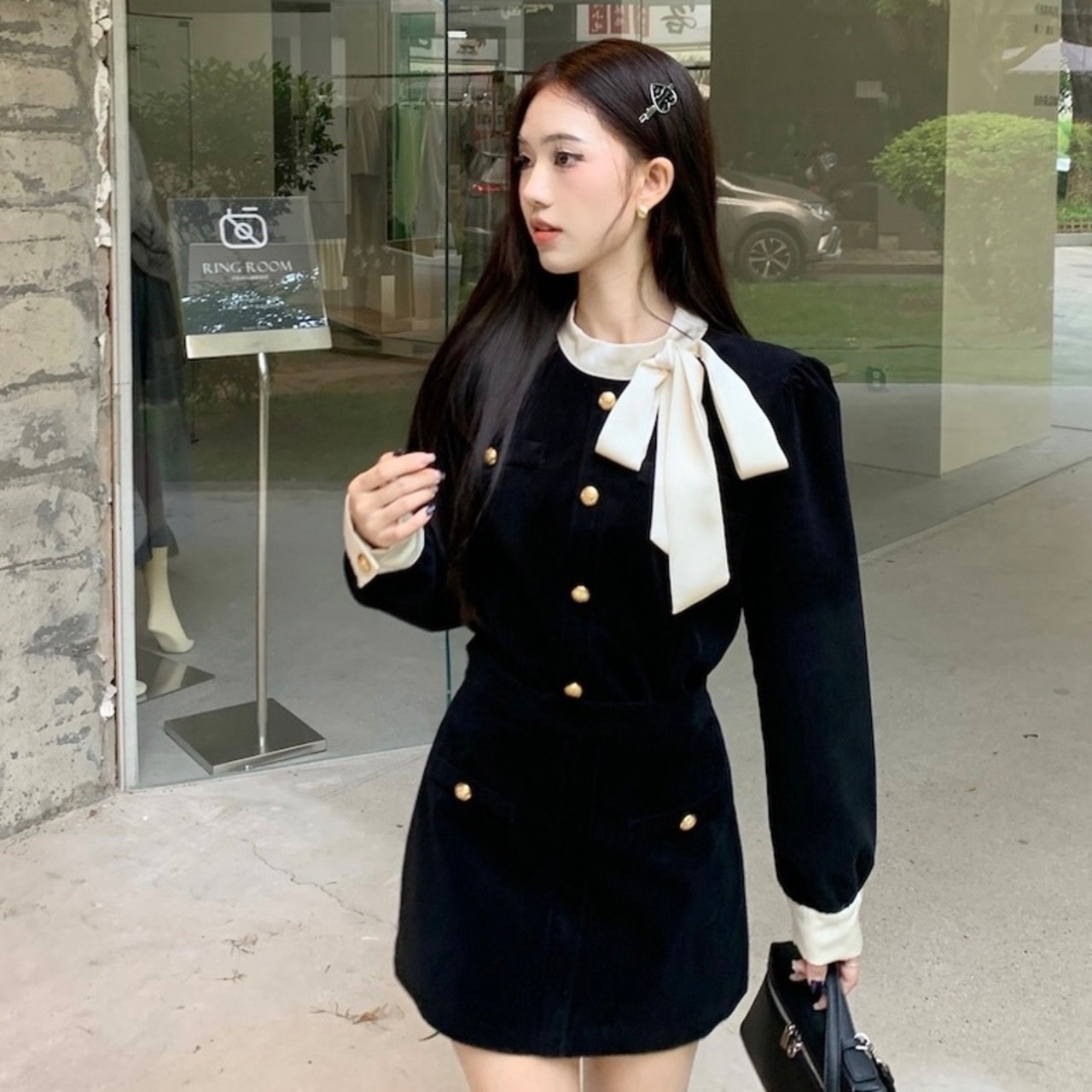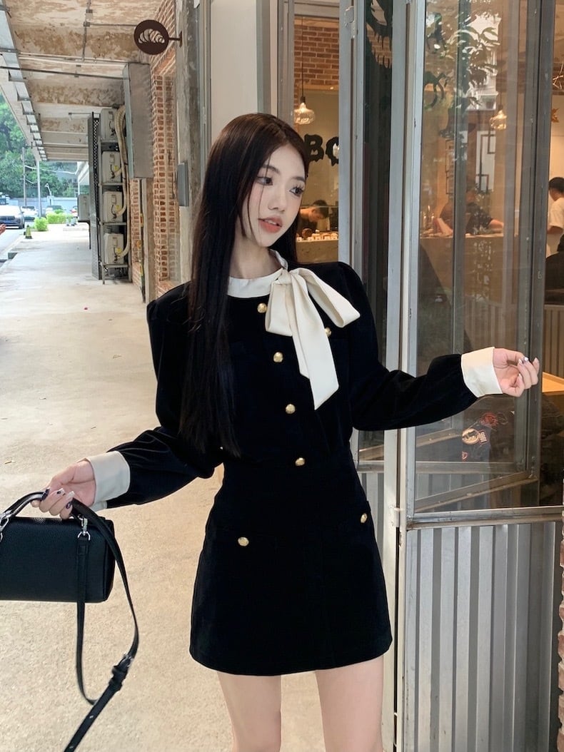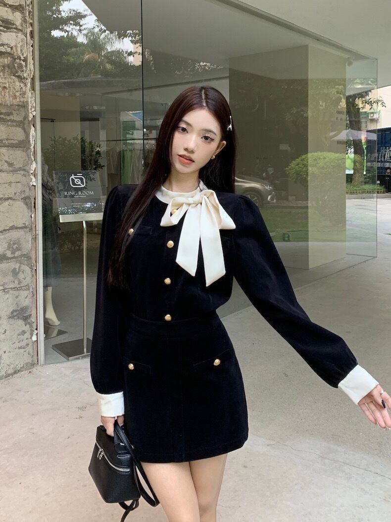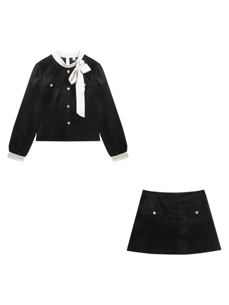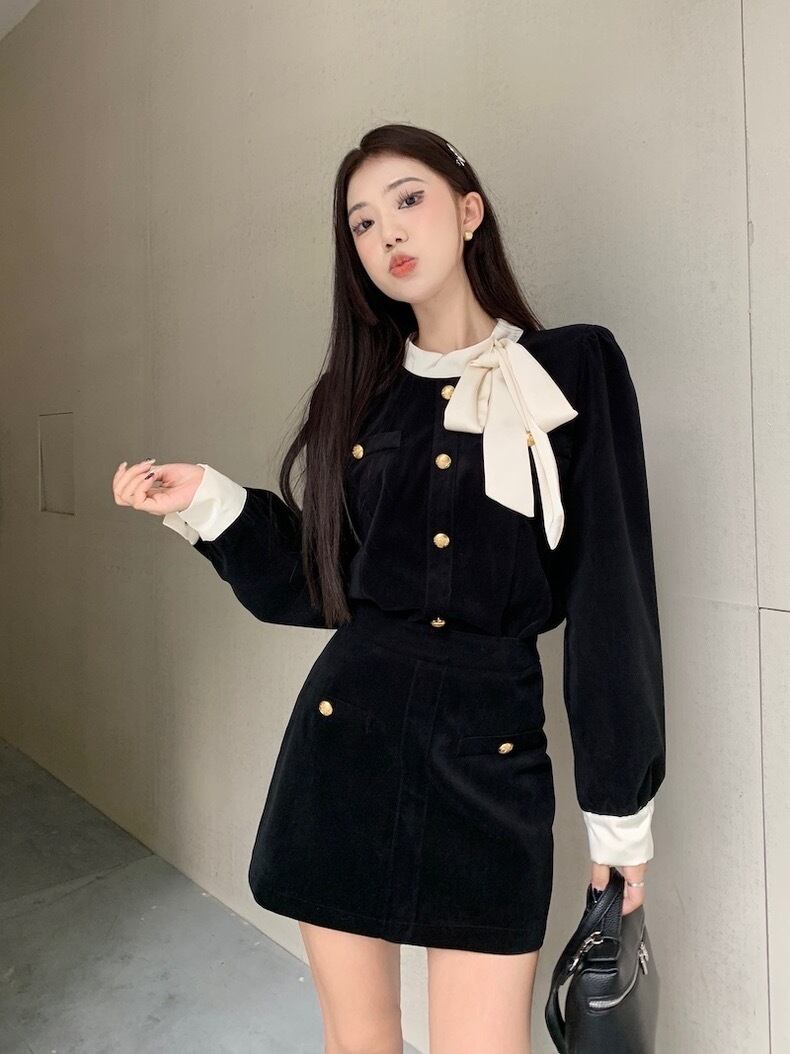 【set】リボンデザイントップスxミニスカート AN1004