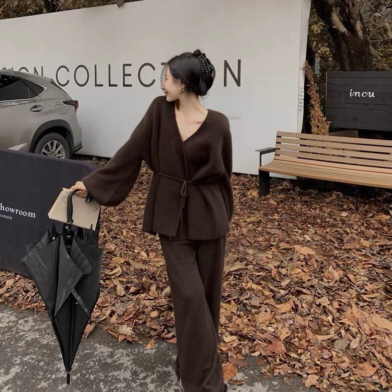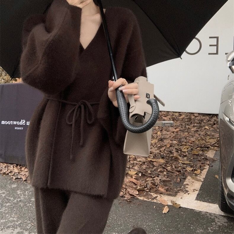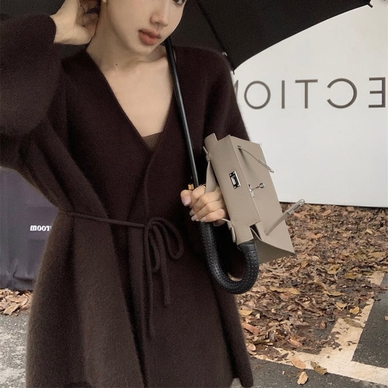 【outer】リボンベルトゆったりニットカーディガントップス AN1005