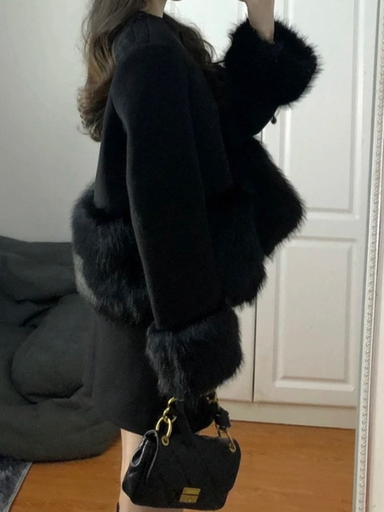 【set】エコファー付きコートxミニスカート AN1007