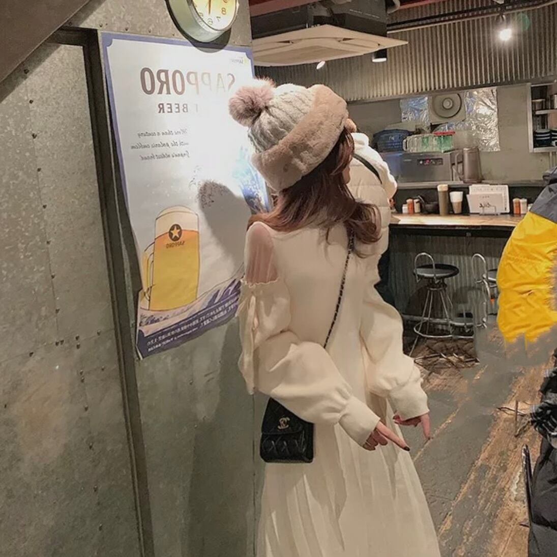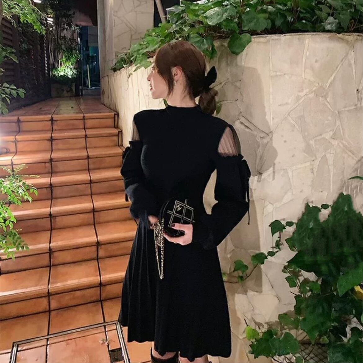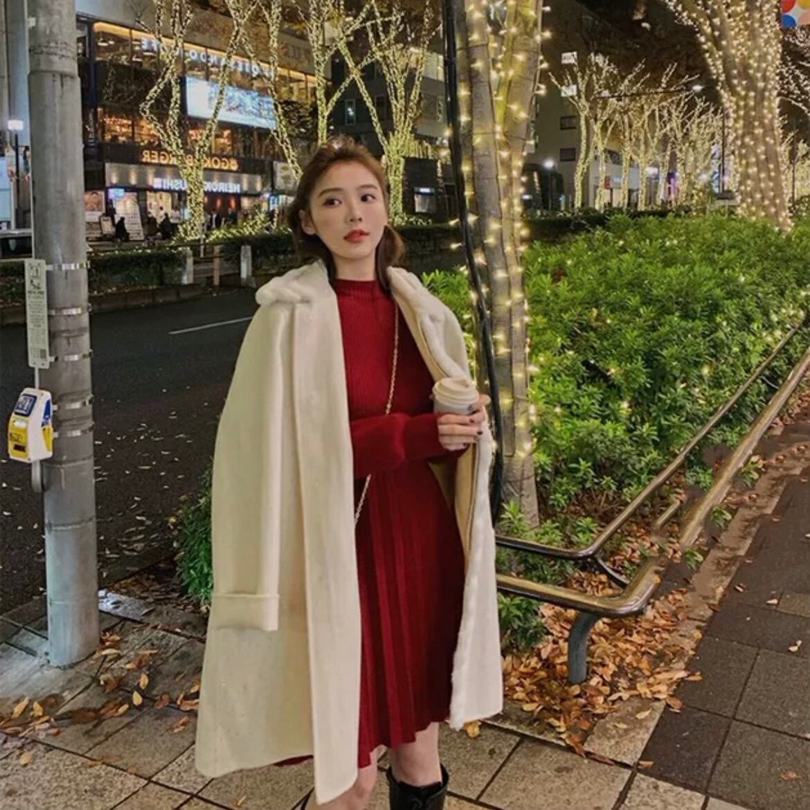 【dress】シースルーショルダーニットワンピース3色 CN0088
