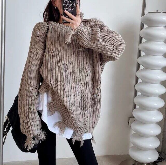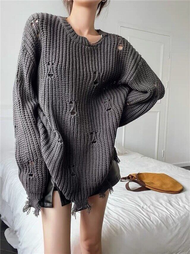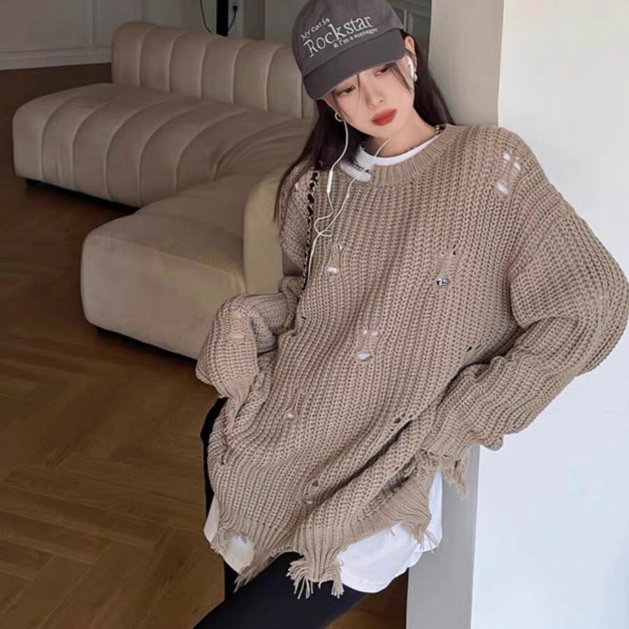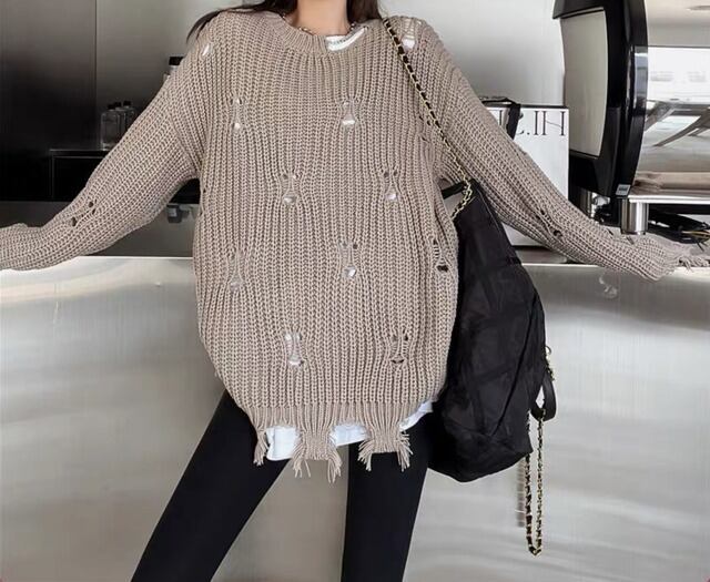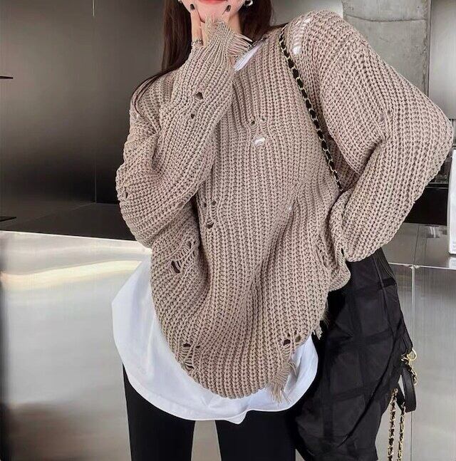 【tops】ダメージデザインニットトップス2色 CF0025