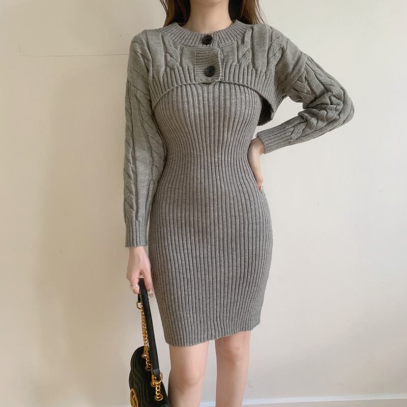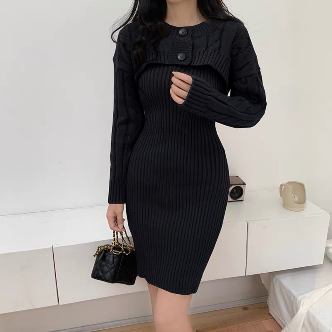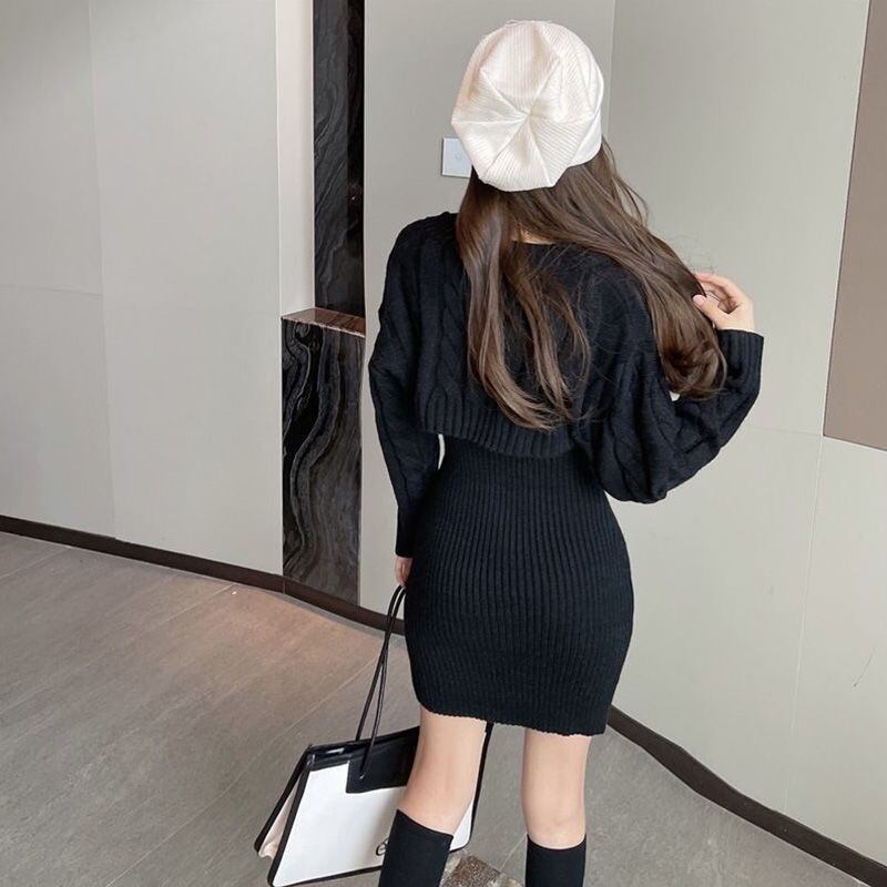 【set】長袖ニットトップスxキャミワンピース3色 SY5331