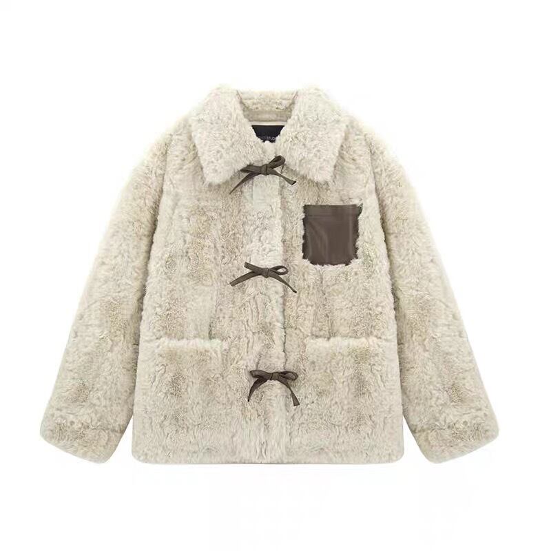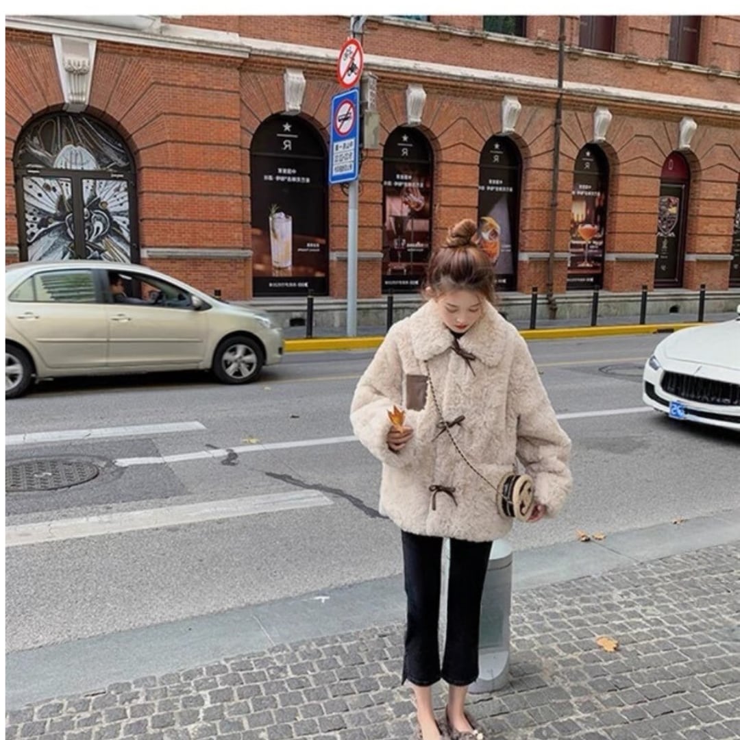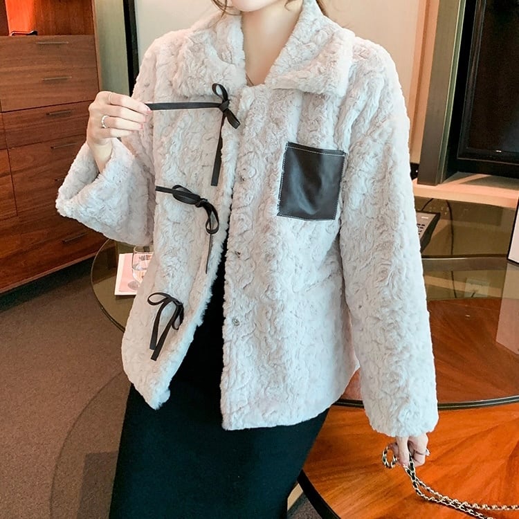 【outer】リボンデザインもこもこジャケット KK1129