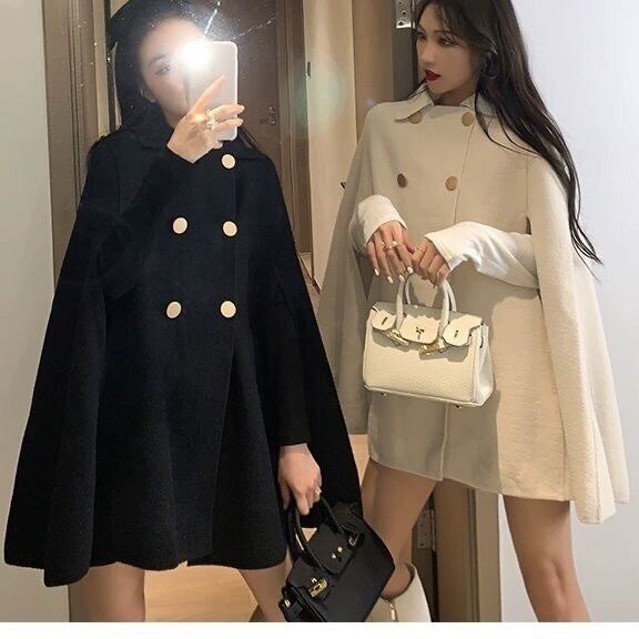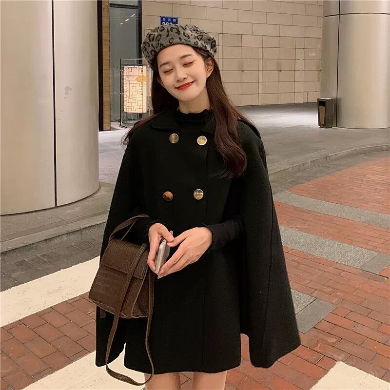 【outer】韓国系ダブルボタンデザインケープコート2色 KK1134