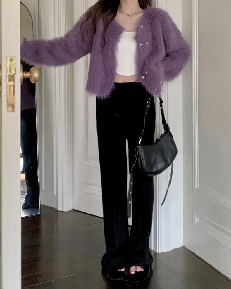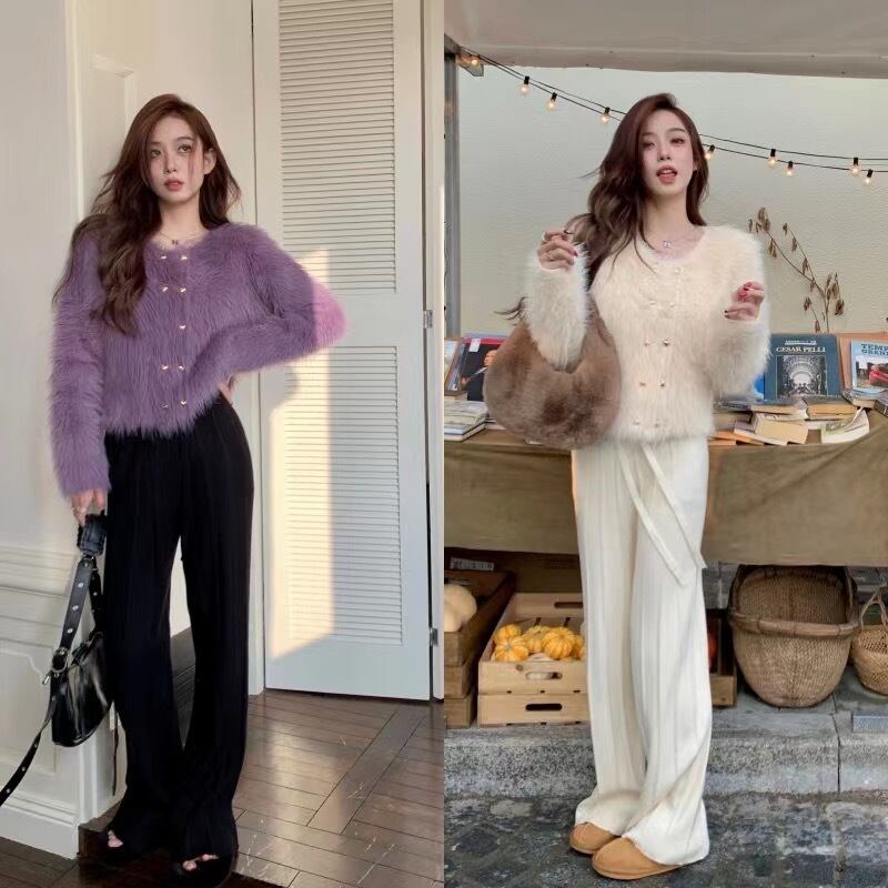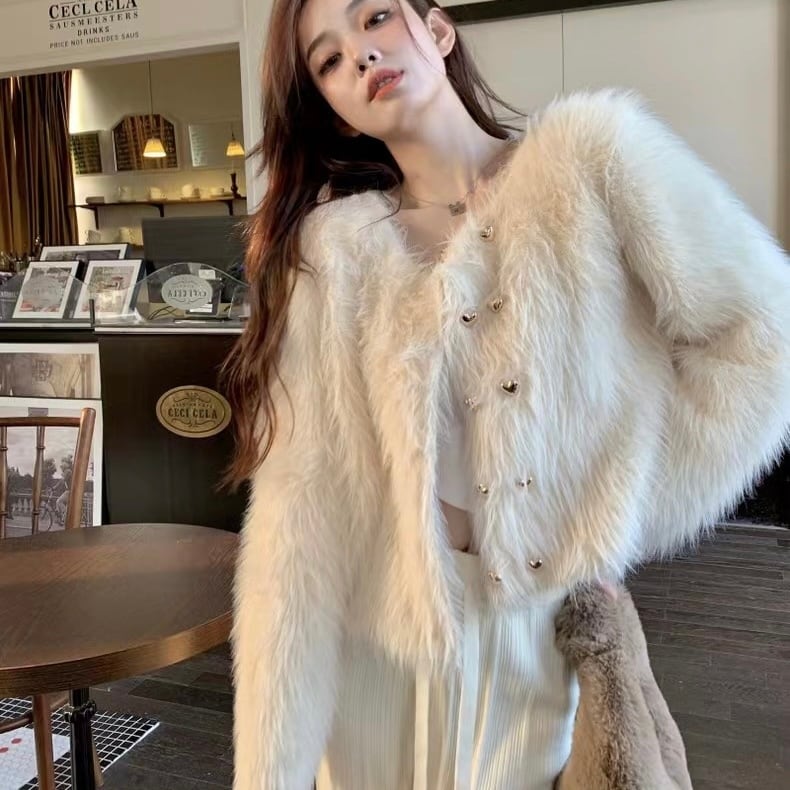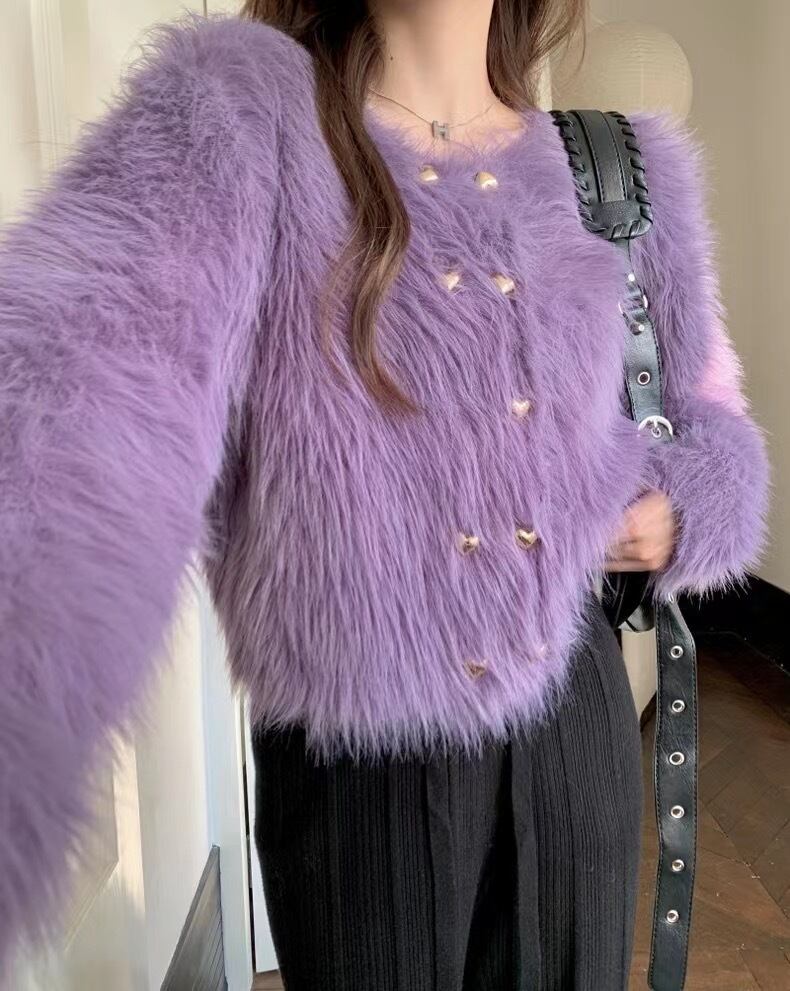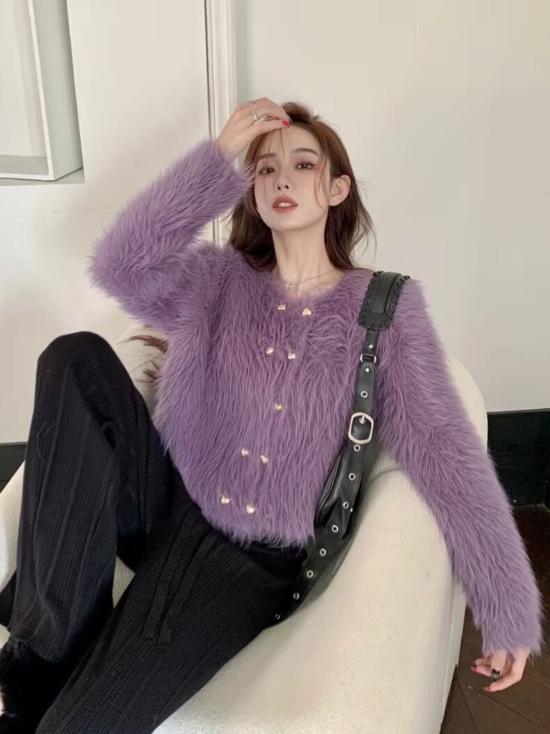 【outer】ハートゴールドボタンシャギーニットジャケット2色 GR1010