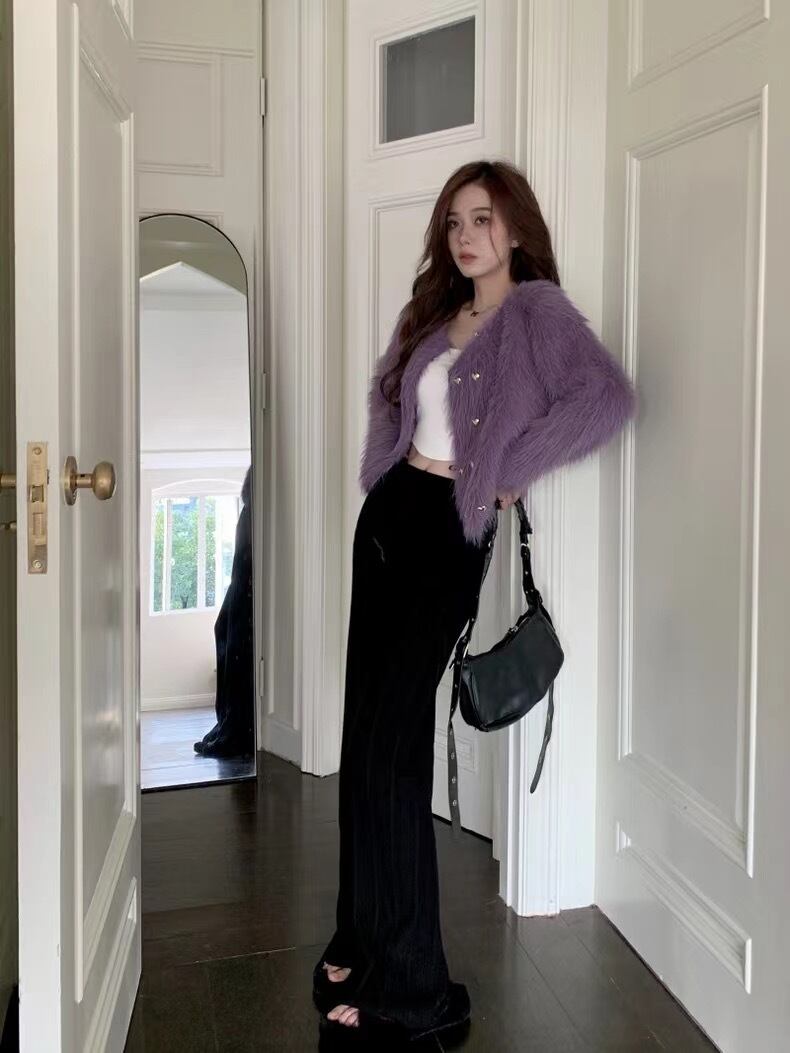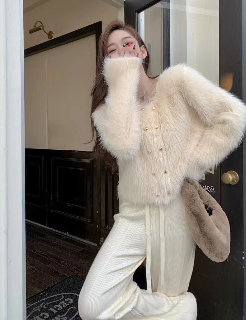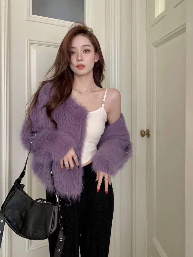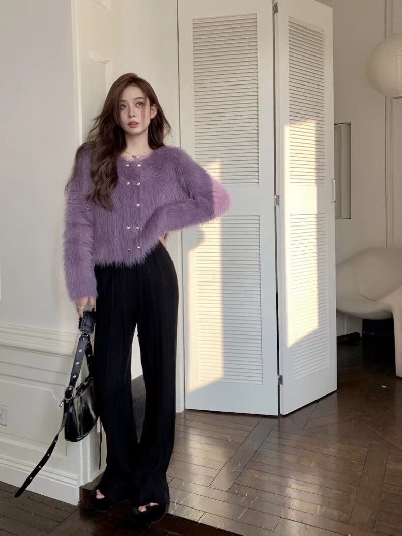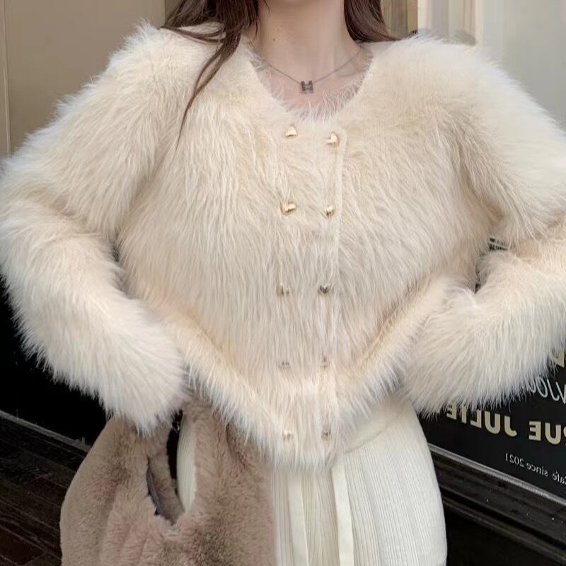 【outer】ハートゴールドボタンシャギーニットジャケット2色 GR1010