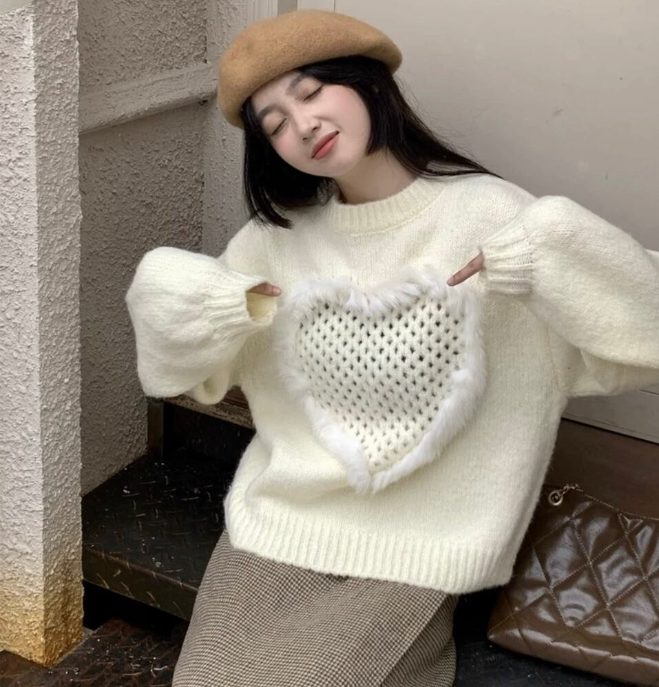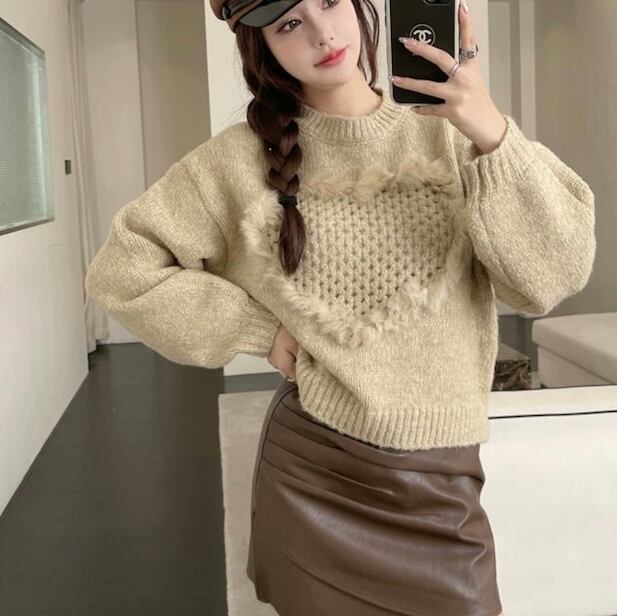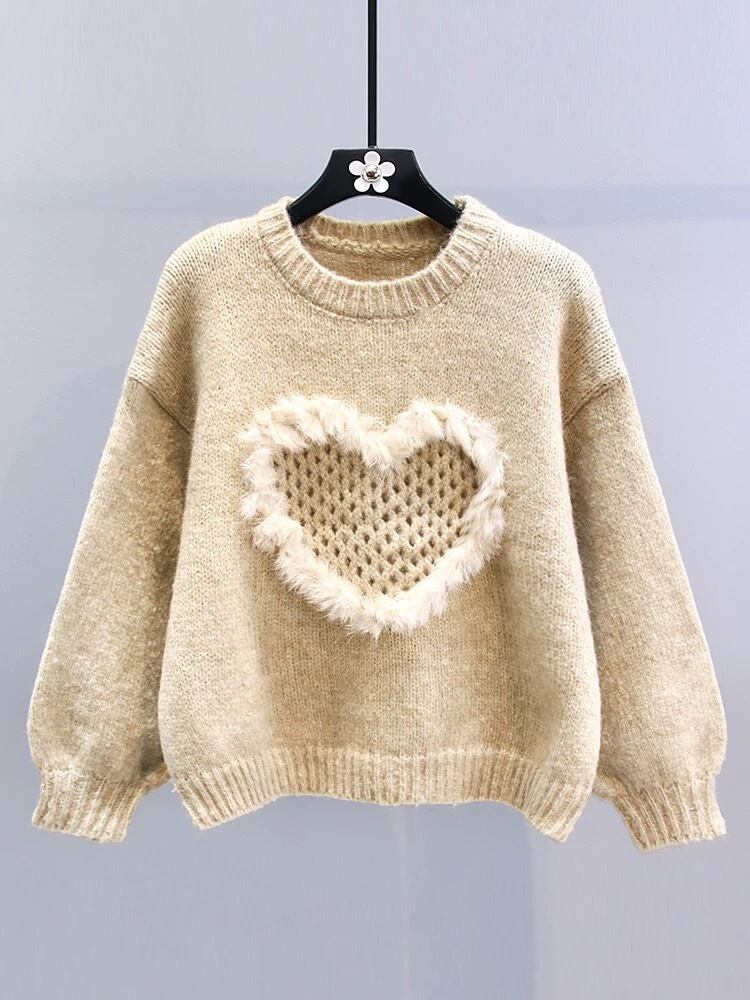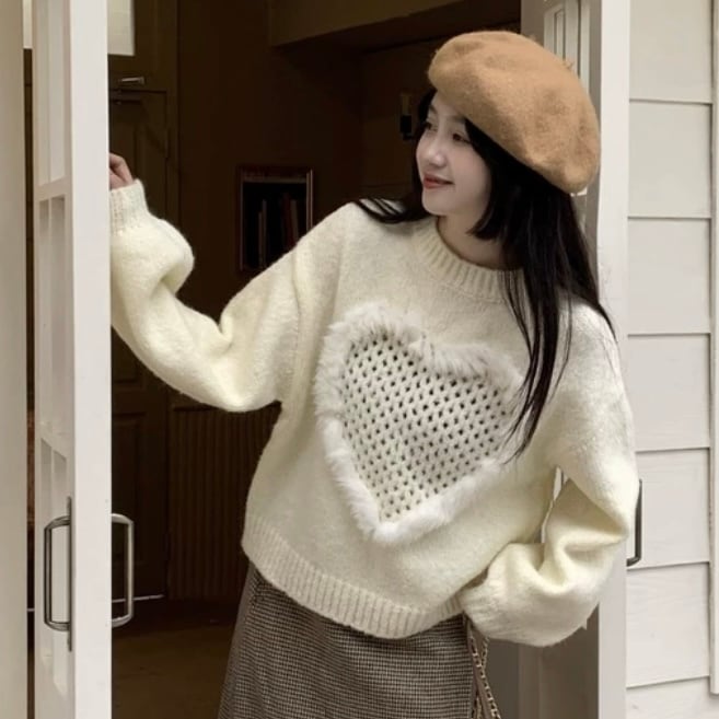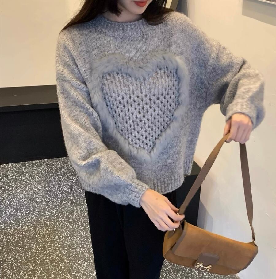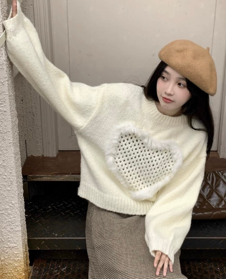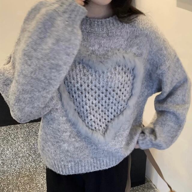 【tops】ハートメッシュ長袖ニットセーター3色 ZR1789