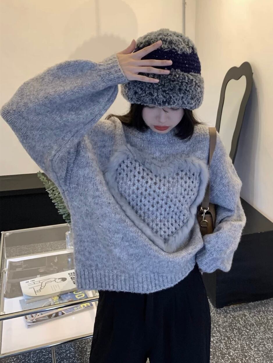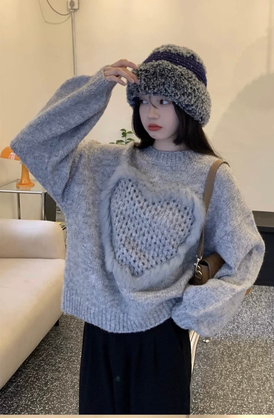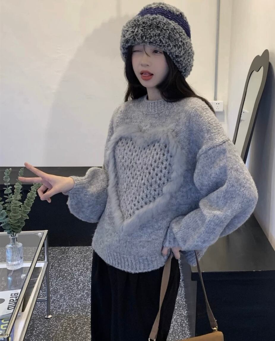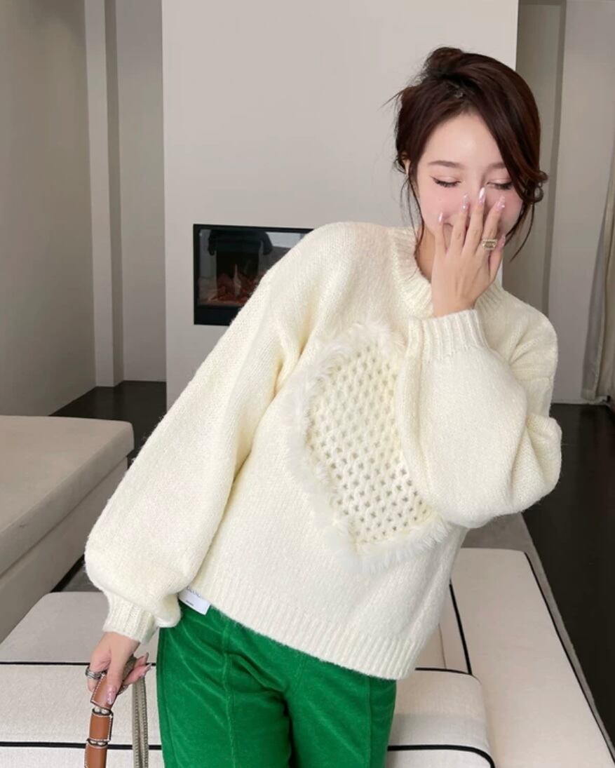 【tops】ハートメッシュ長袖ニットセーター3色 ZR1789