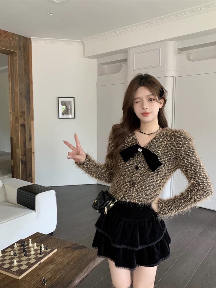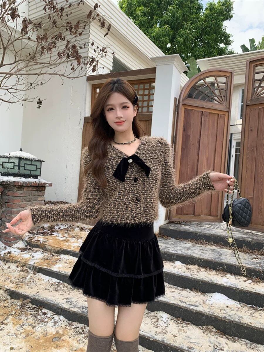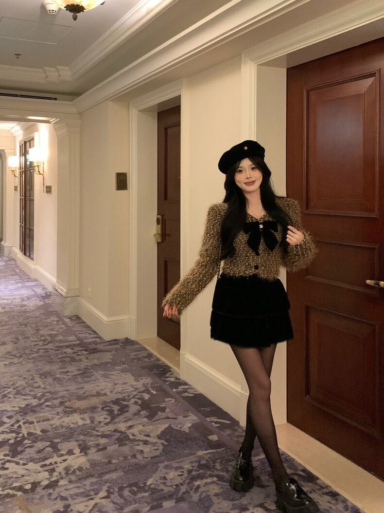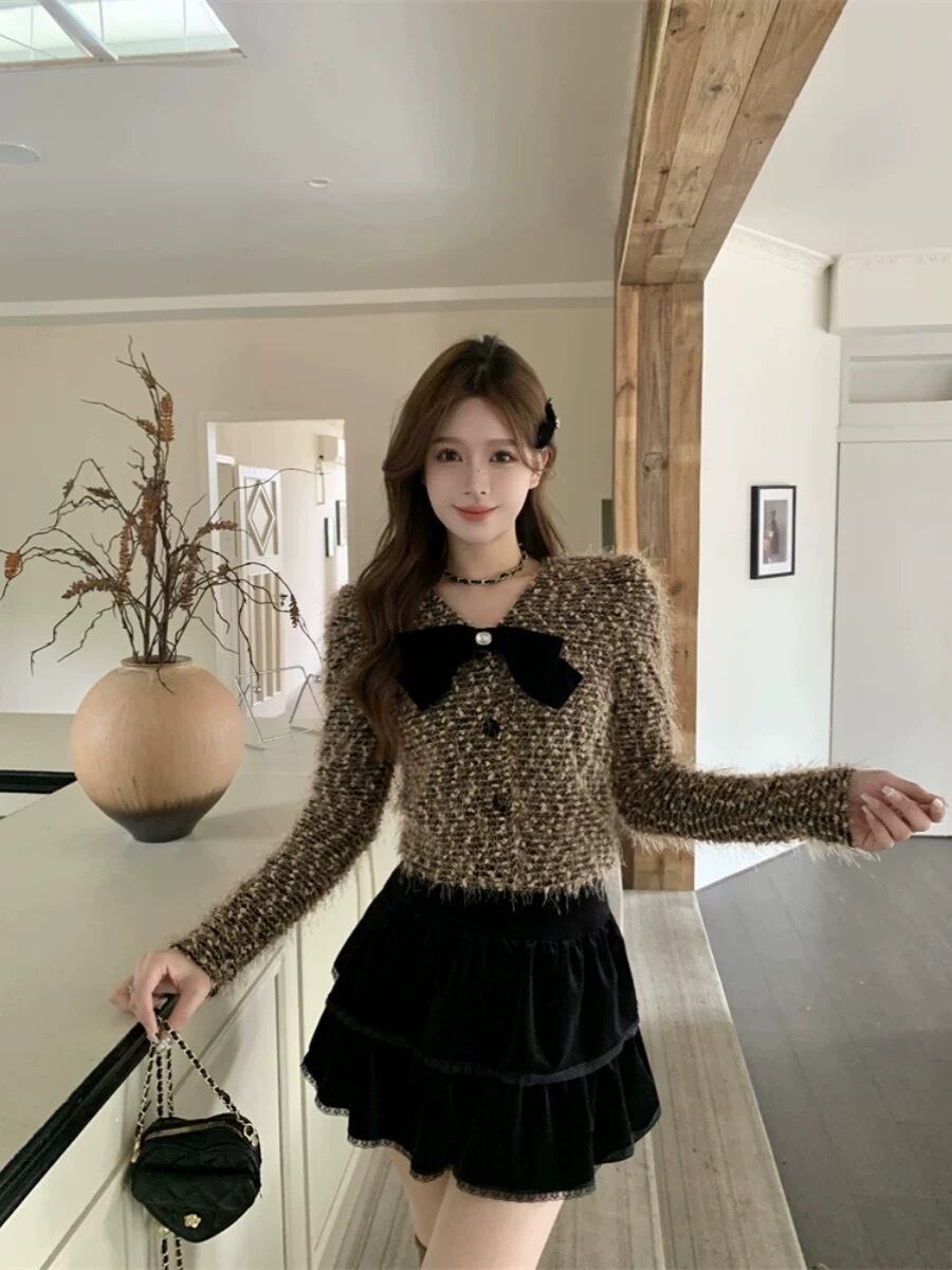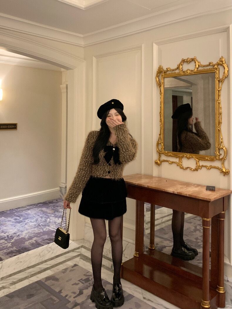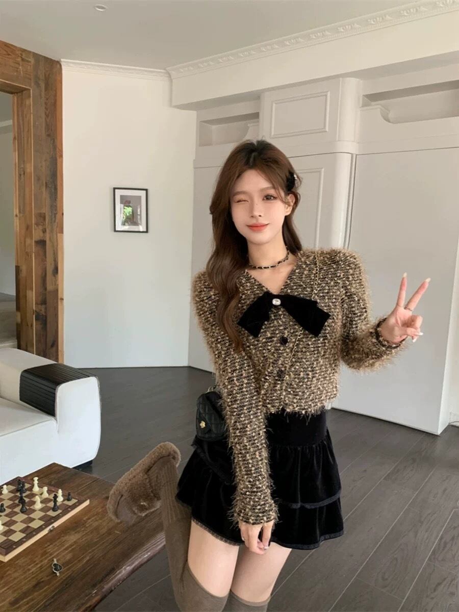 【set】リボンデザインシャーリング風長袖ジャケットxミニスカート MR0912