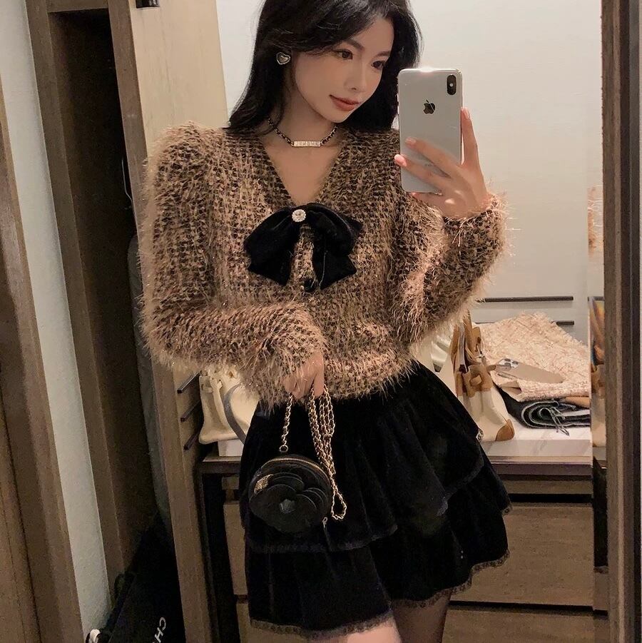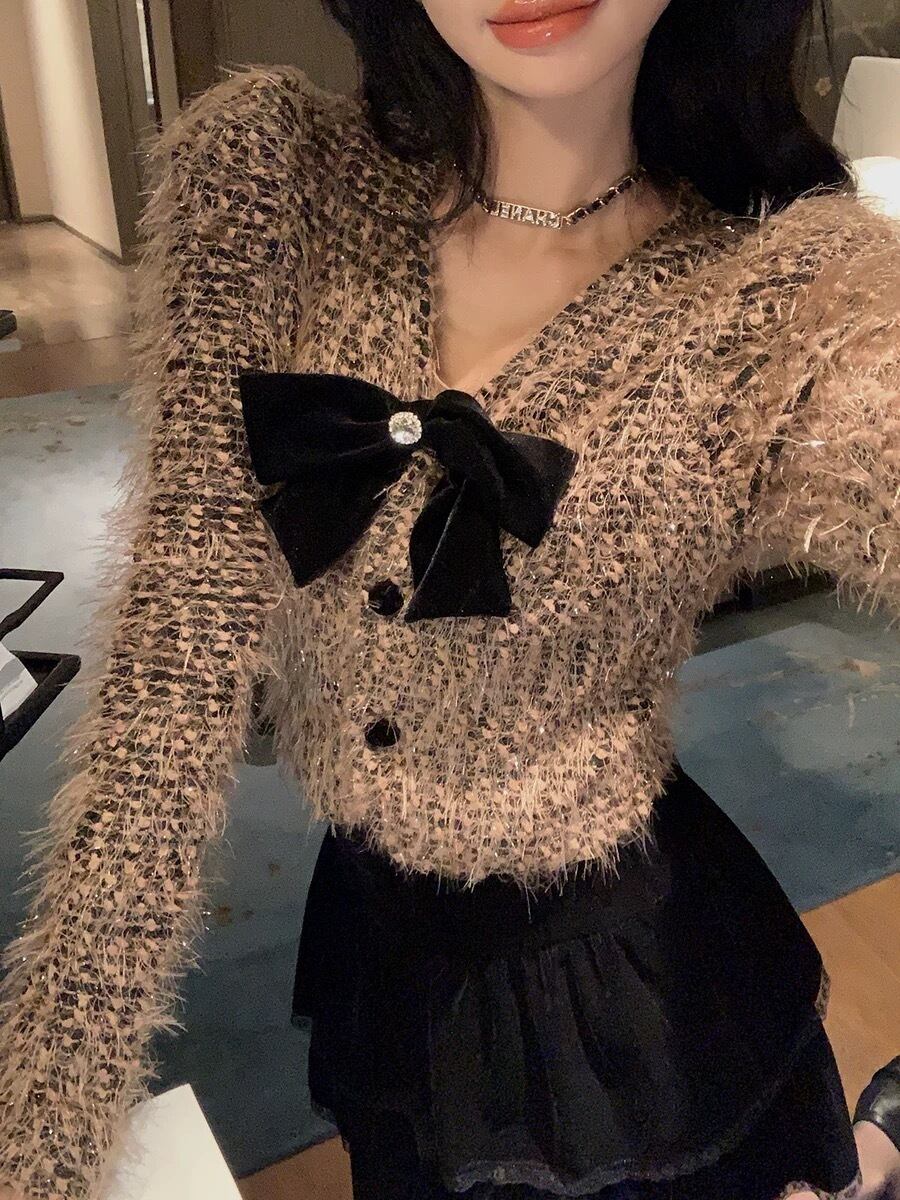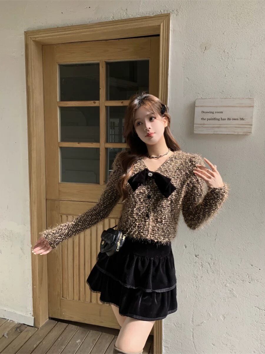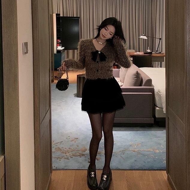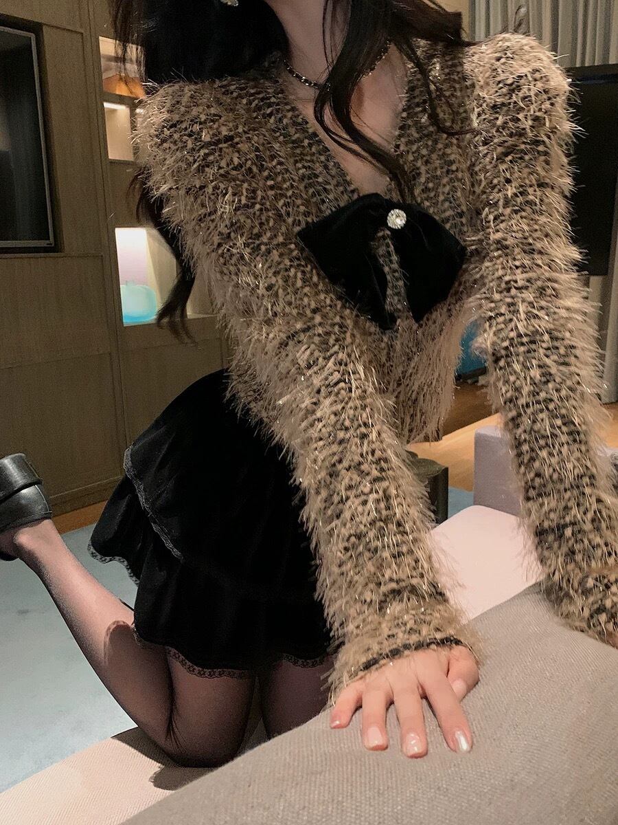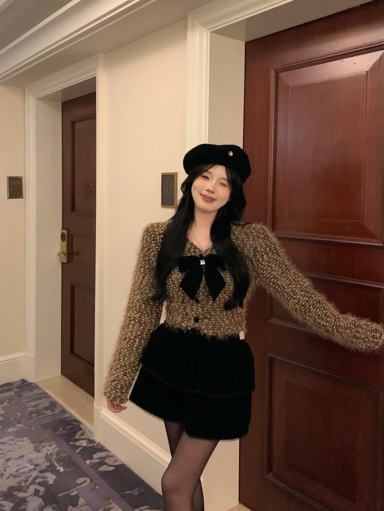 【set】リボンデザインシャーリング風長袖ジャケットxミニスカート MR0912