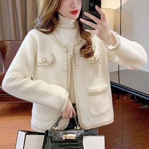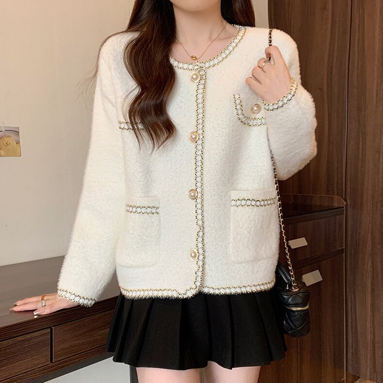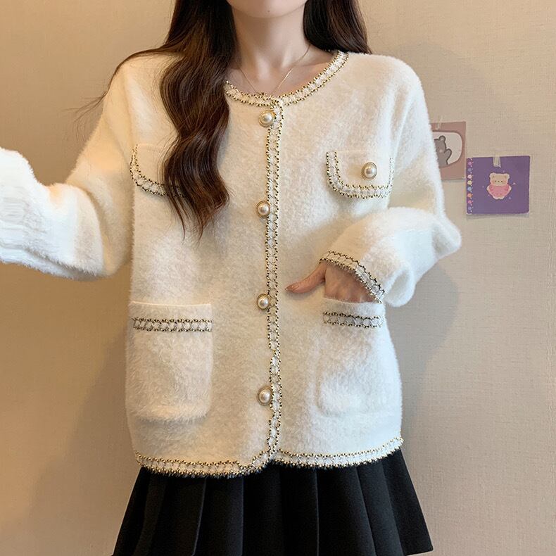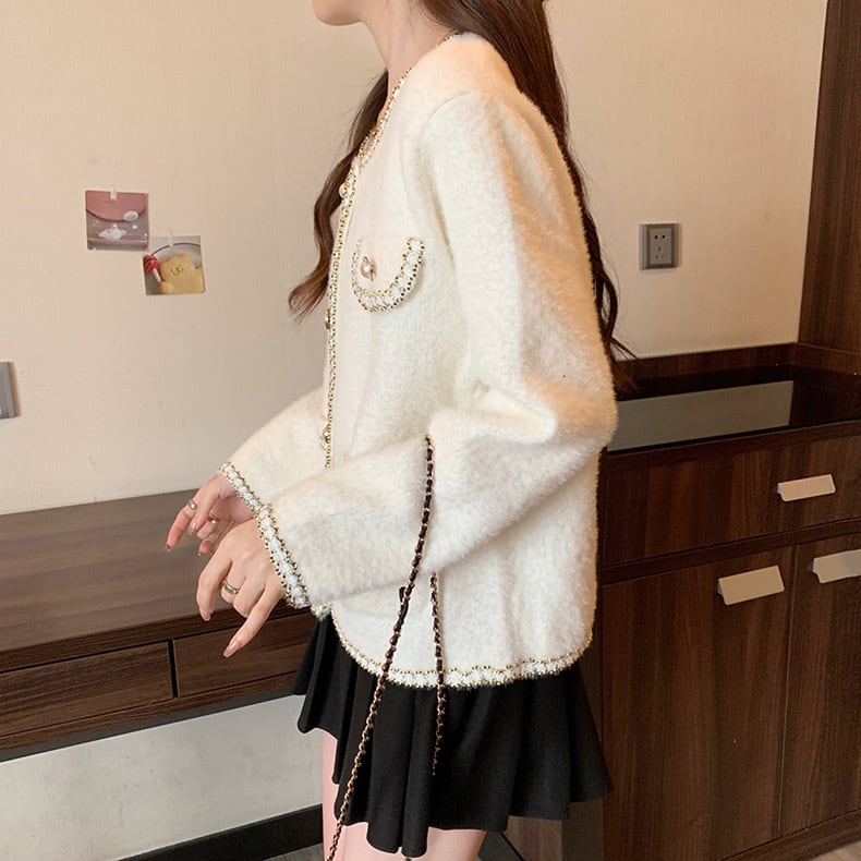 【outer】パールボタンデザインエレガントカーディガン2色 SY0070