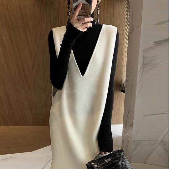 【dress】サイドスリット無地Vネック袖なしロングワンピース SP0006