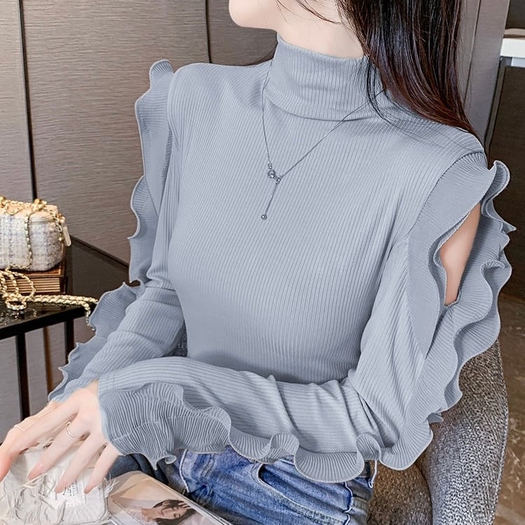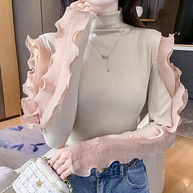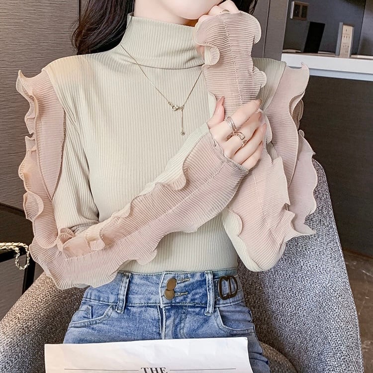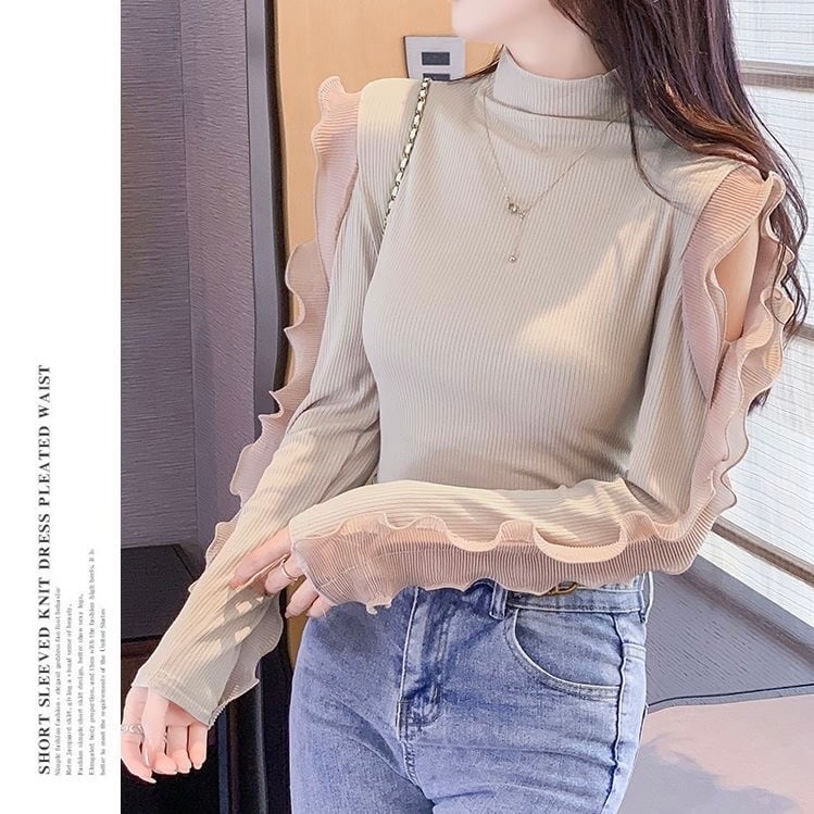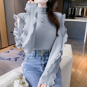 【tops】フリル切り替えニットトップス2色 TD0001
