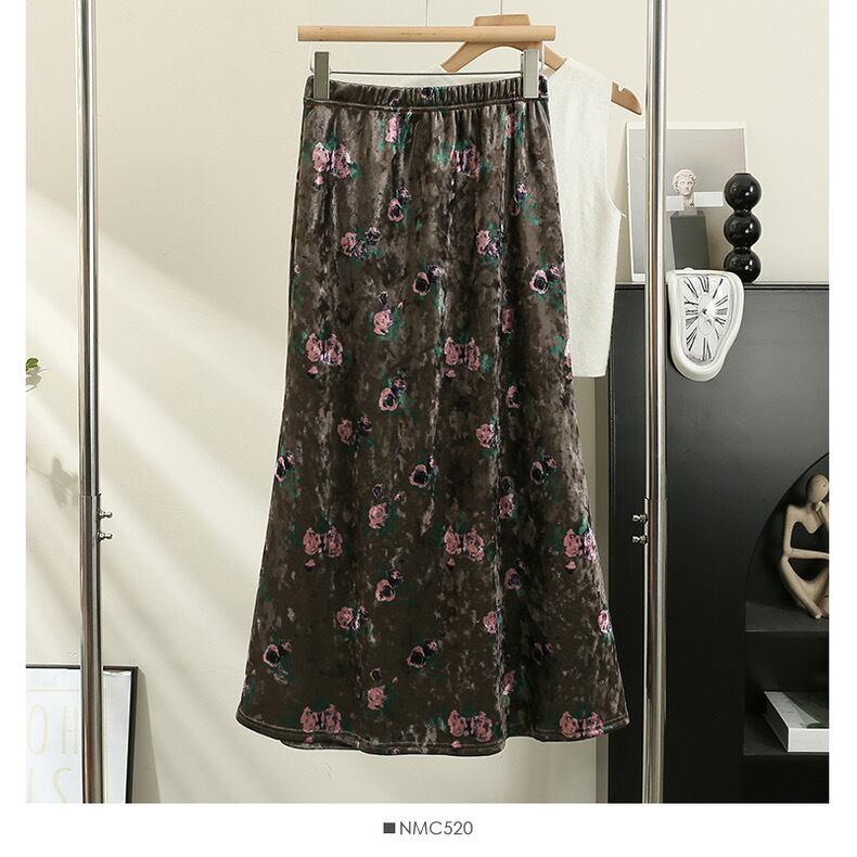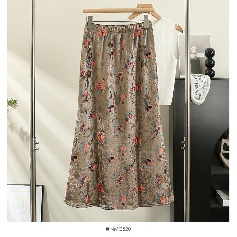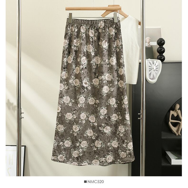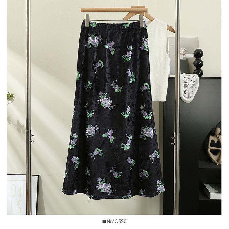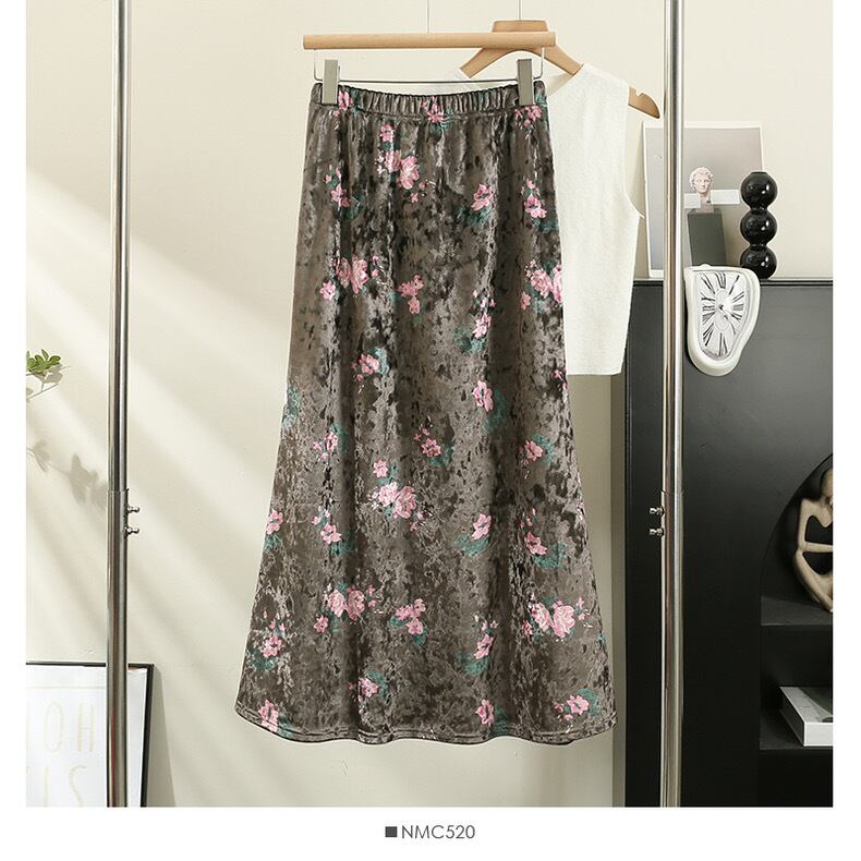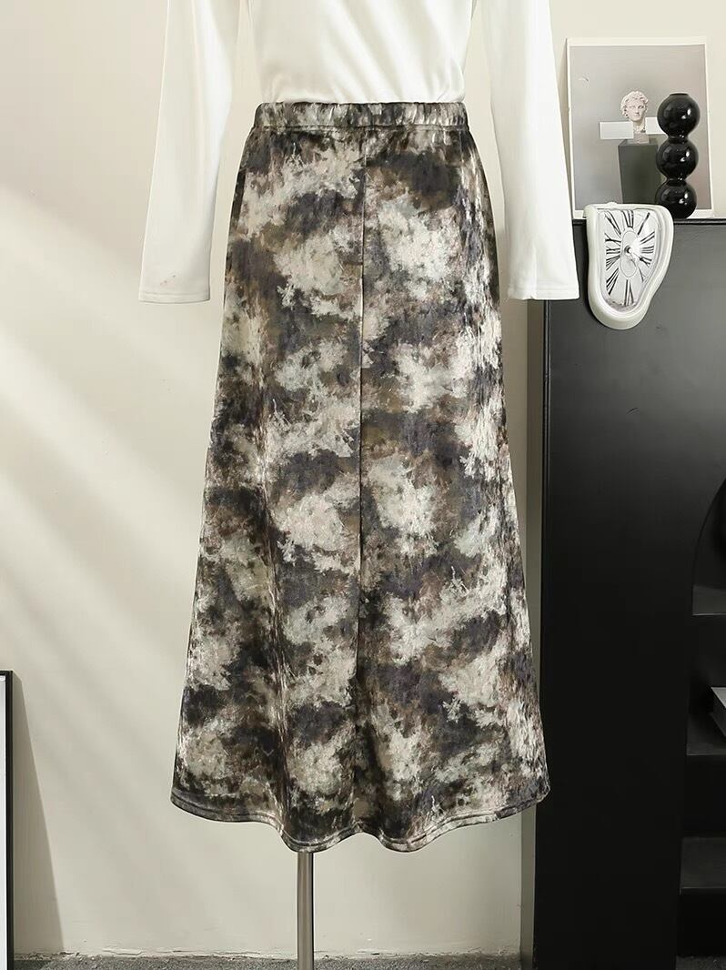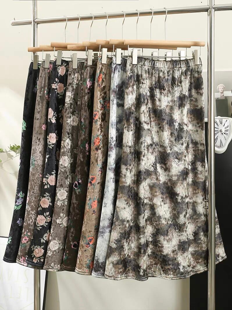 【bottoms】ベルベット生地レトロスカート TD0006