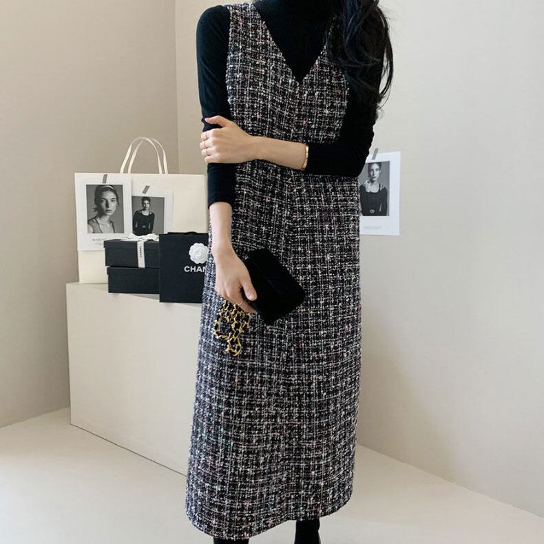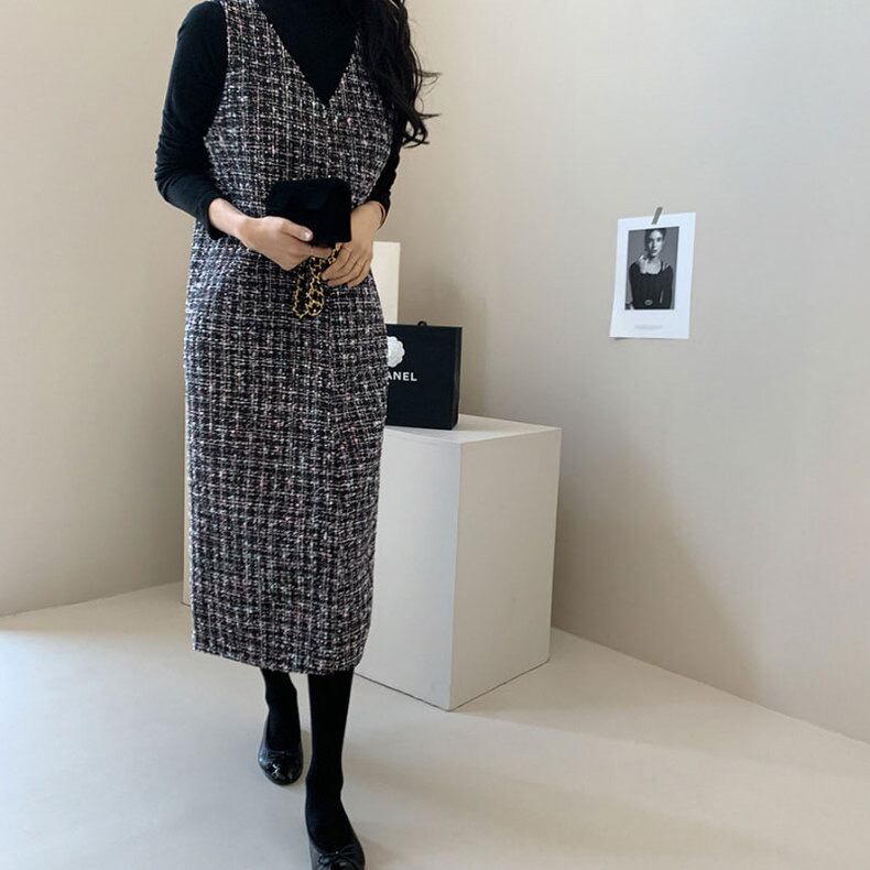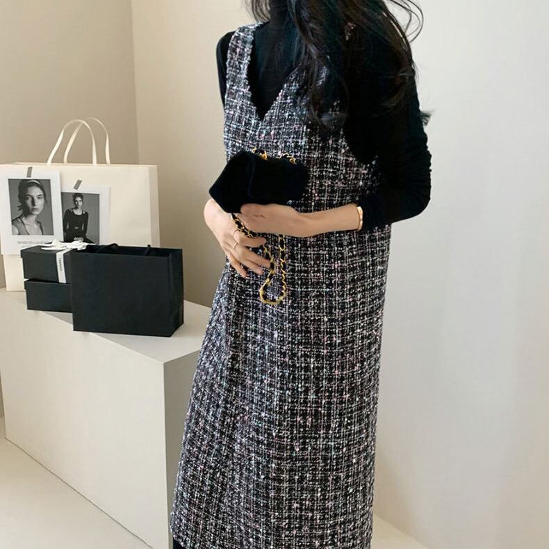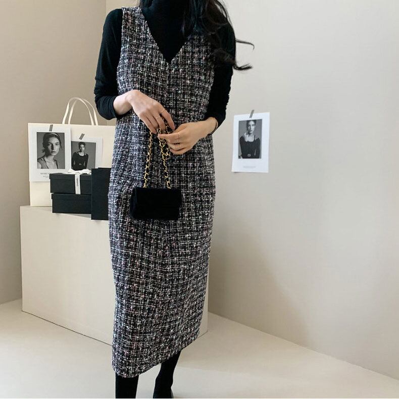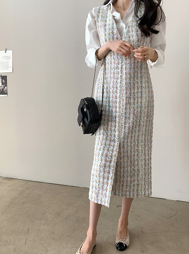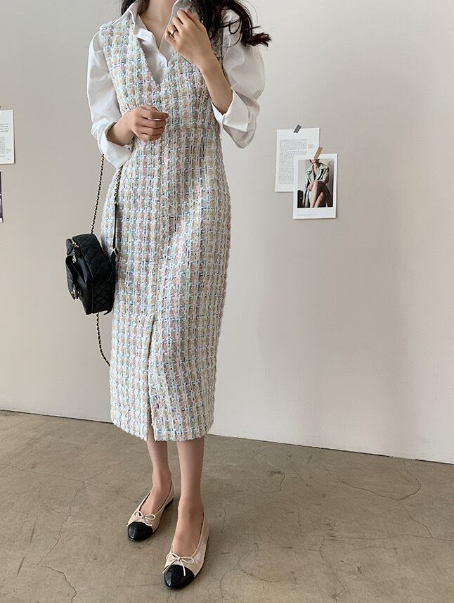 【dress】Vネックツイードベストワンピース2色 TD0011