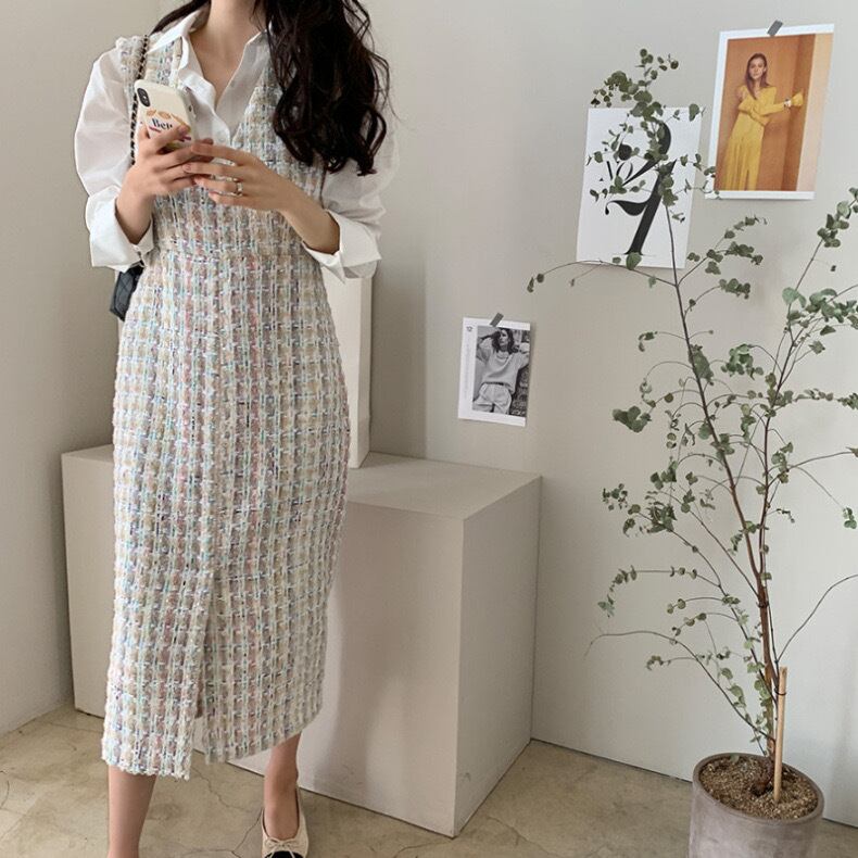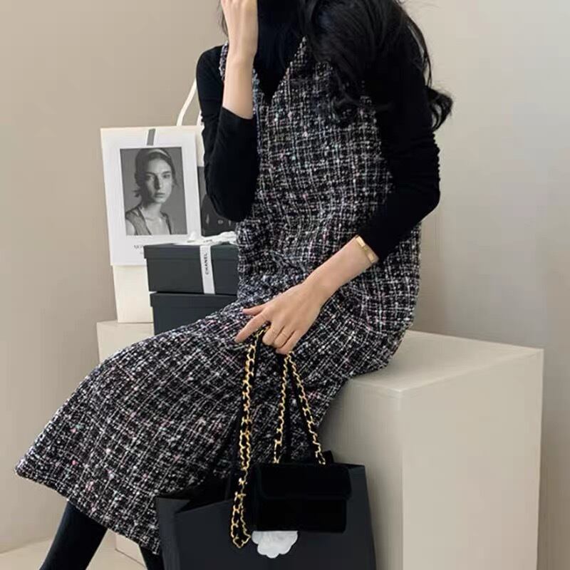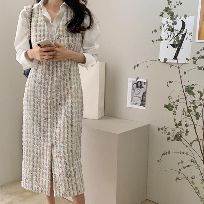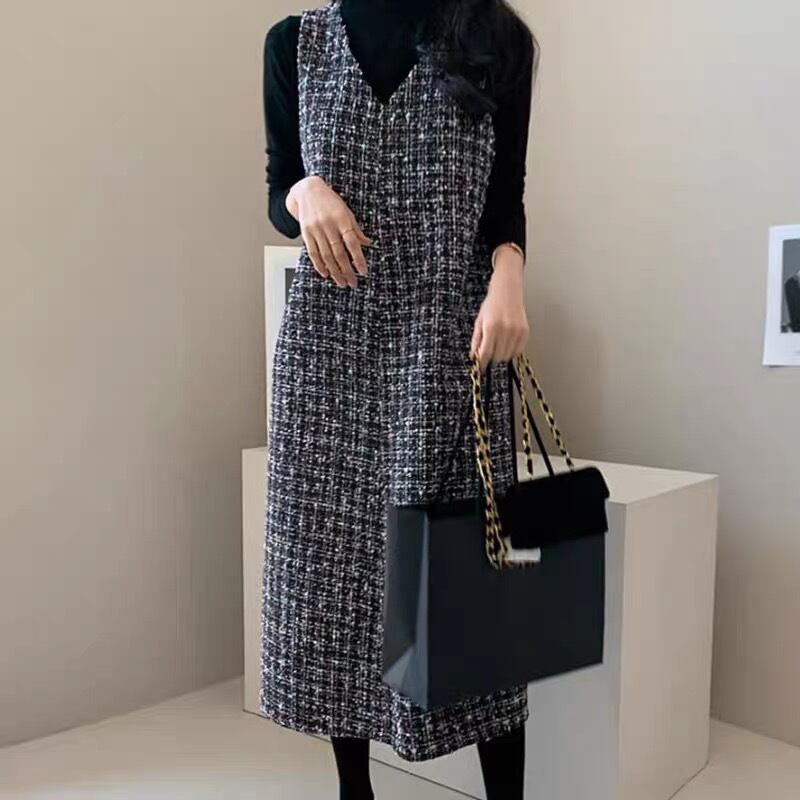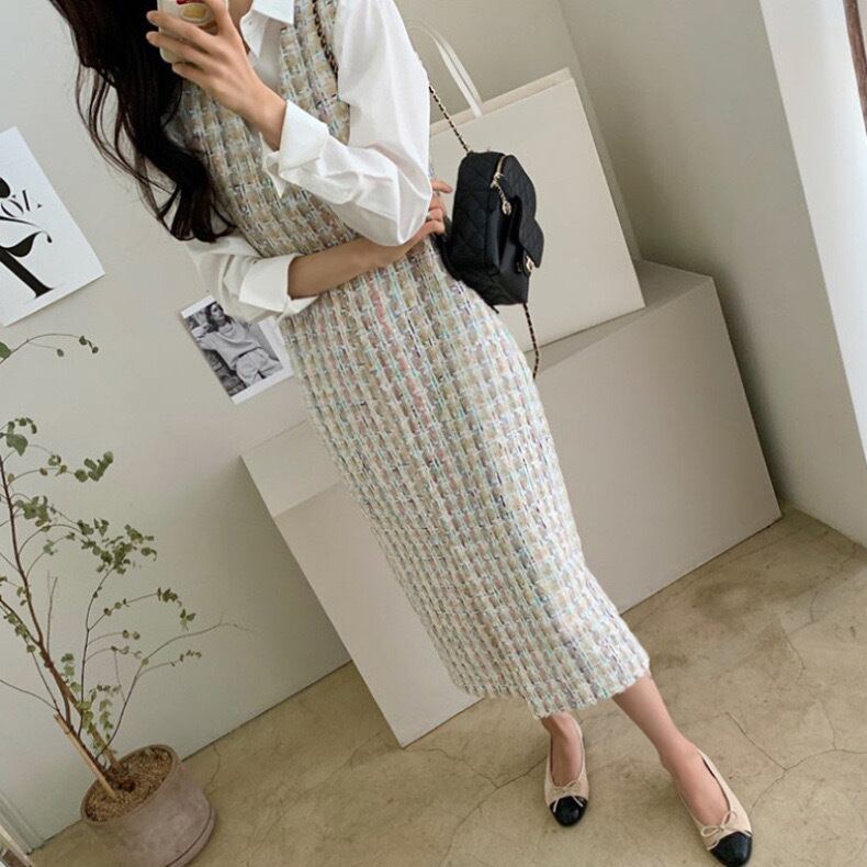 【dress】Vネックツイードベストワンピース2色 TD0011