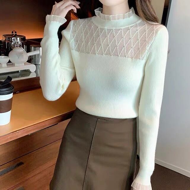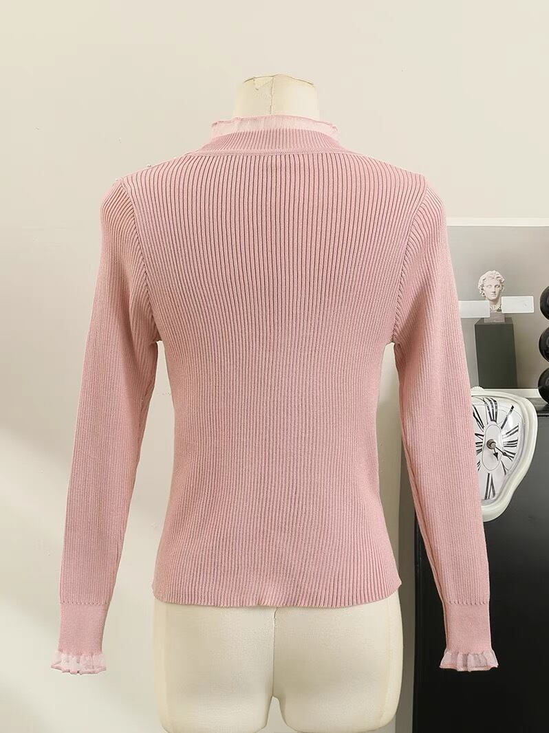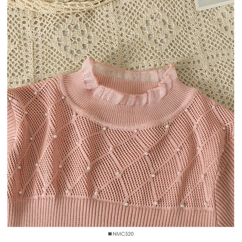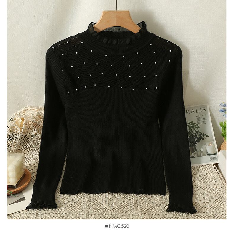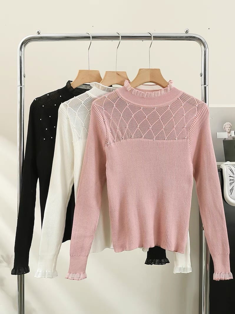 【tops】フリルパールビジューニットトップス3色 SL1001