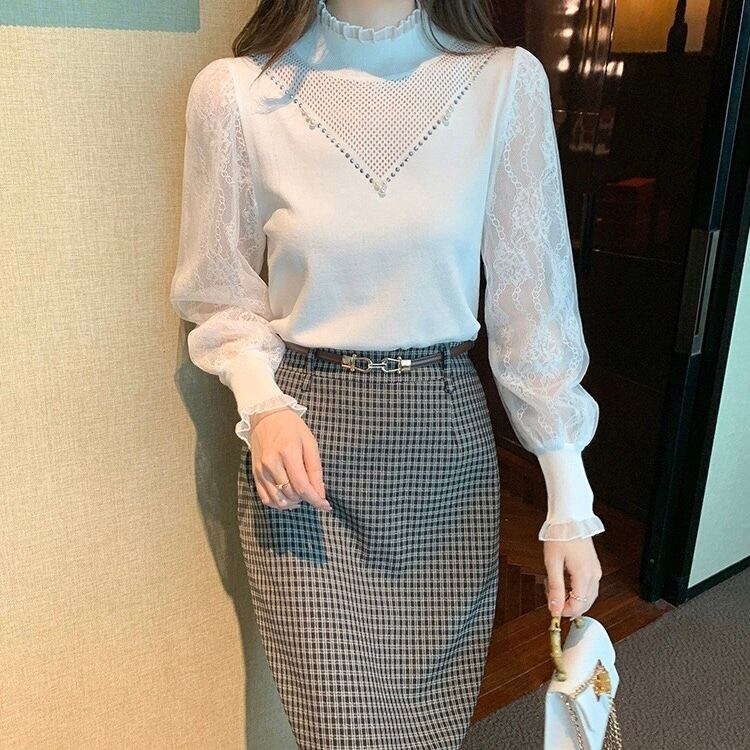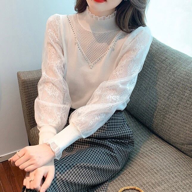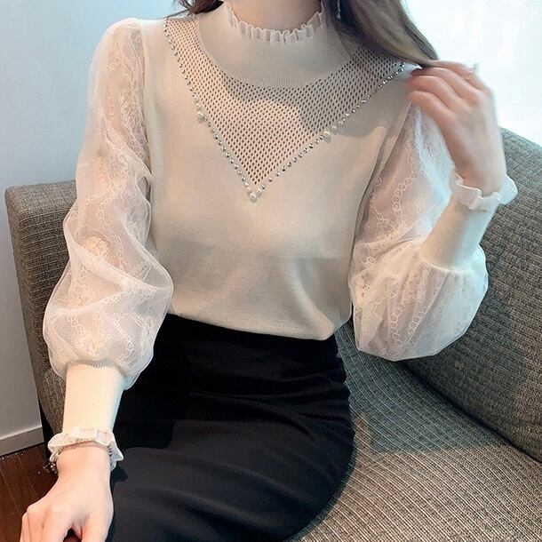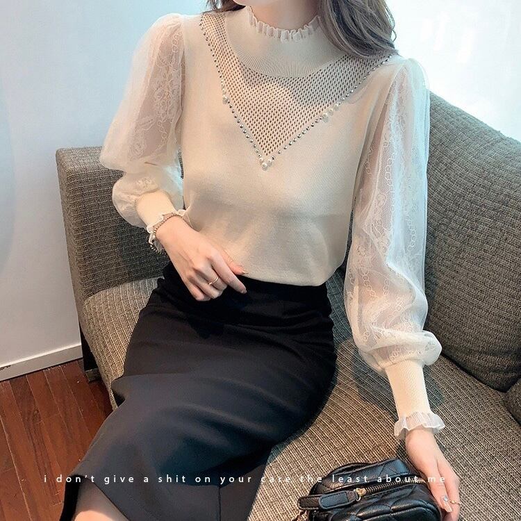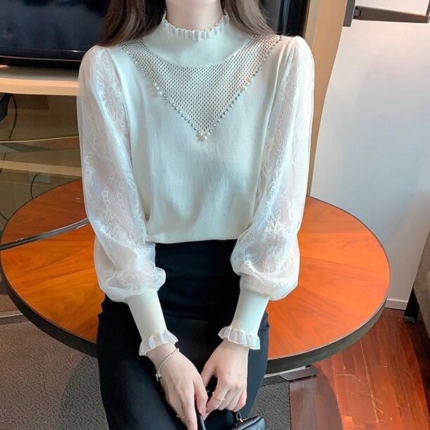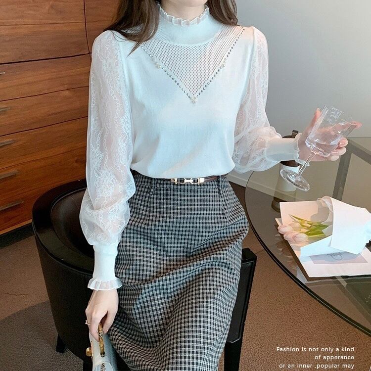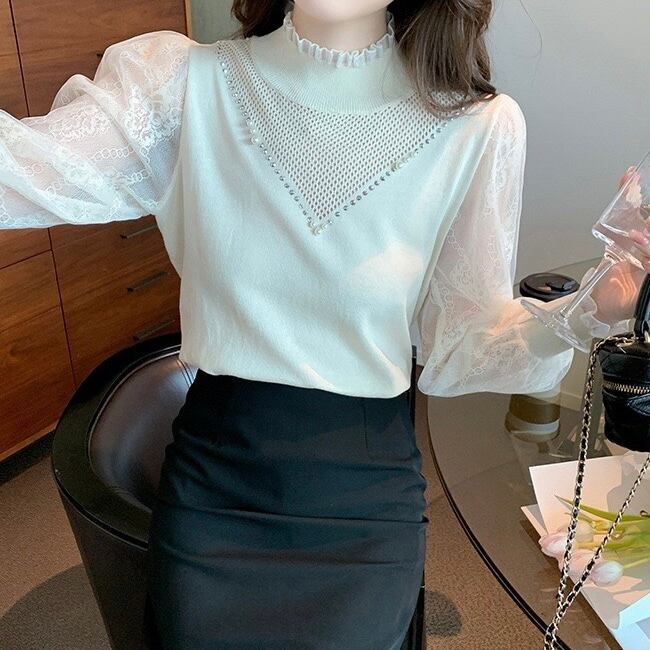 【tops】レース切り替えニットトップス2色 SP1434