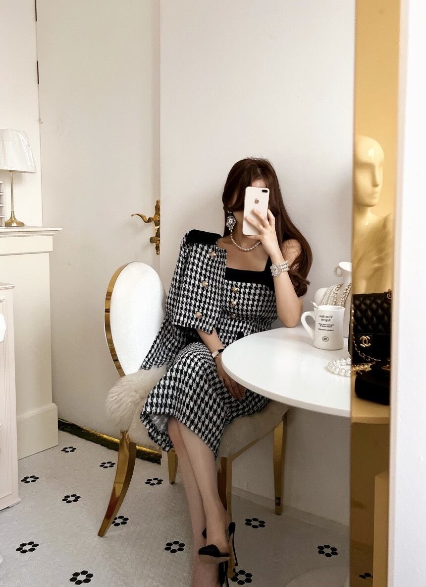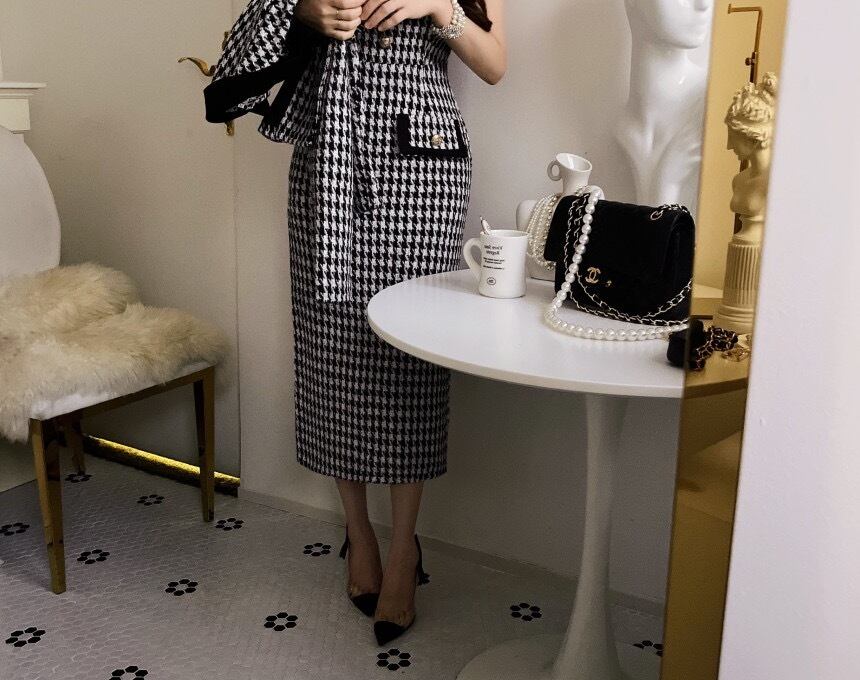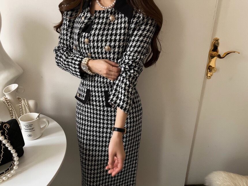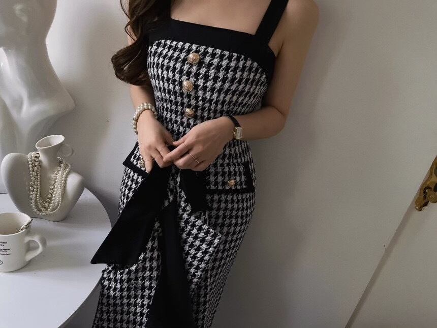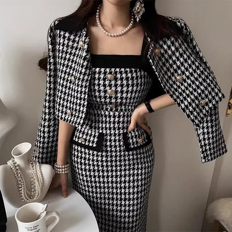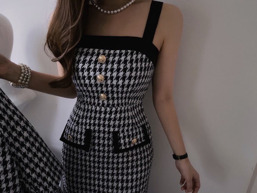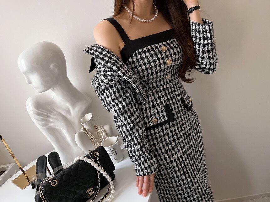 【set】千鳥柄キャミワンピースxジャケット SP1623