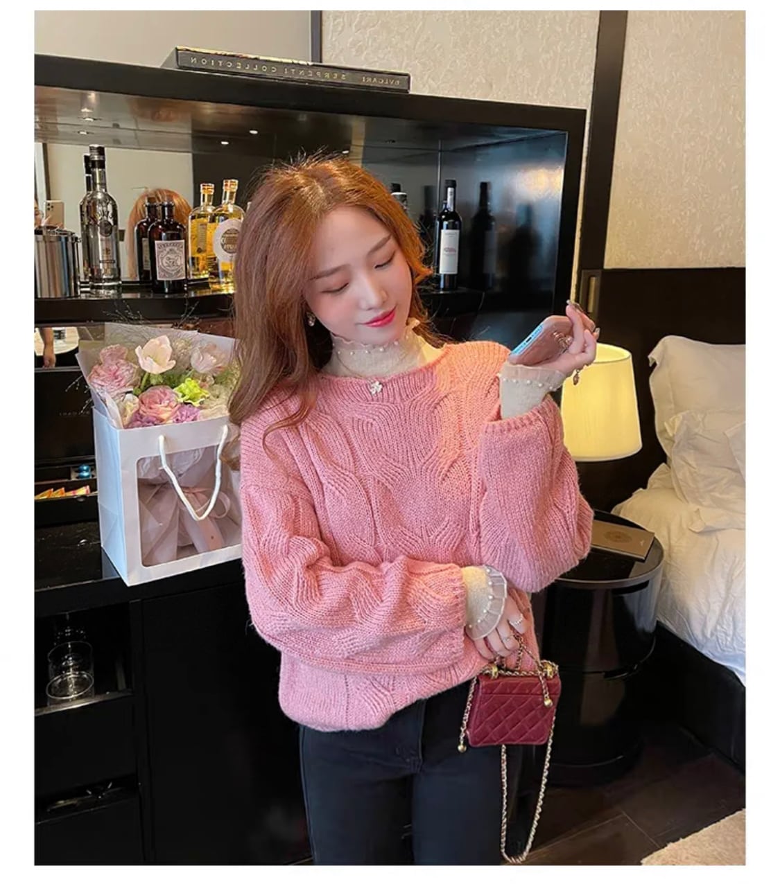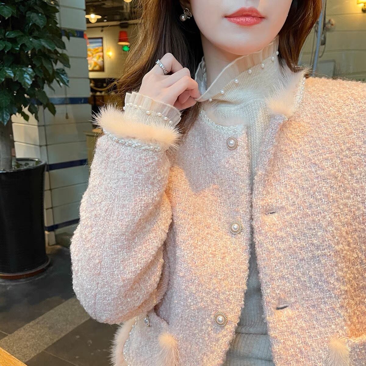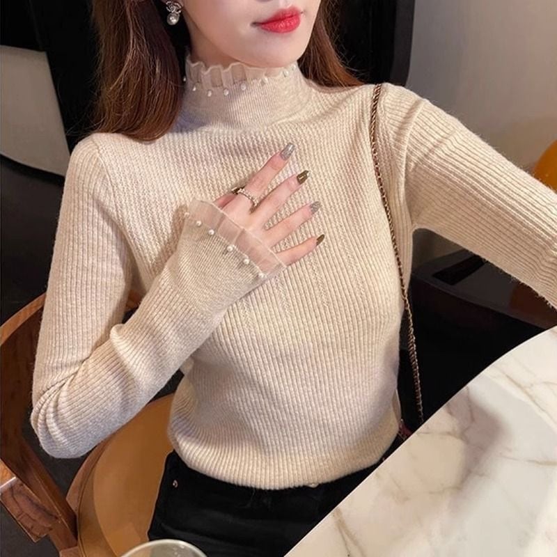 【tops】フリルパールデザインニットトップス3色 SP1714