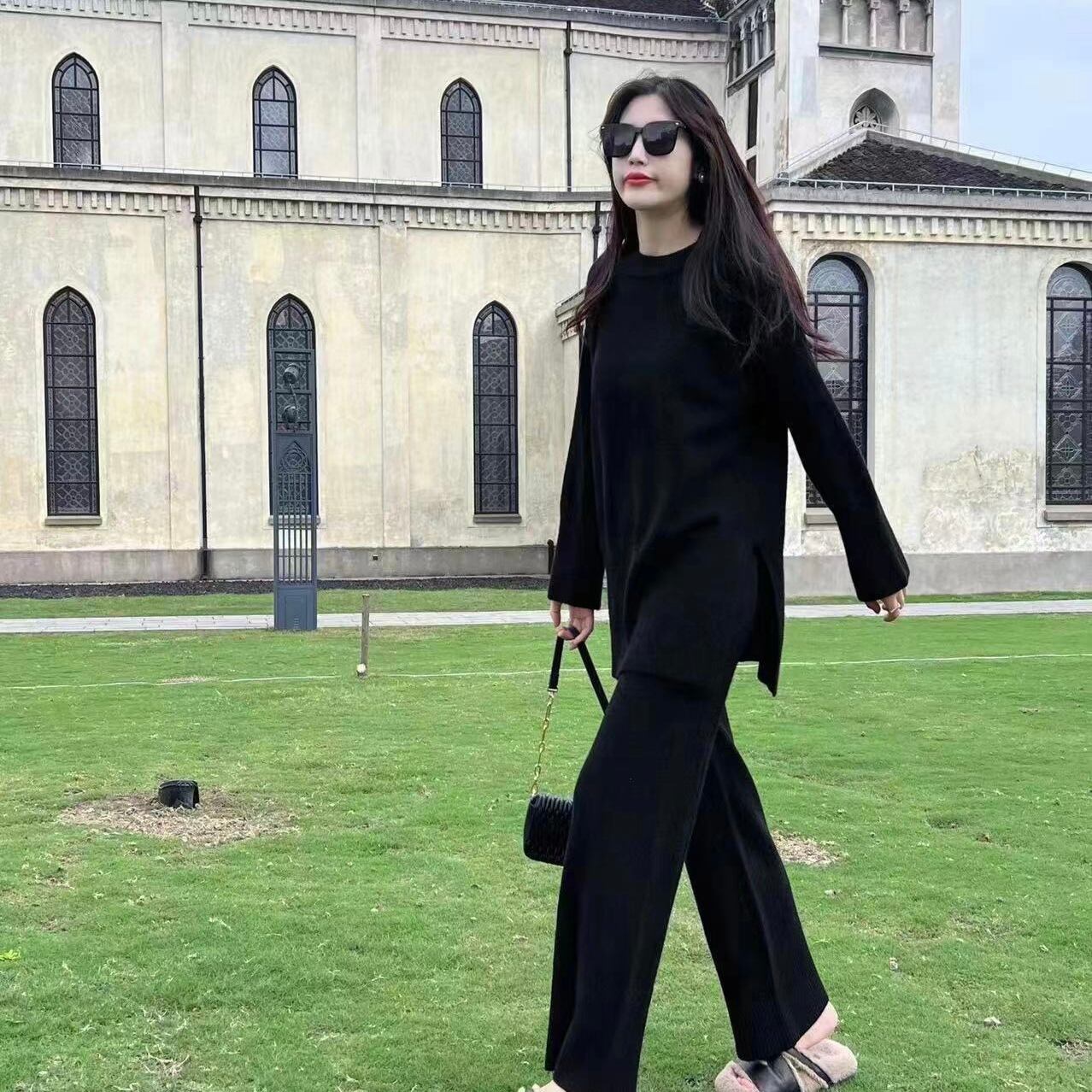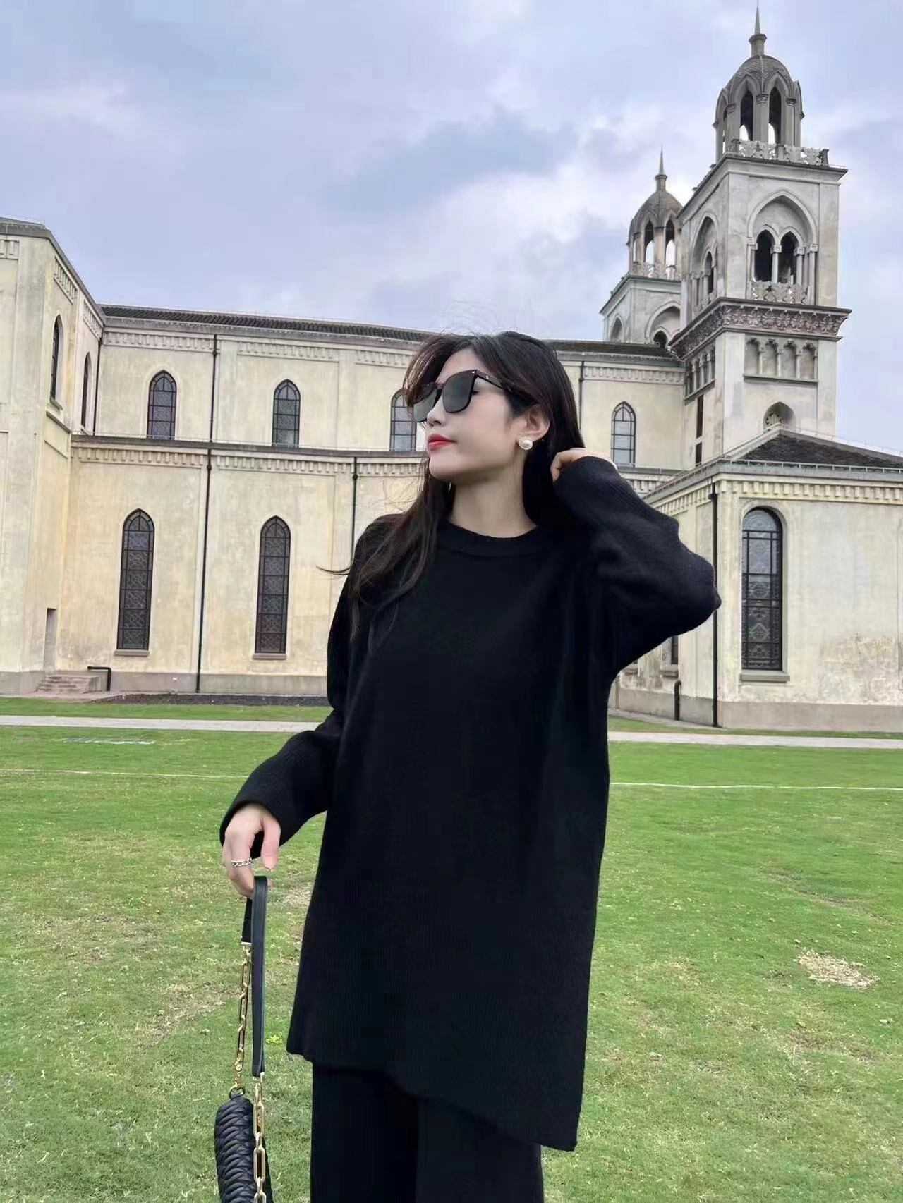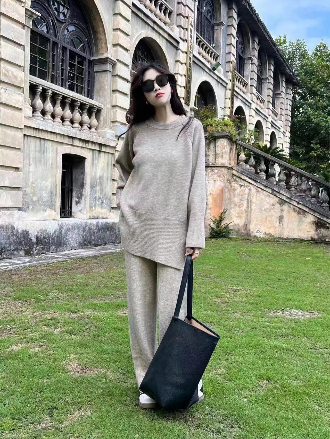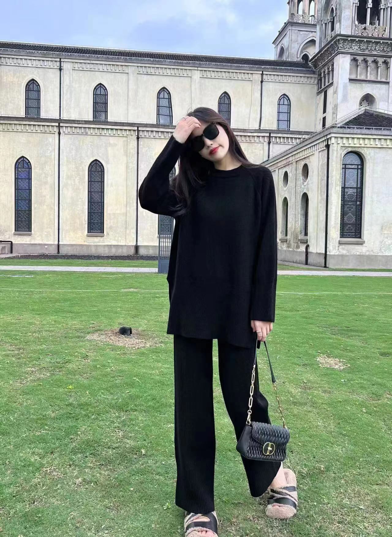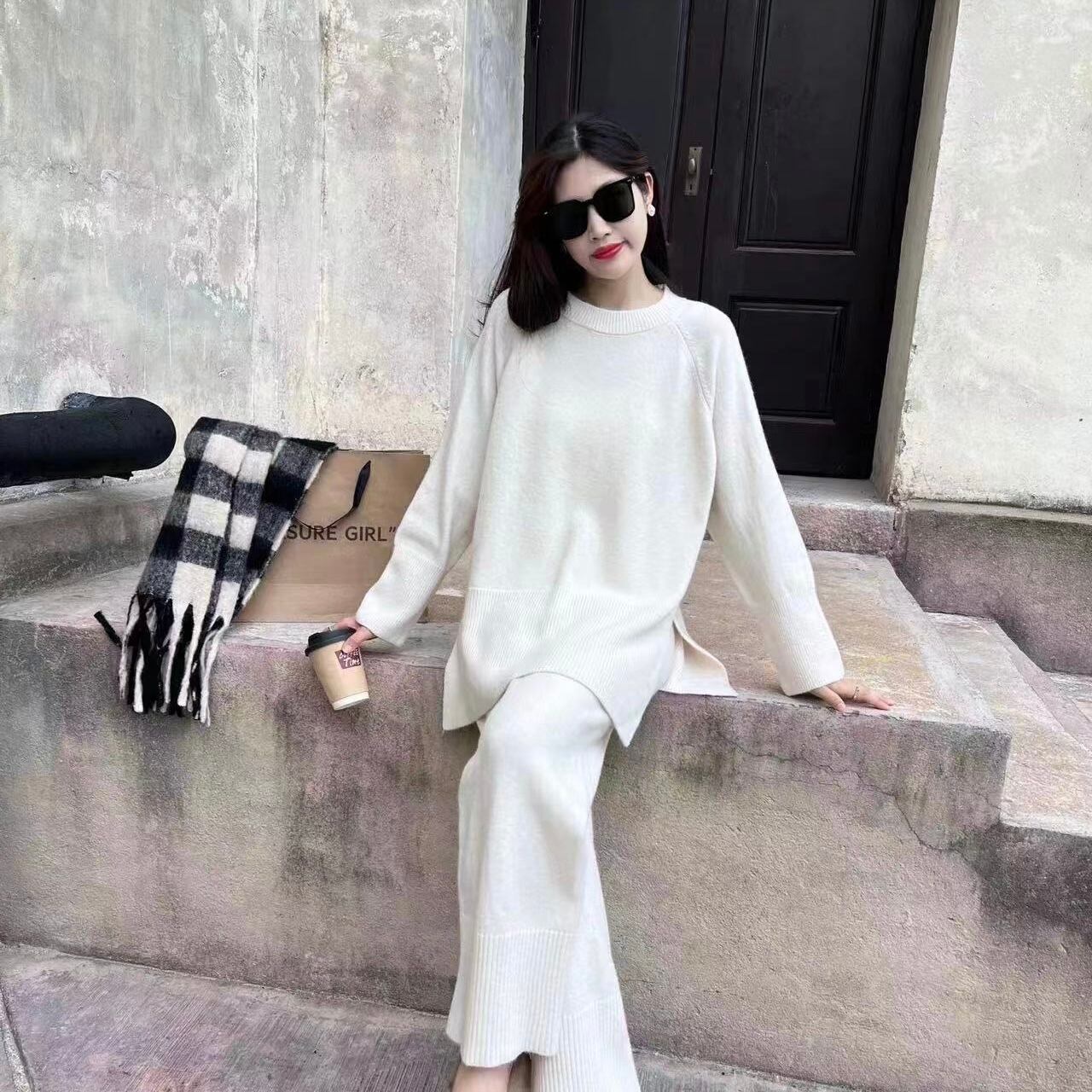 【set】ゆったりラウンドネックニットトップスxワイドパンツ YR1702