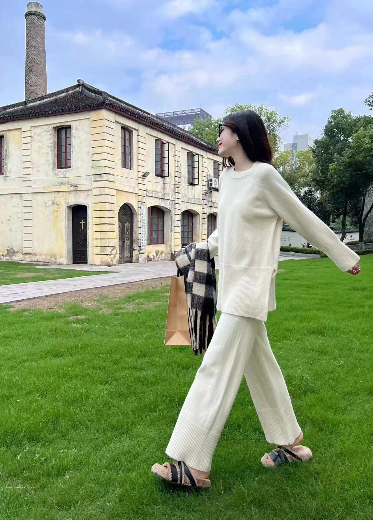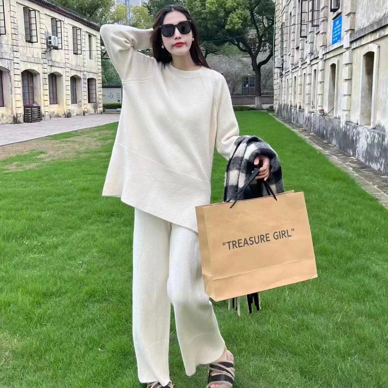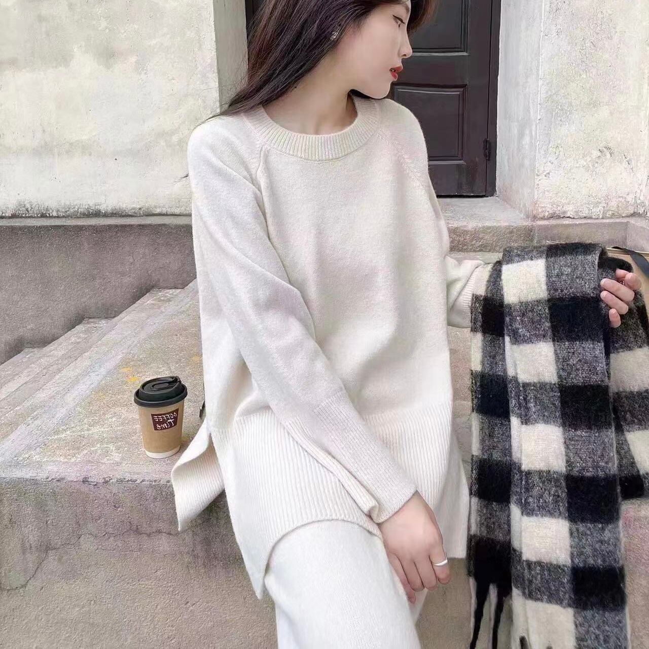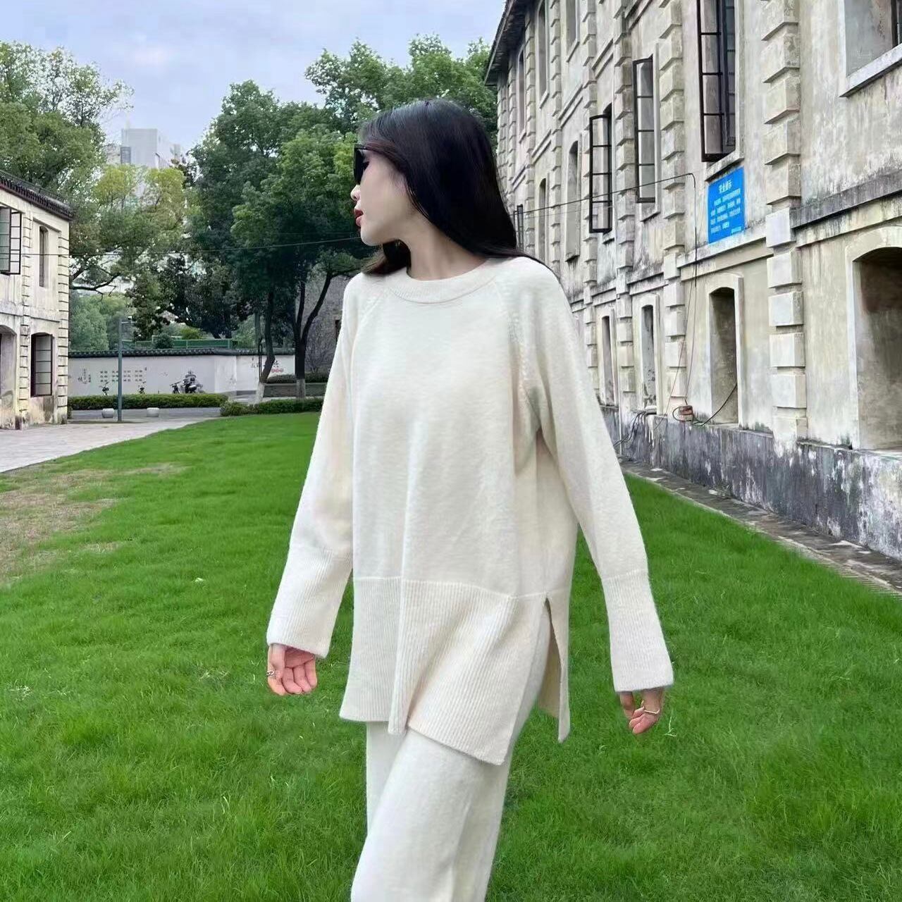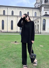 【set】ゆったりラウンドネックニットトップスxワイドパンツ YR1702