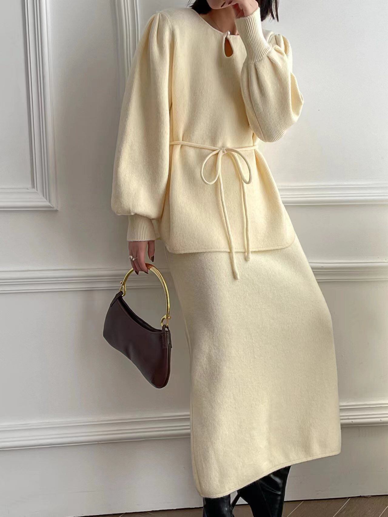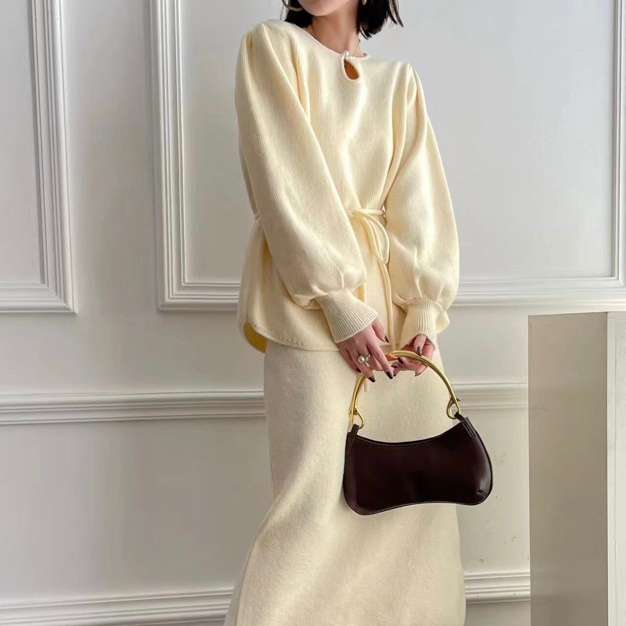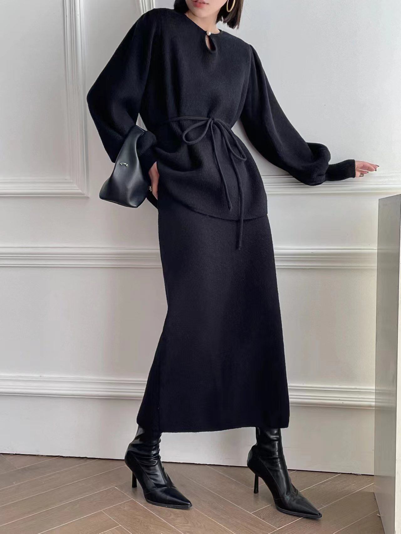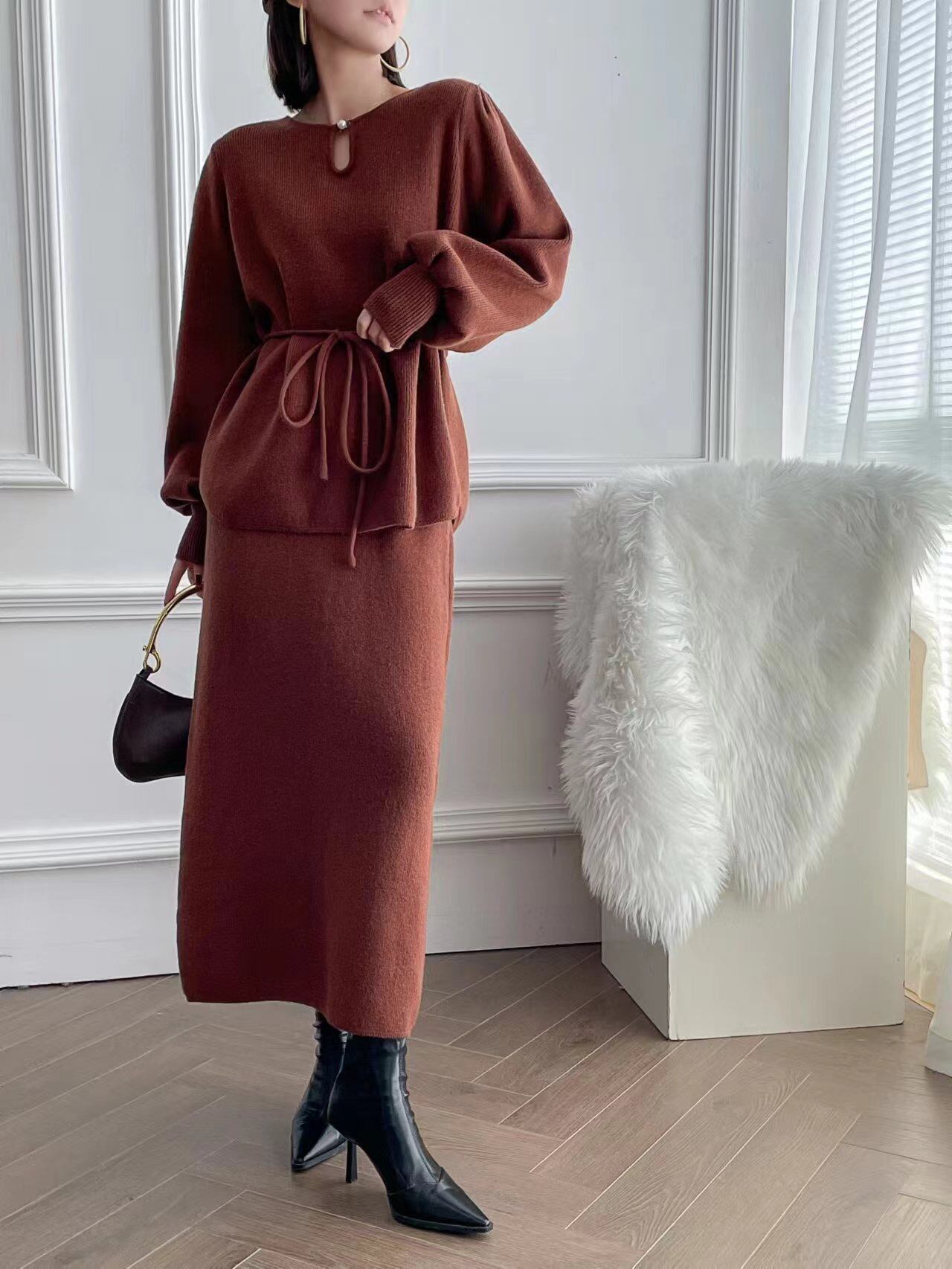【set】ゆったりパフスリーブニットトップスxスカート4色 TK2234