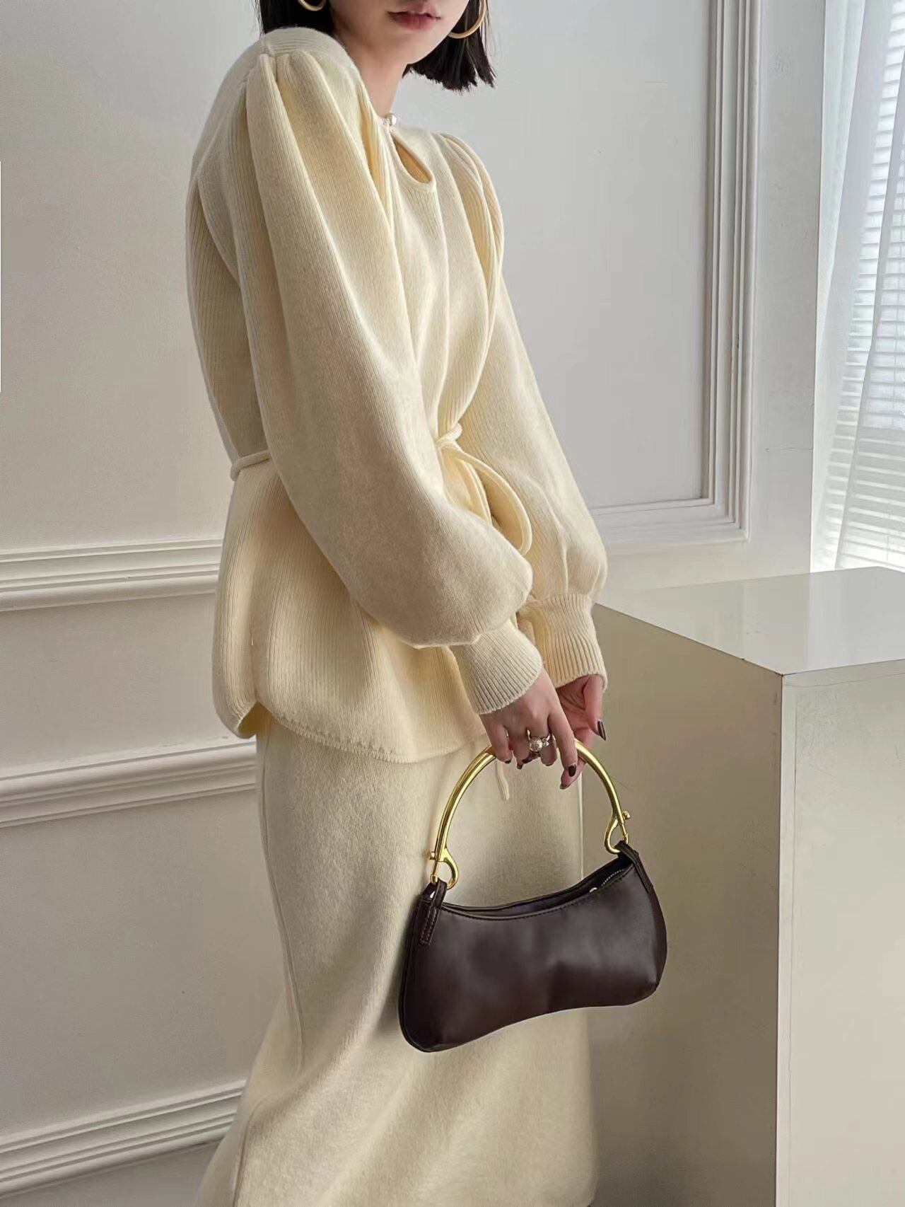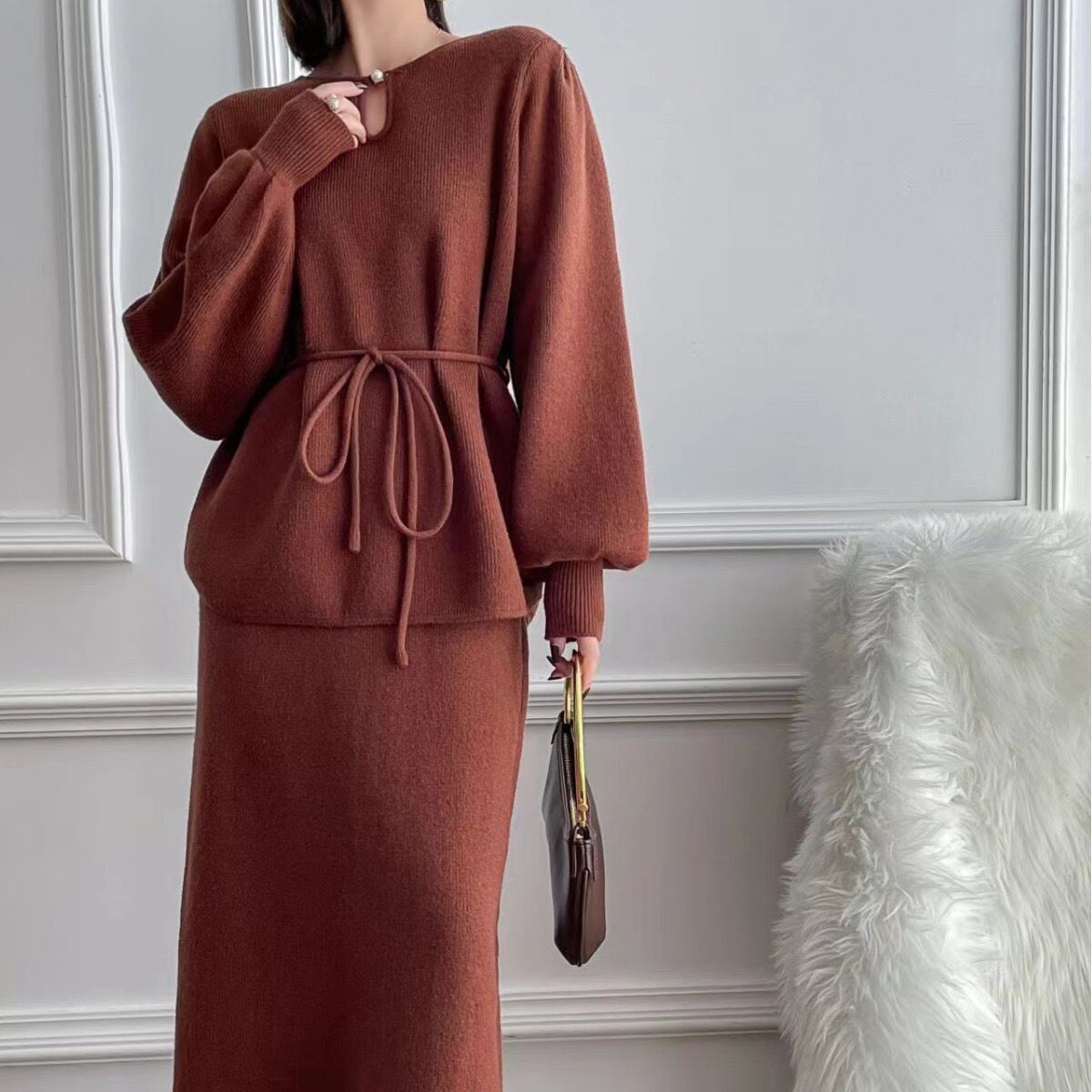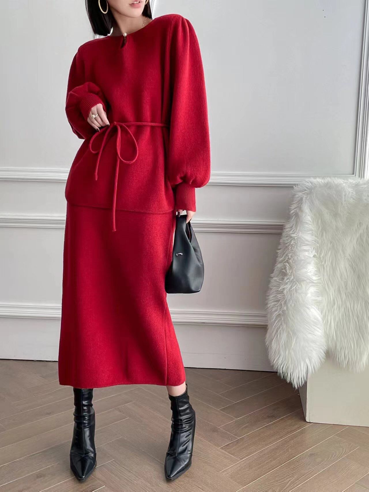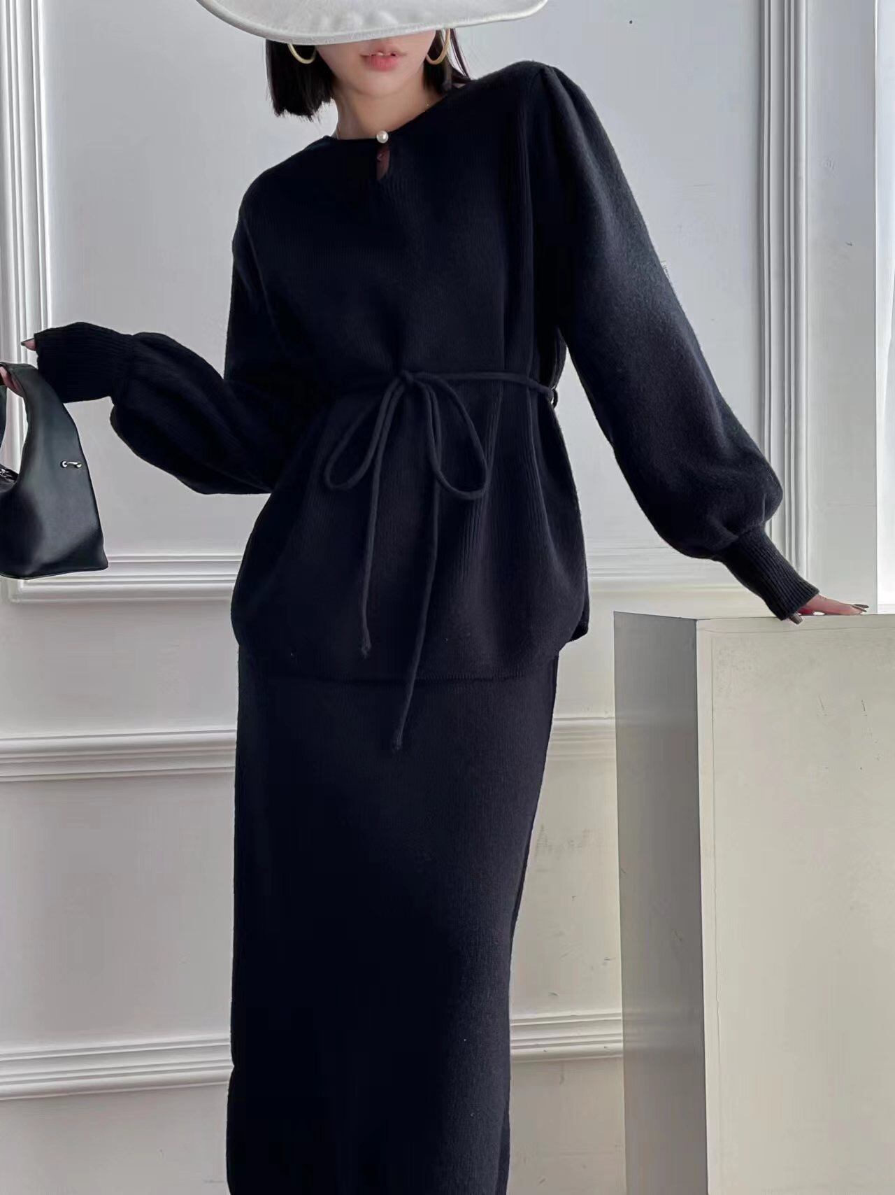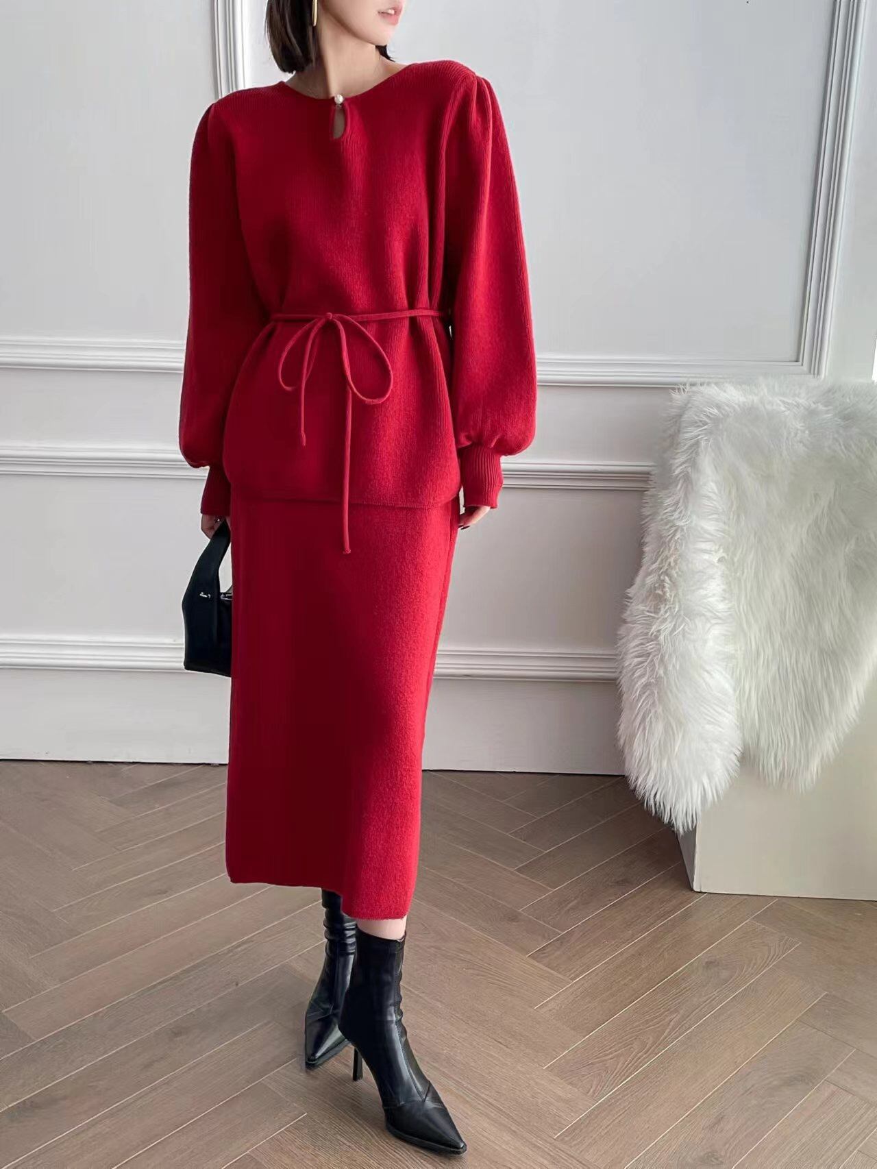 【set】ゆったりパフスリーブニットトップスxスカート4色 TK2234