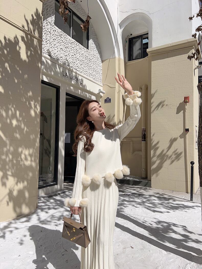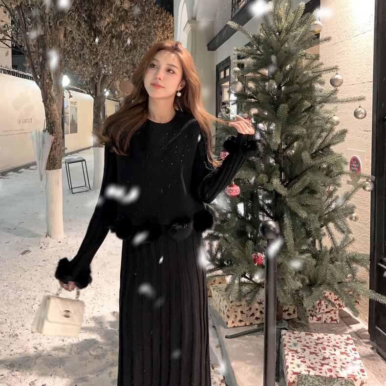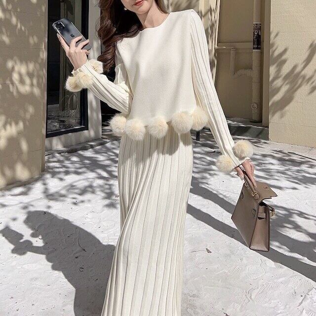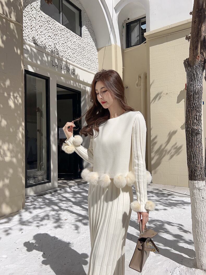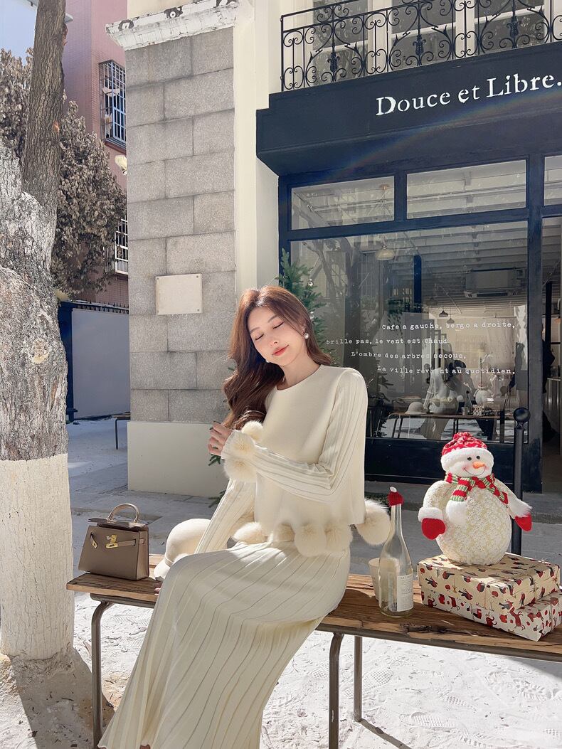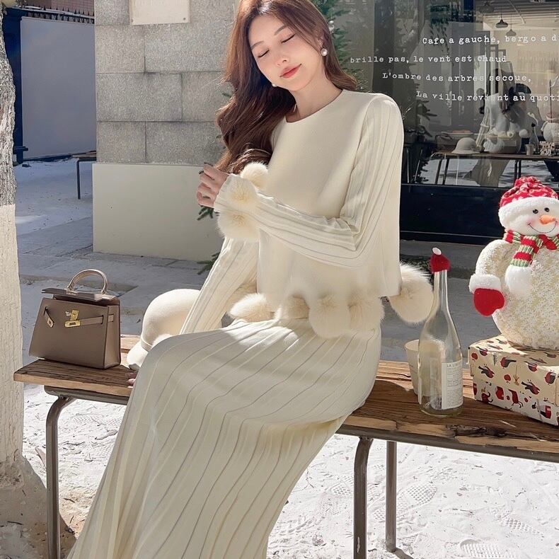 【set】エレガントニットワンピースxベストトップス2色 GT1745