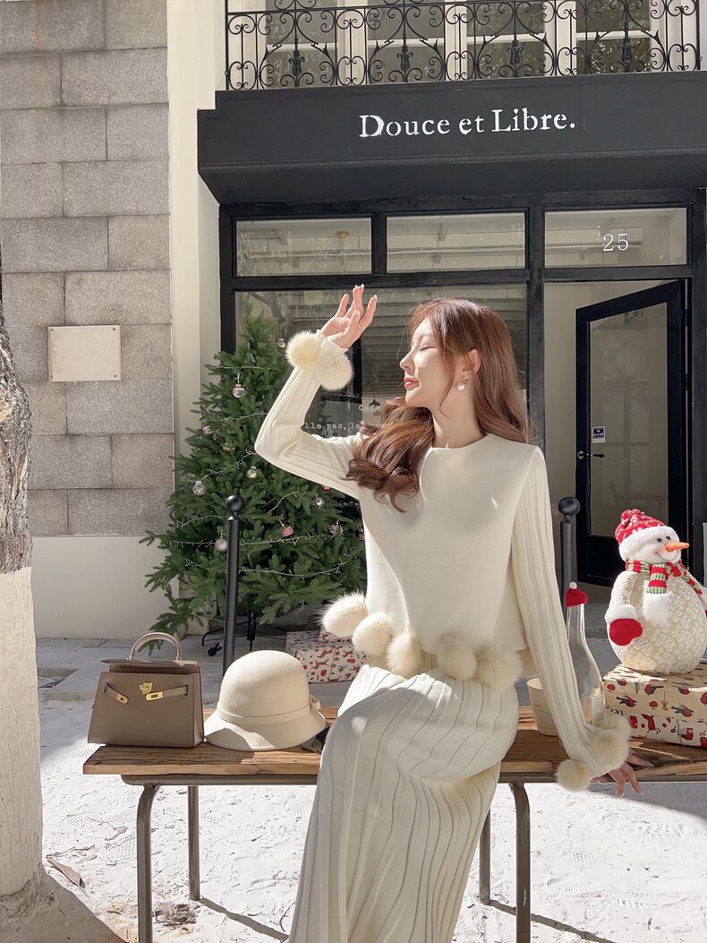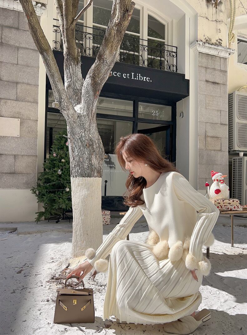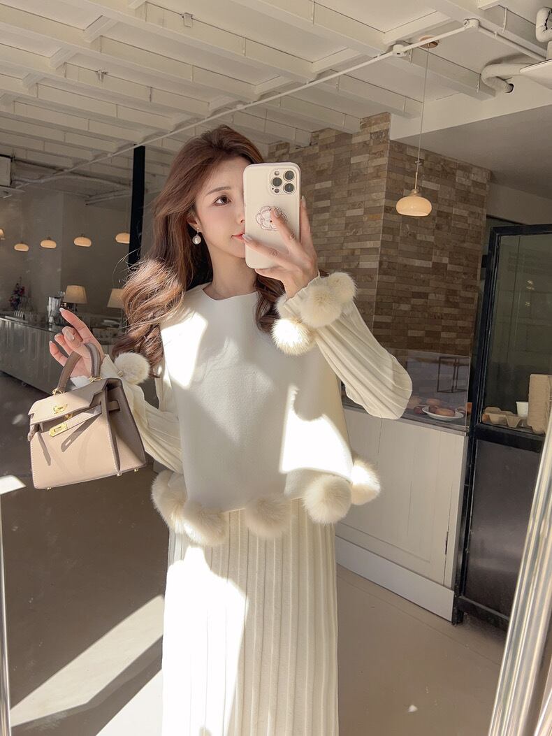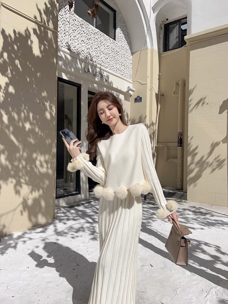 【set】エレガントニットワンピースxベストトップス2色 GT1745