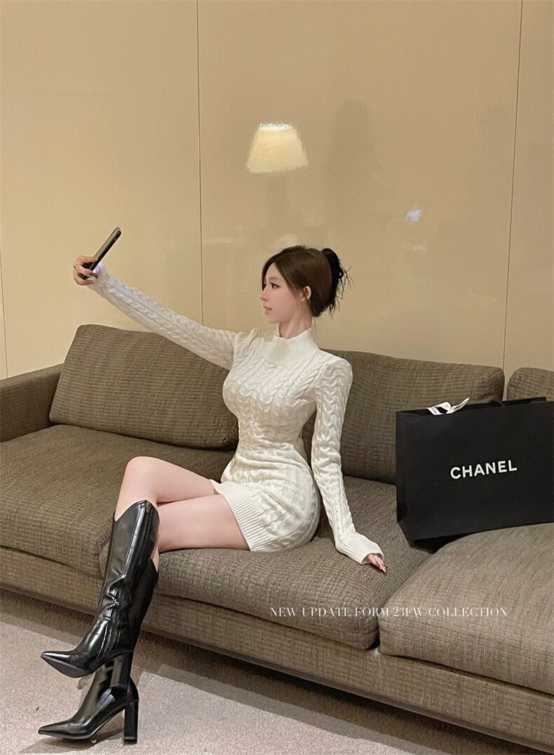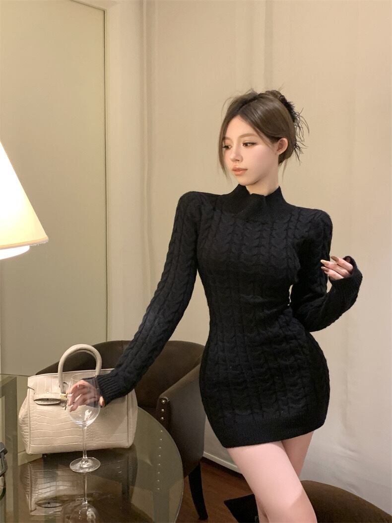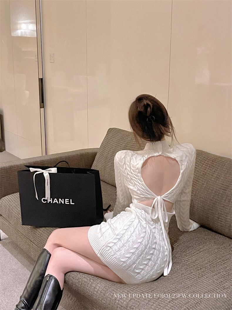 【dress】バックデザインミニニットワンピース3色 GY1940