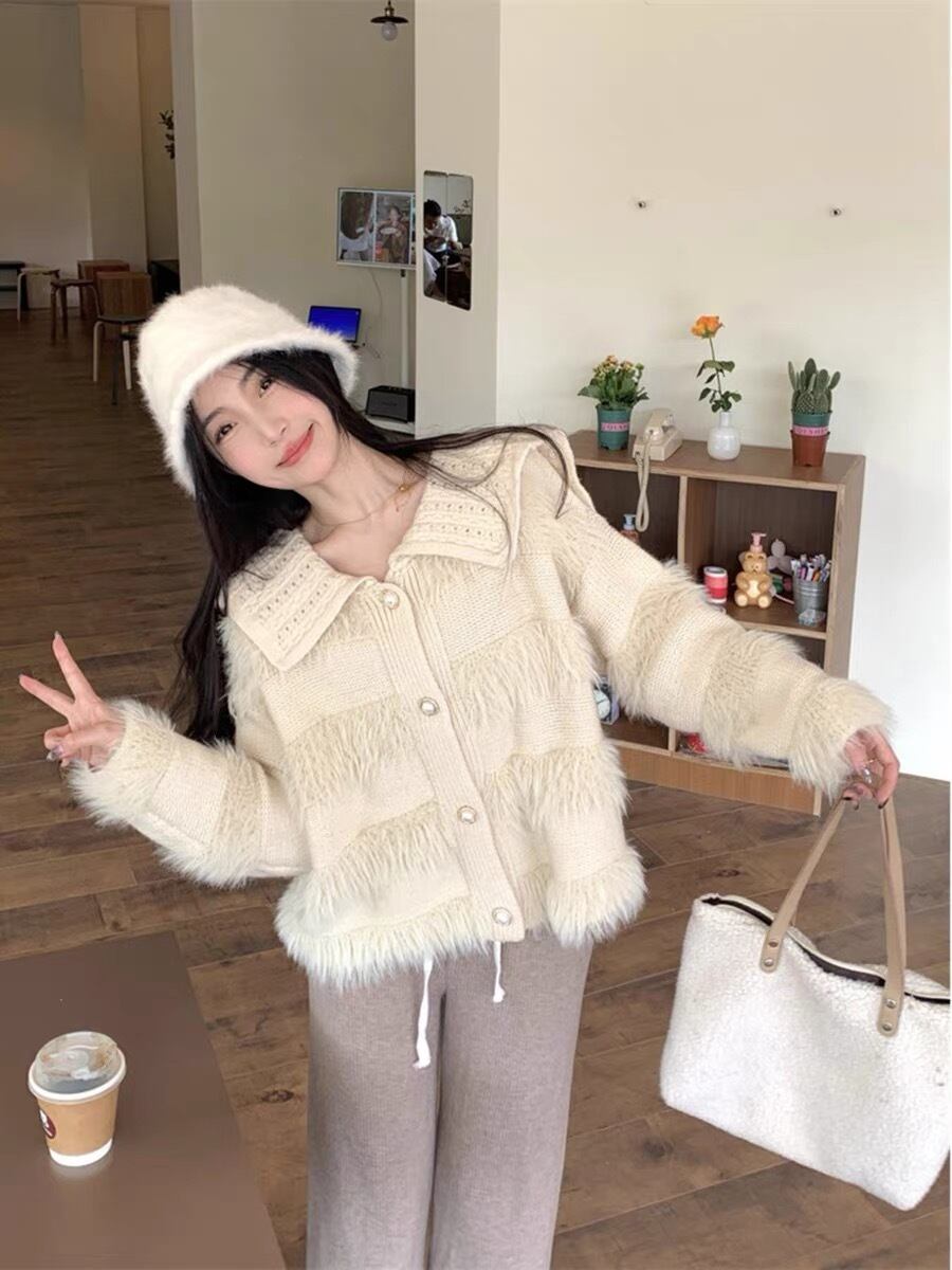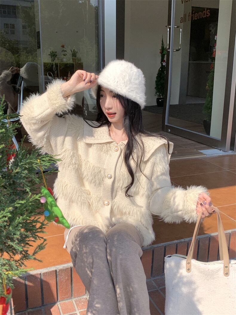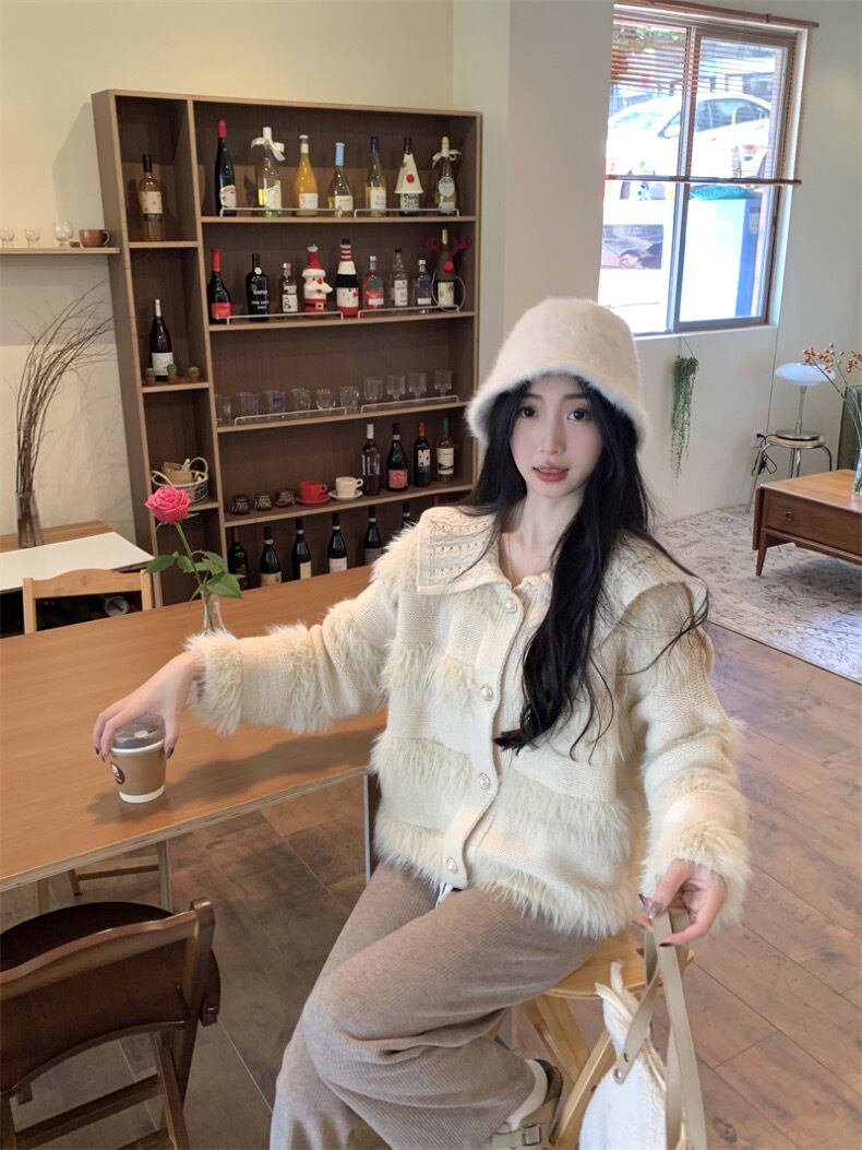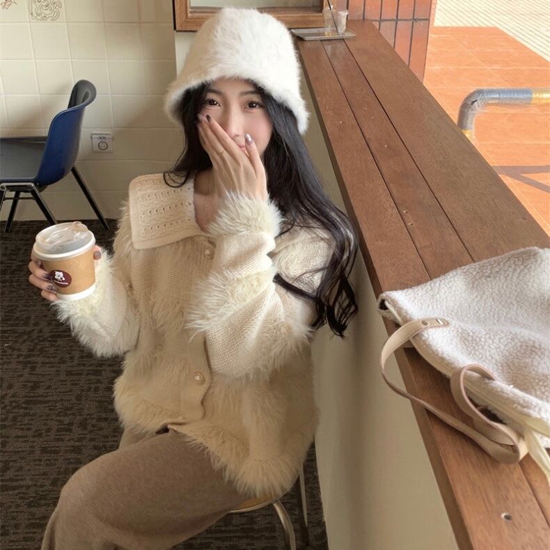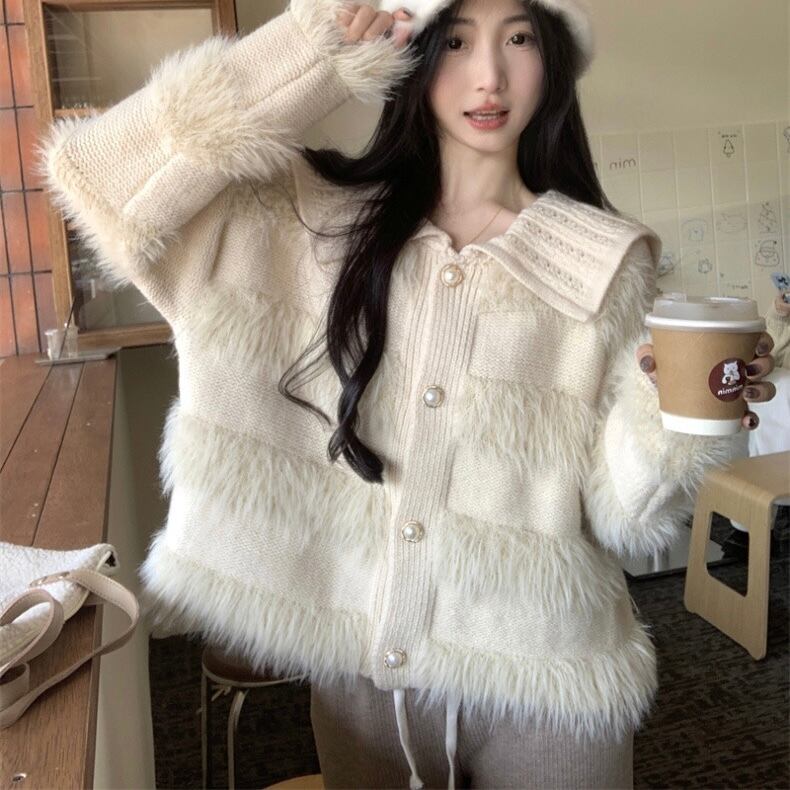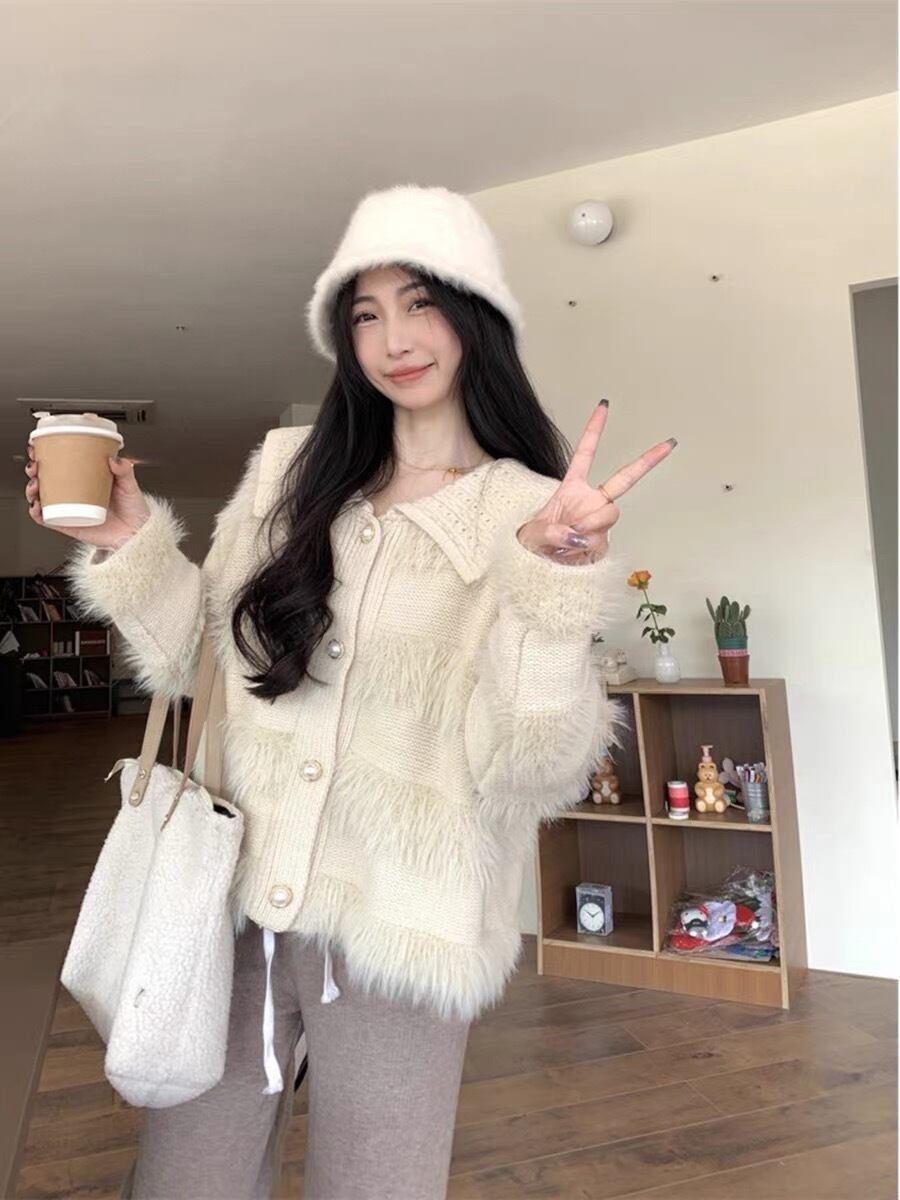 【outer】ゆったりパールボタン襟付きカーディガン KY1531
