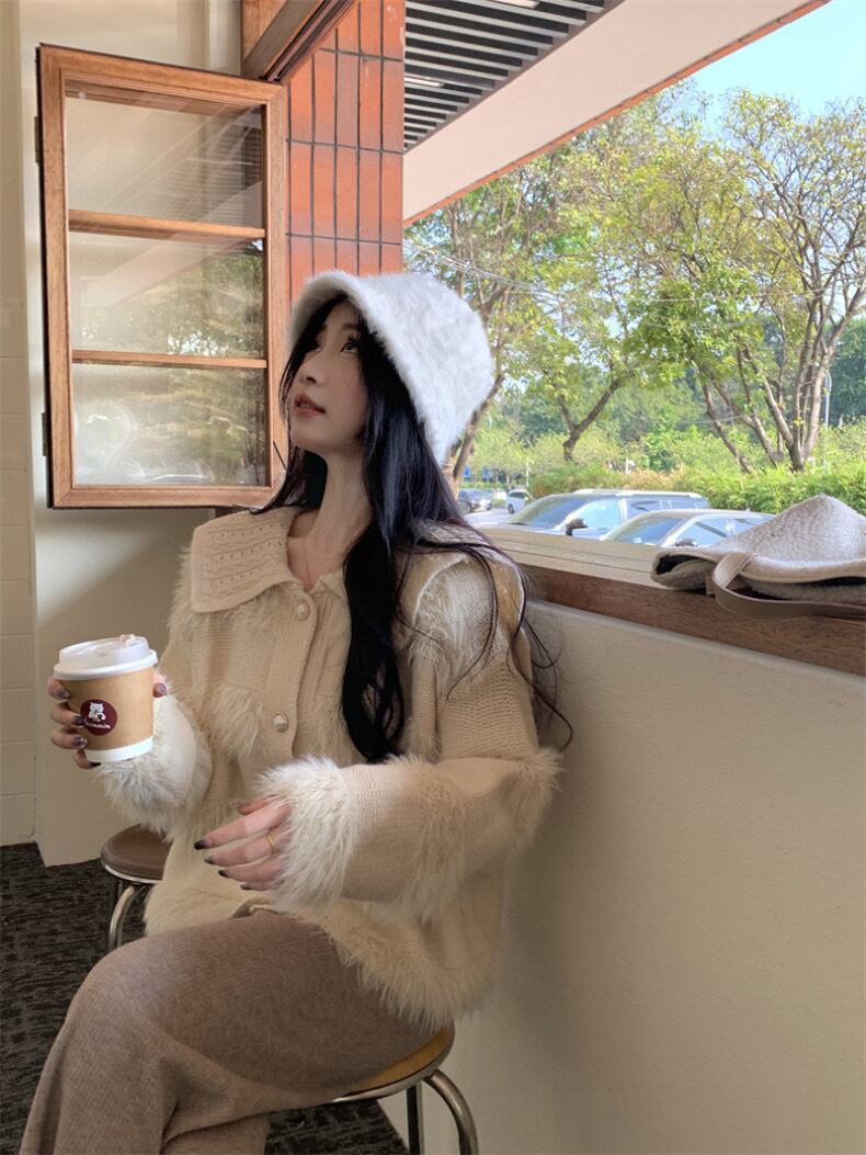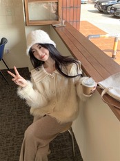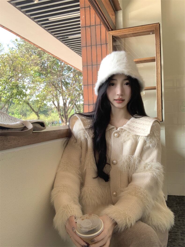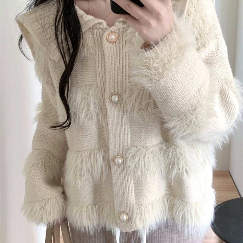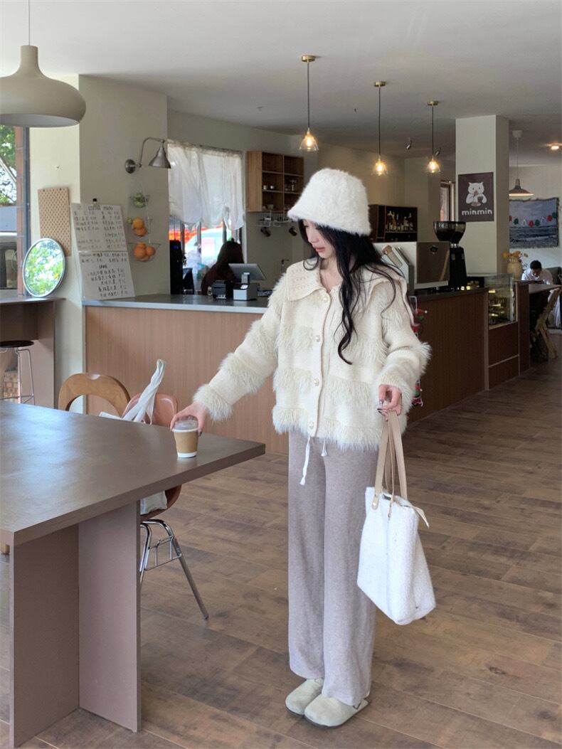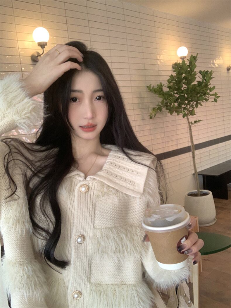 【outer】ゆったりパールボタン襟付きカーディガン KY1531