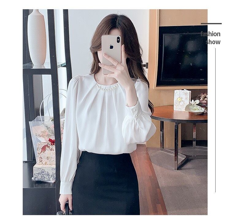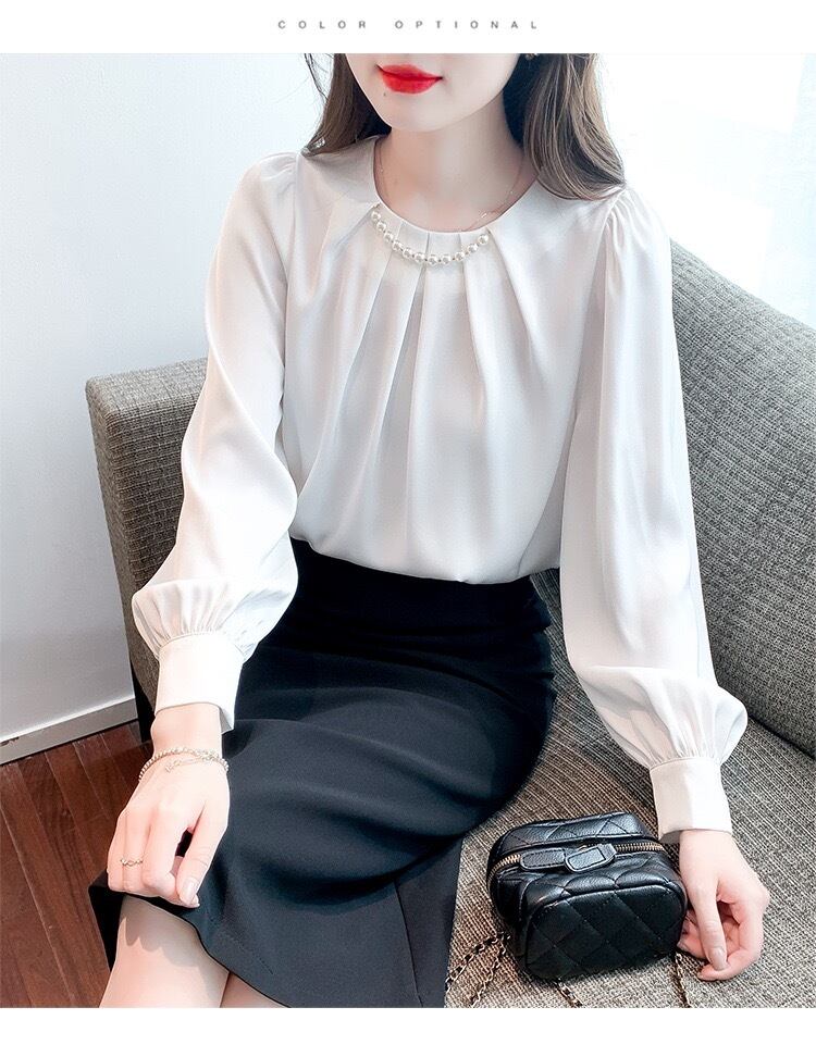 【tops】パールデザインギャザーブラウス2色 ZG1445