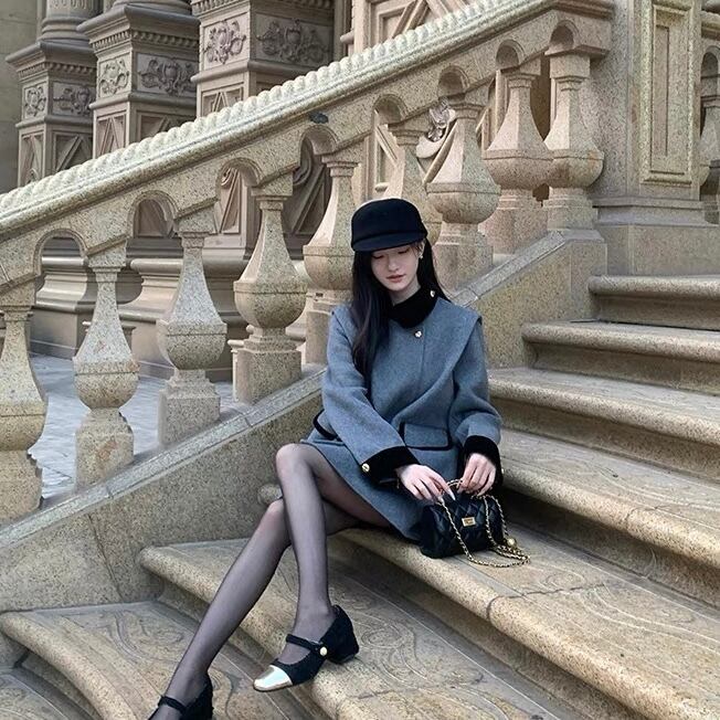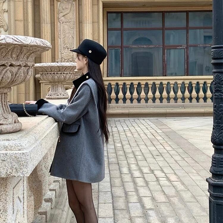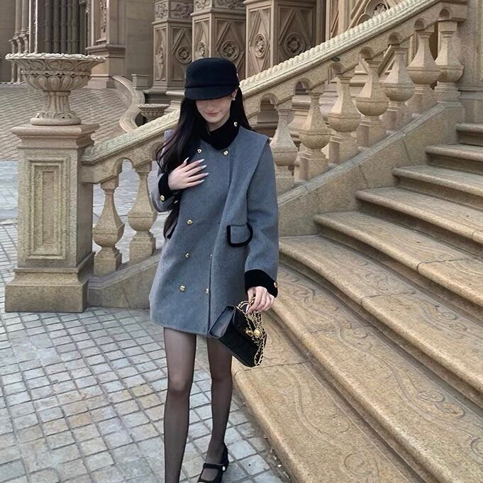 【outer】ダブルボタンデザイン配色コート ZG2137