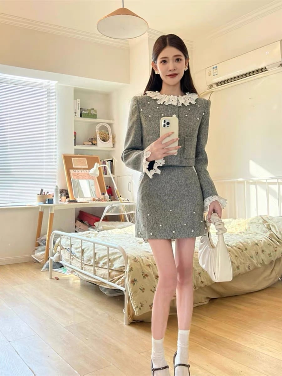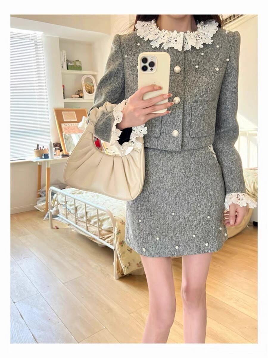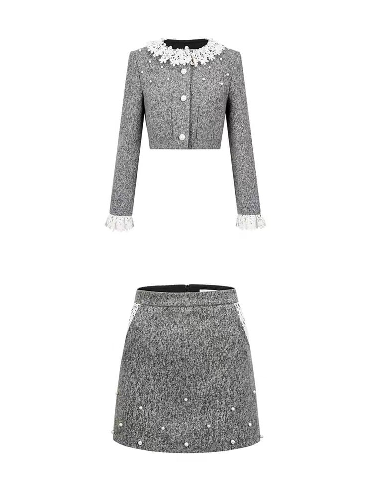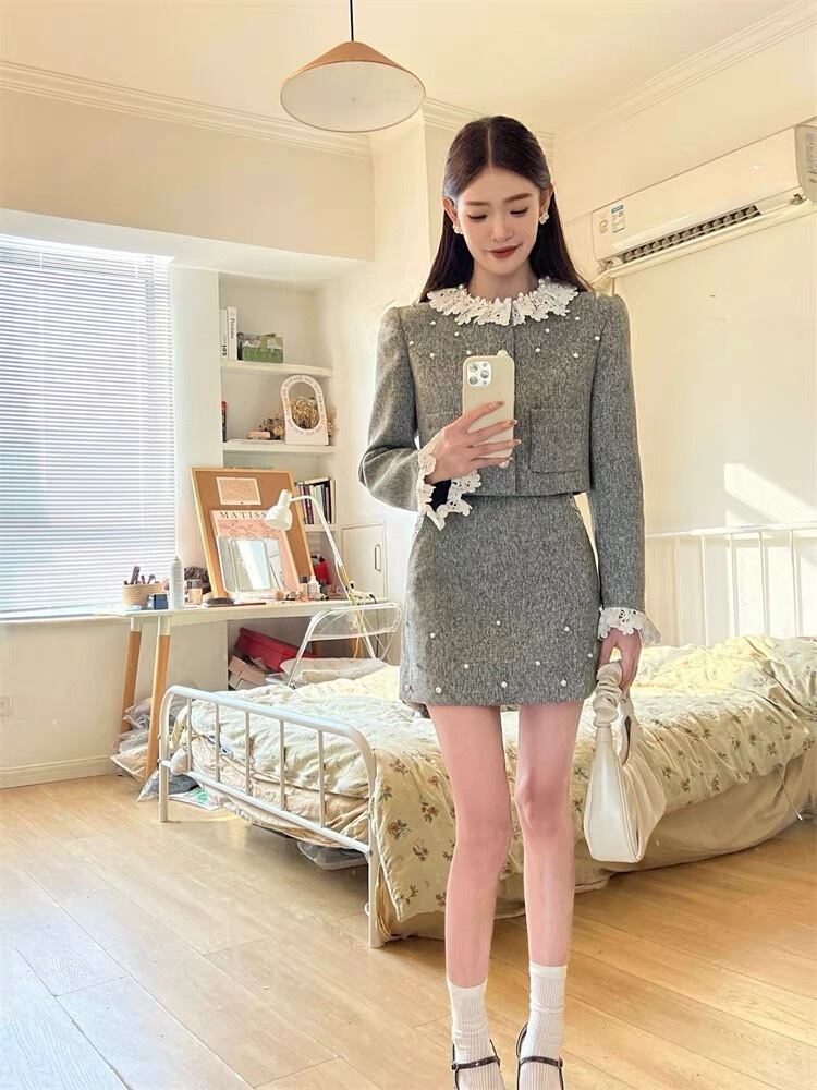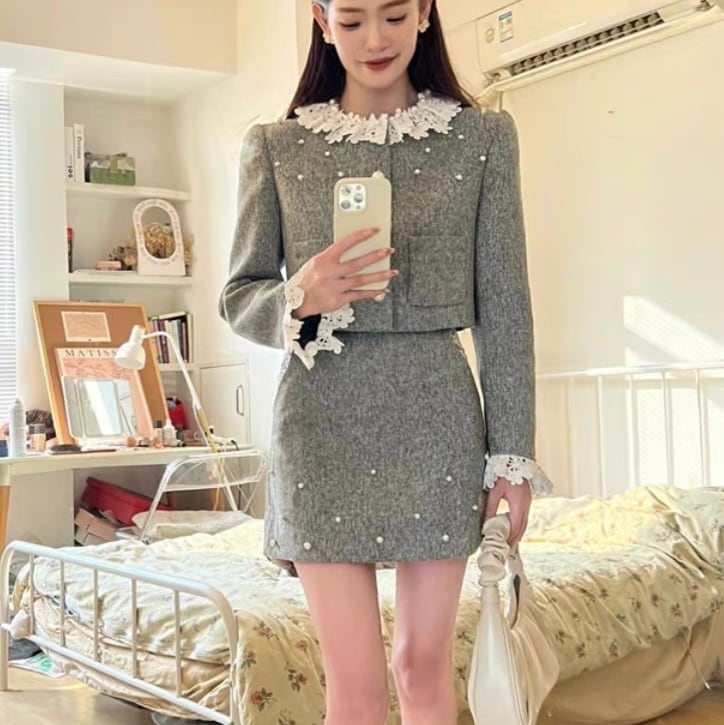 【set】レースフリル切り替えジャケットxミニスカート RB0001