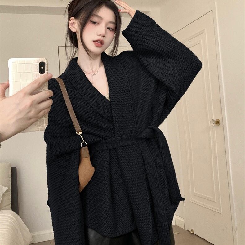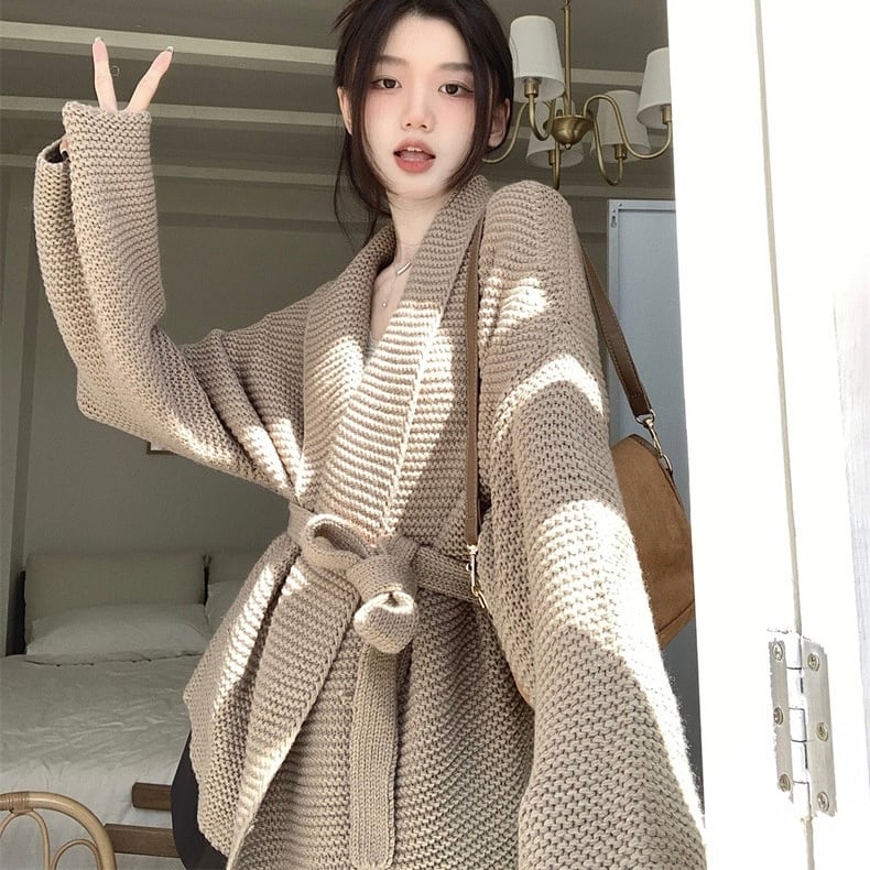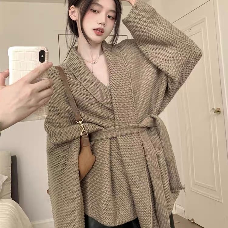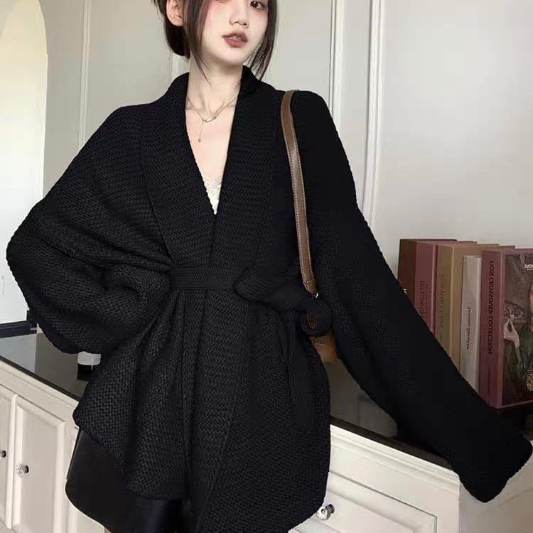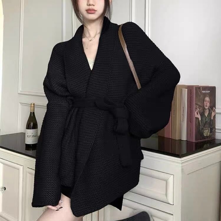【outer】ゆっくりリボンベルト付きカーディガン2色 KG0006