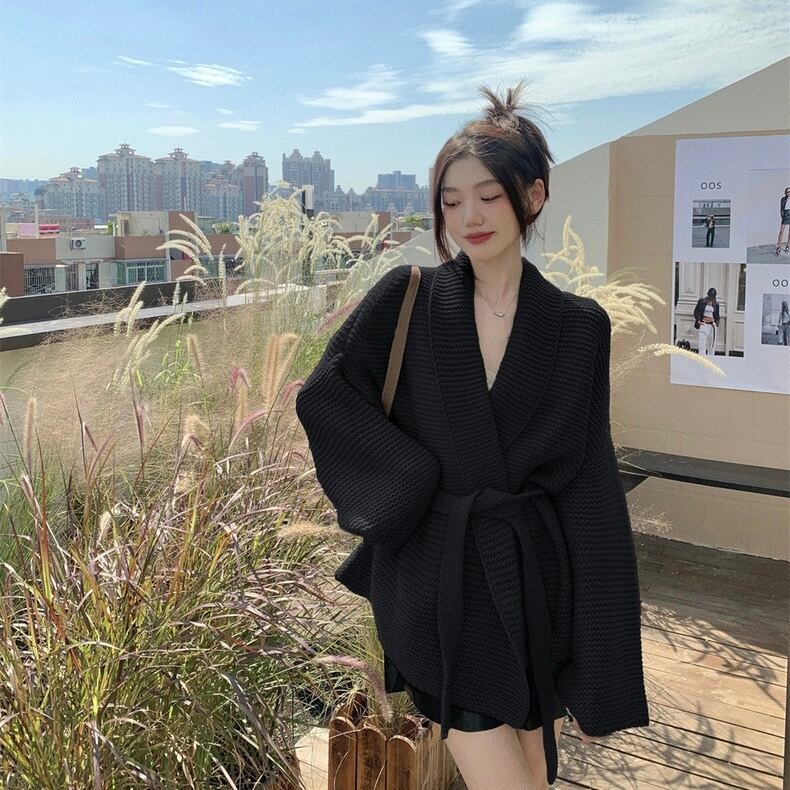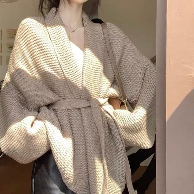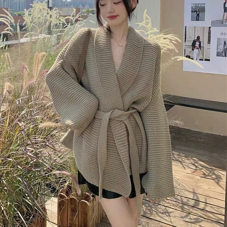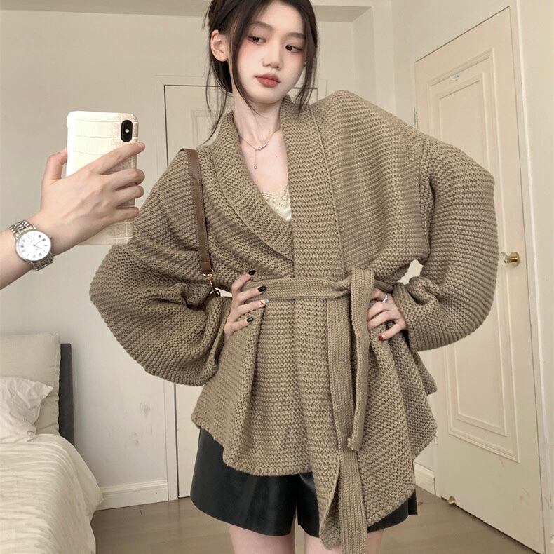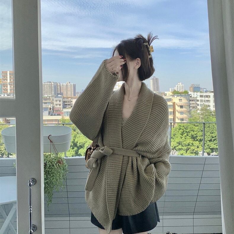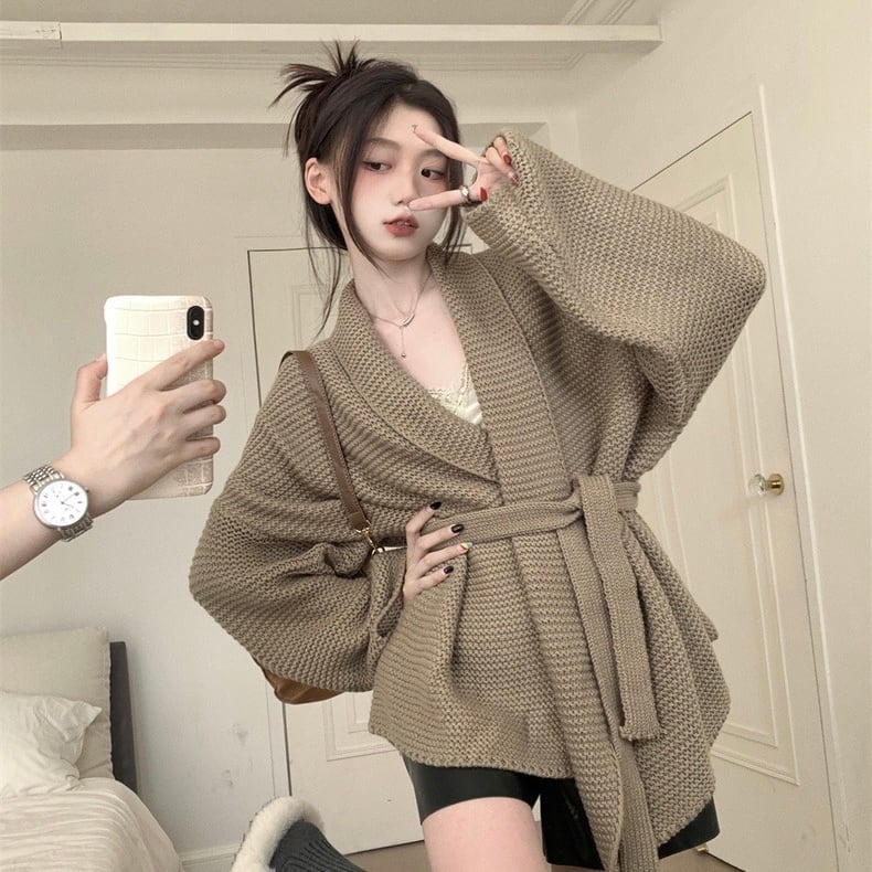 【outer】ゆっくりリボンベルト付きカーディガン2色 KG0006
