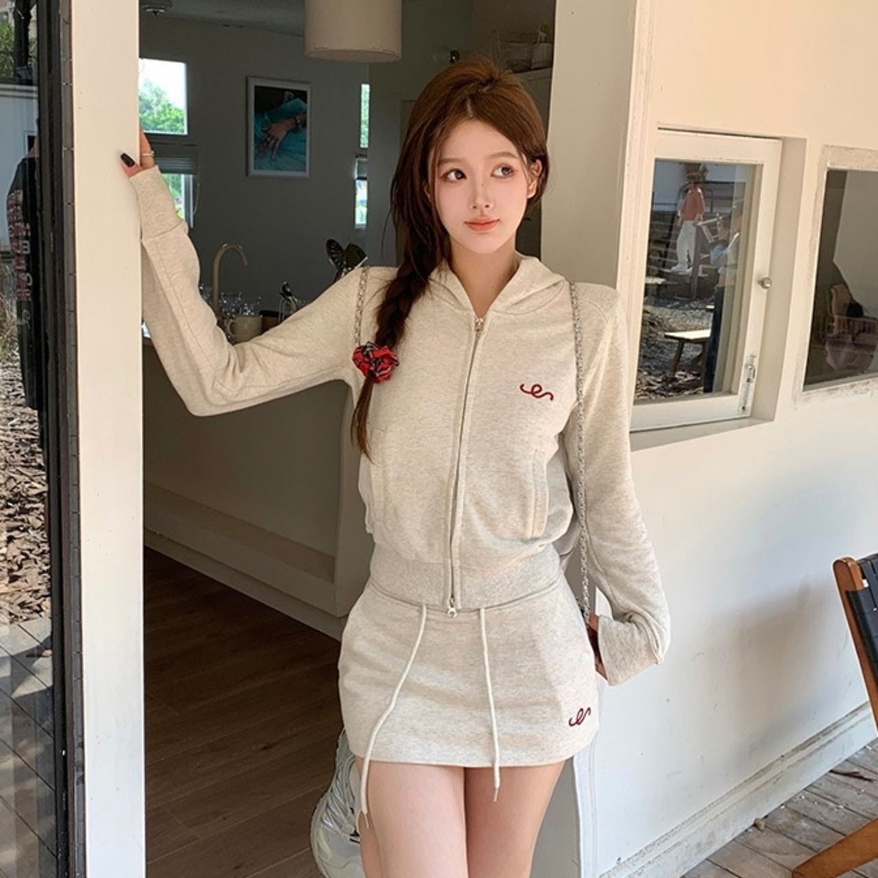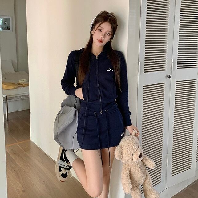 【set】着回しフード付きジャケットxミニスカート2色 KG0008