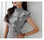 【set】チェック柄フリルトップスxショートパンツ KG0011