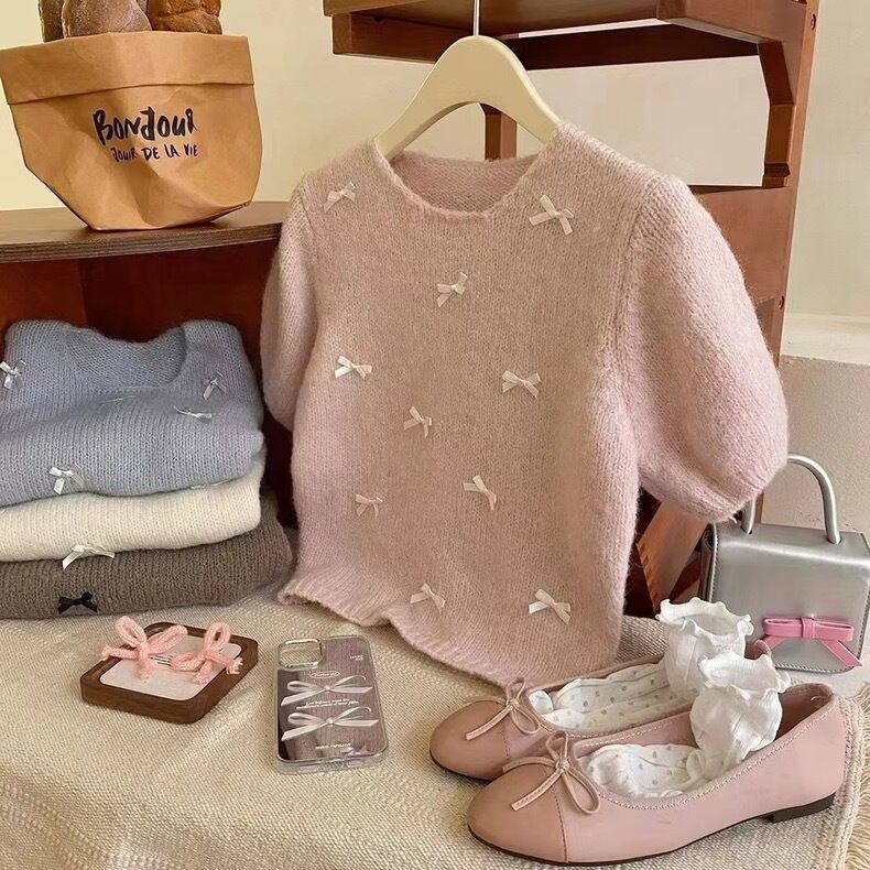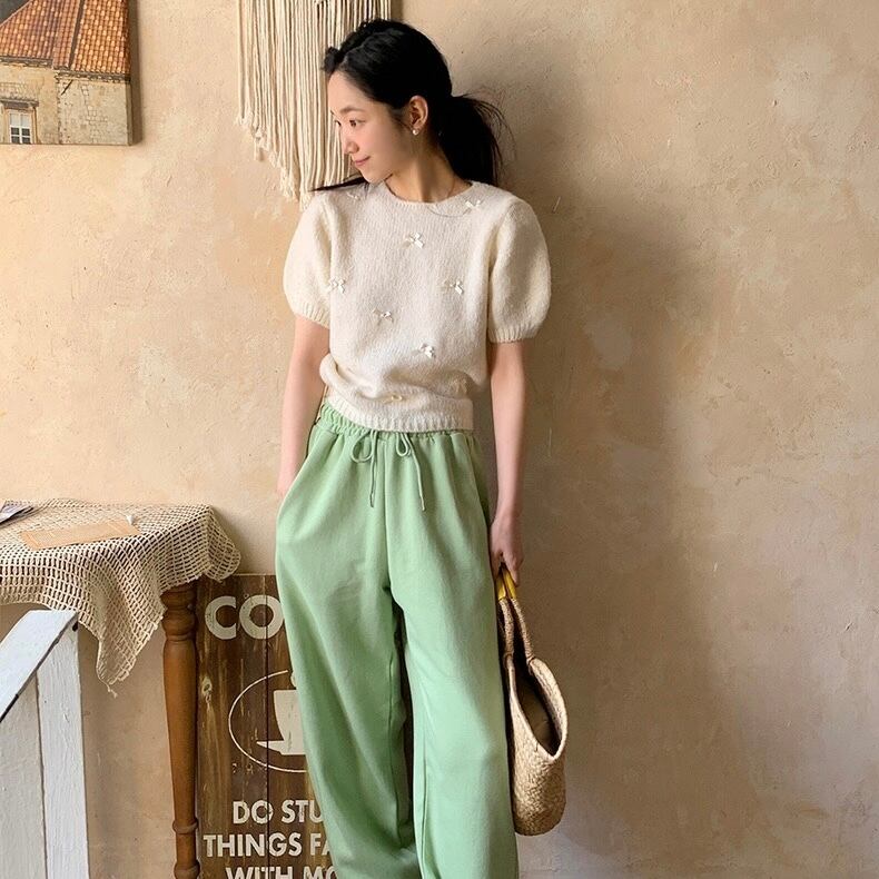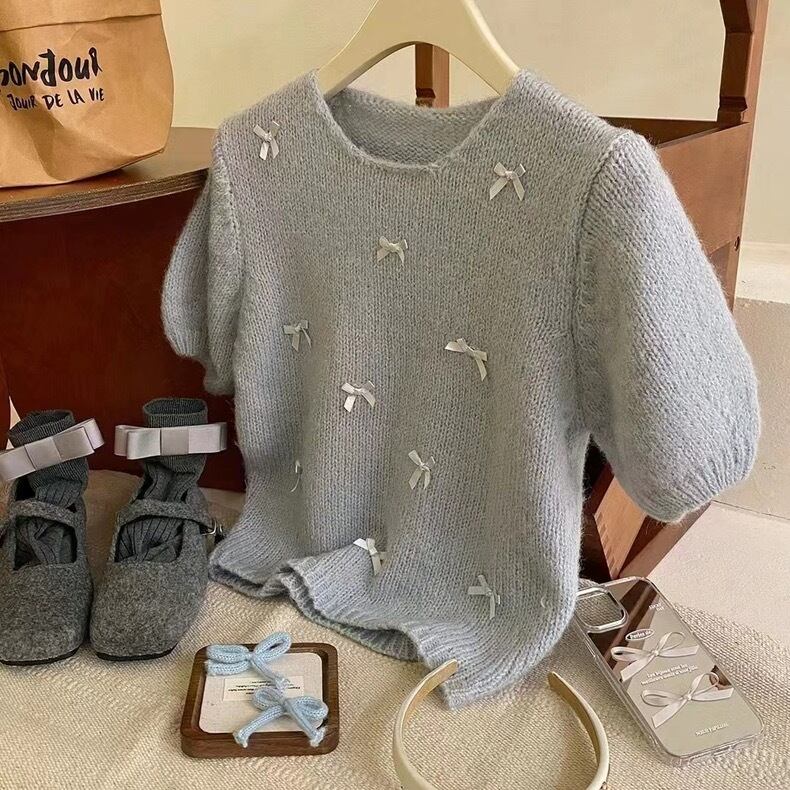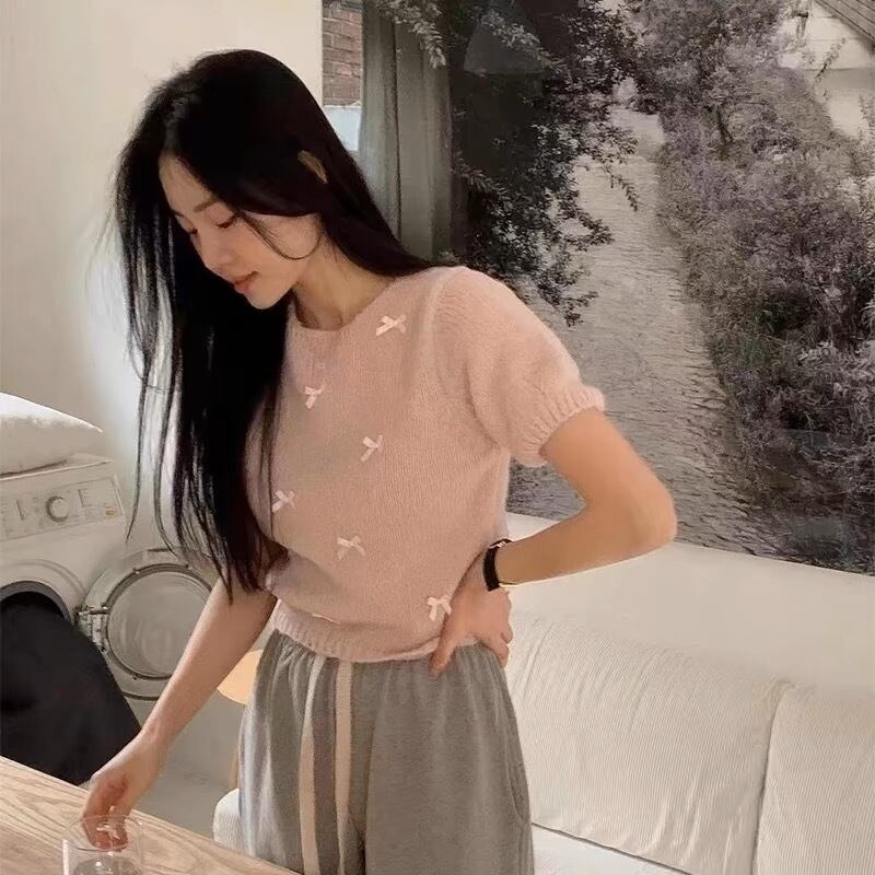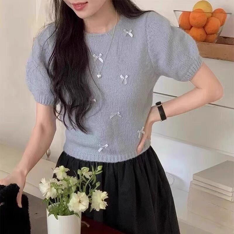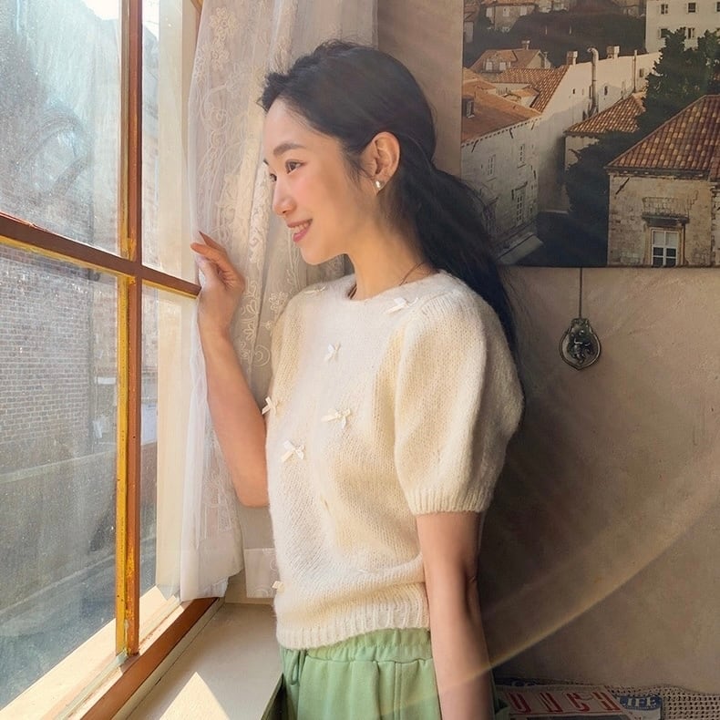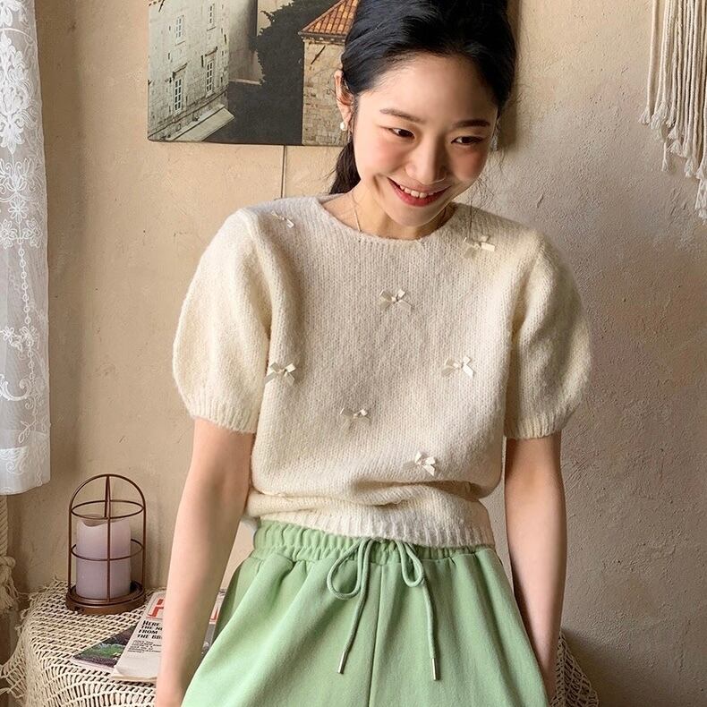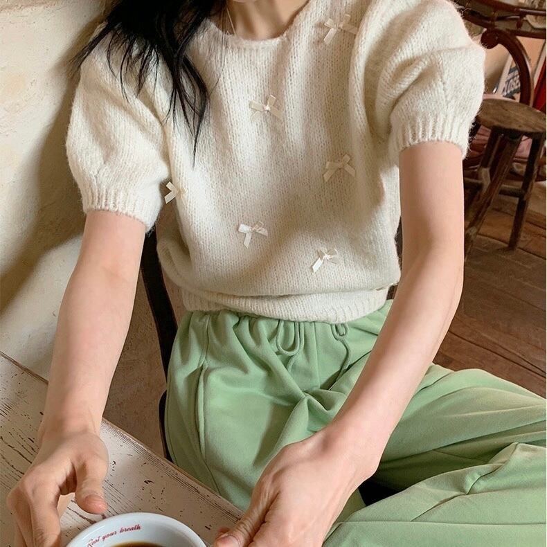 【tops】リボンデザインニット半袖トップス4色 KG0019