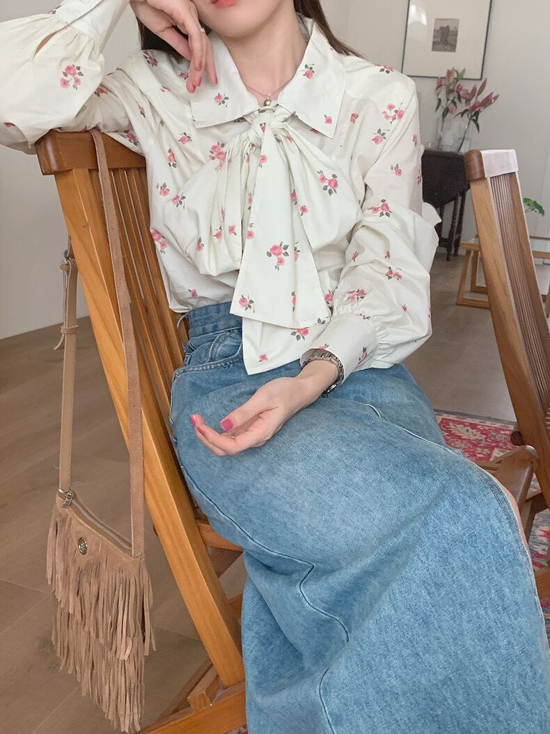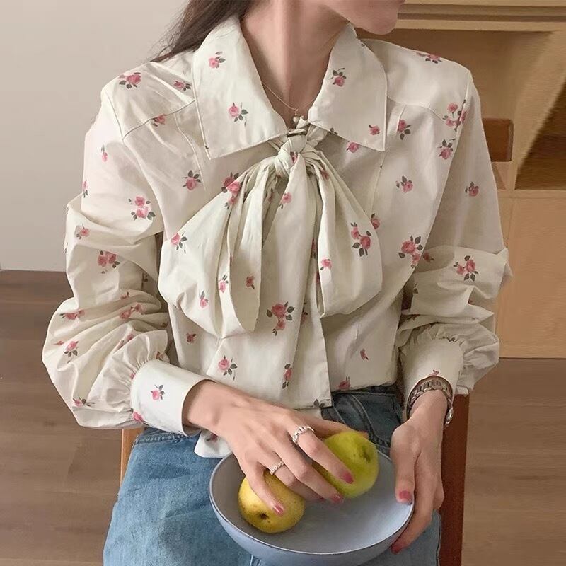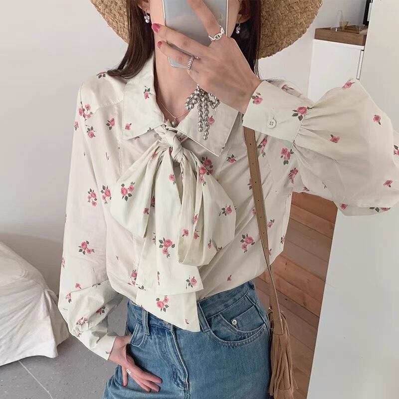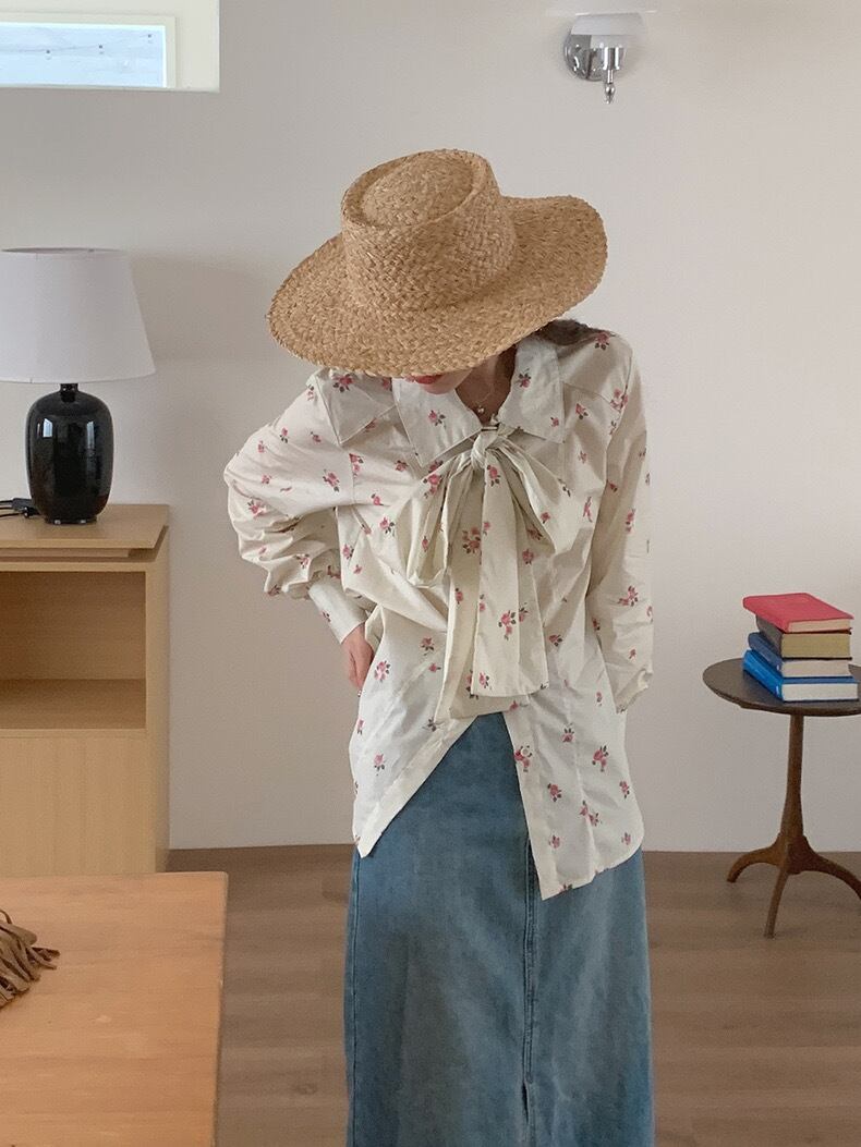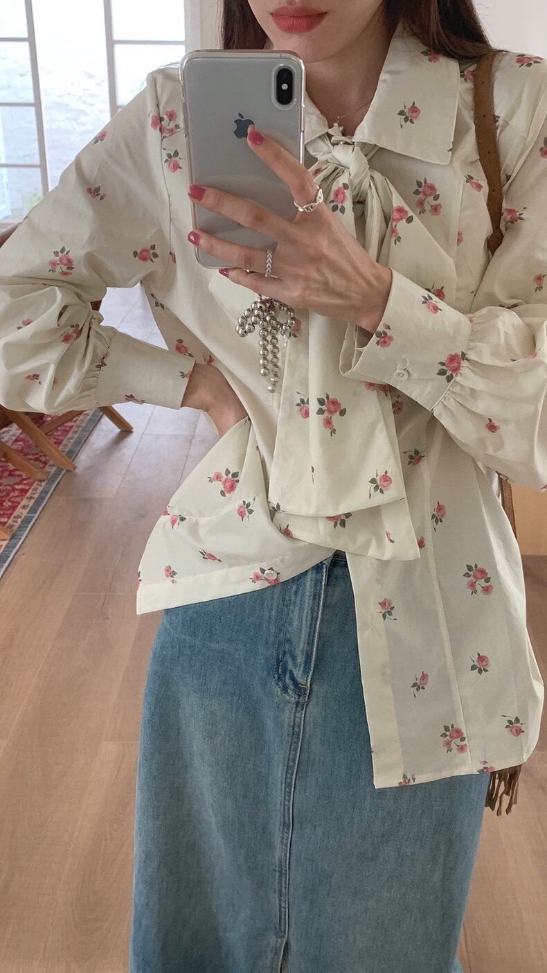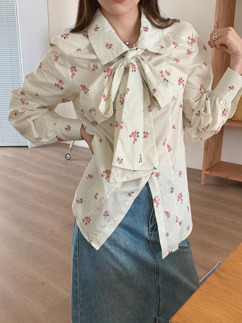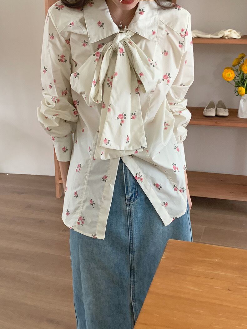 【tops】花柄レトロシャツブラウス KG0020