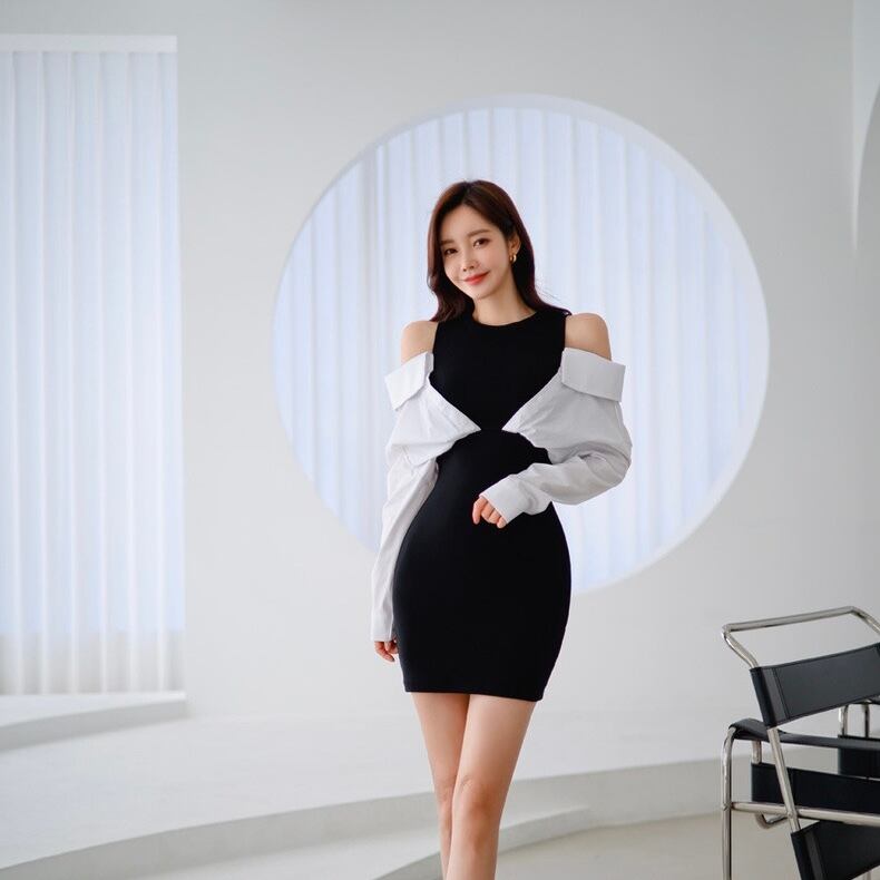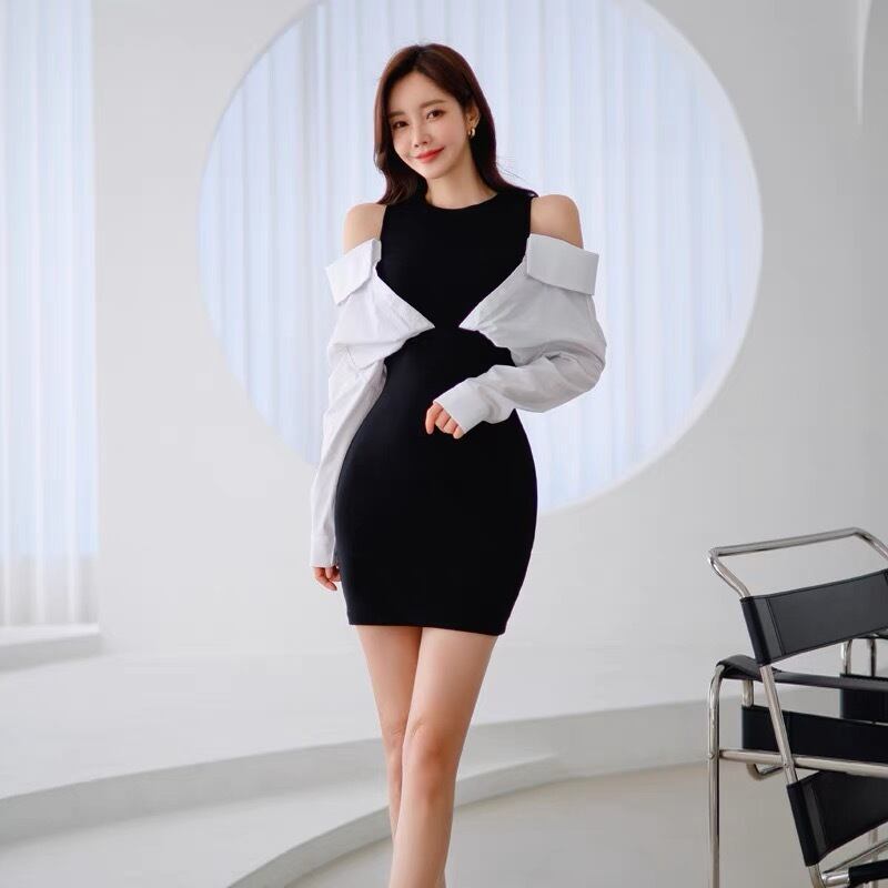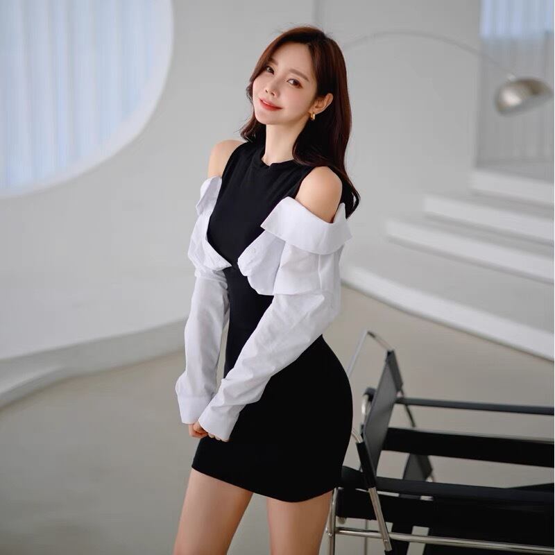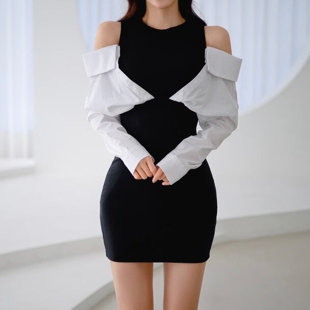 【dress】肩見せ配色ミニワンピース KG0030