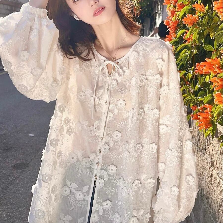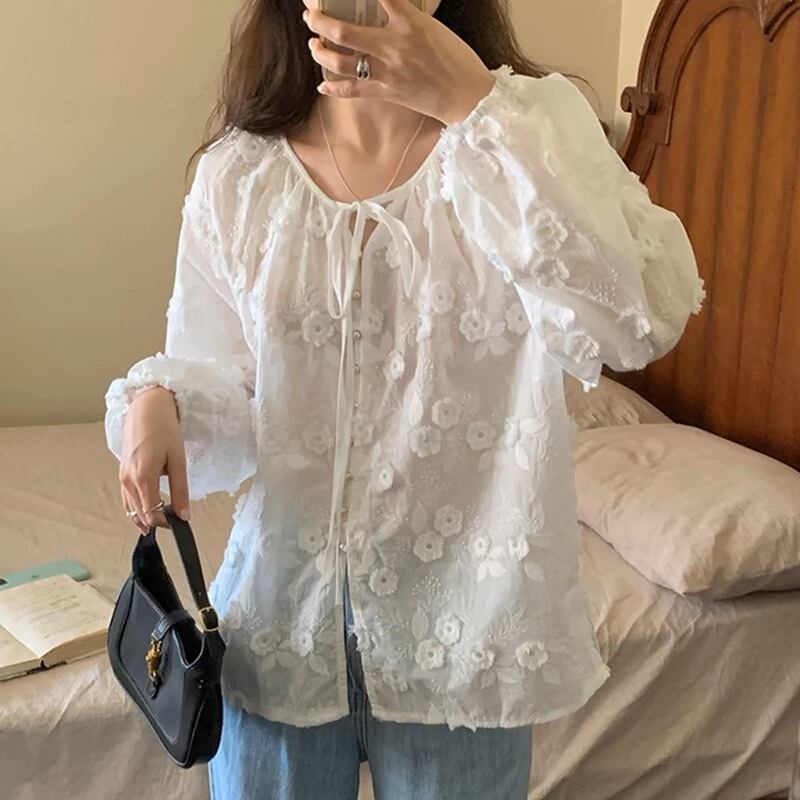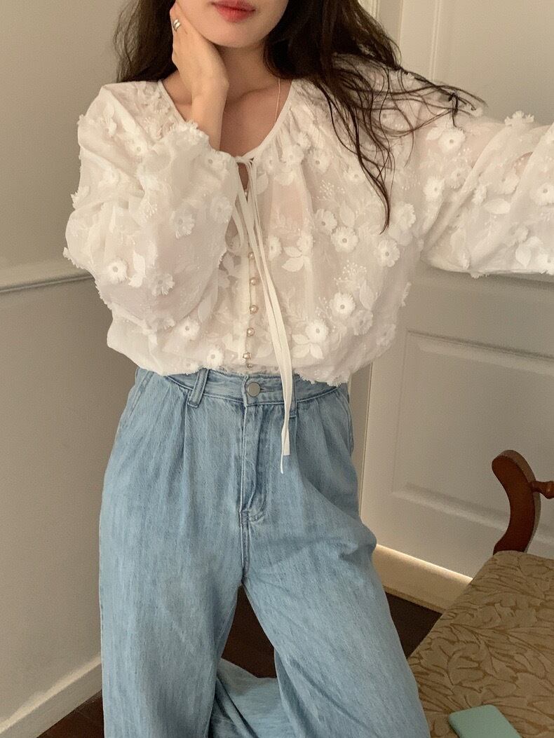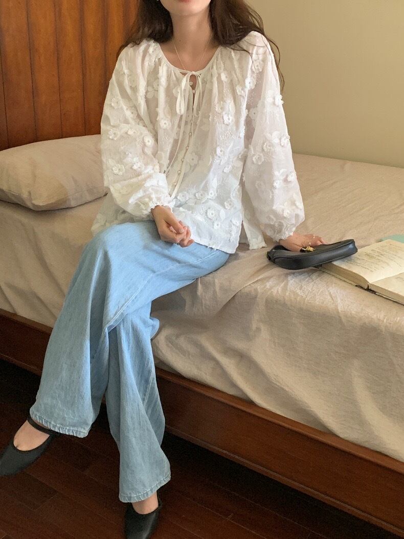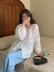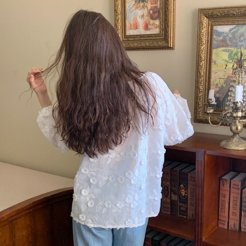 【tops】フラワー刺繍シャツブラウス KG0034