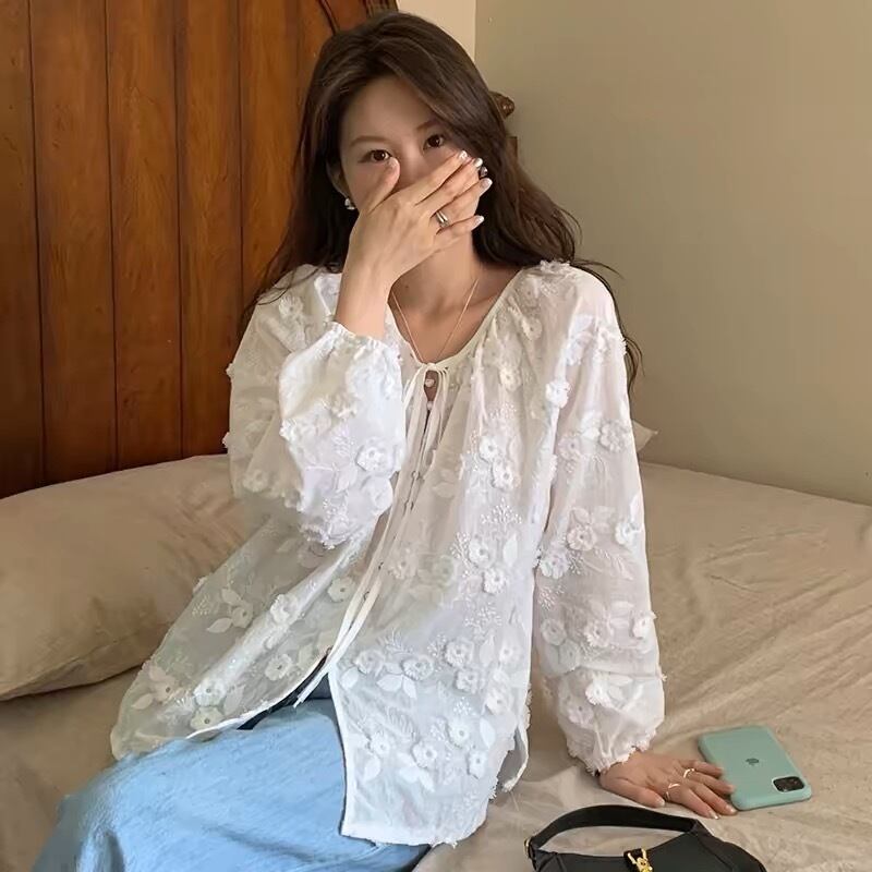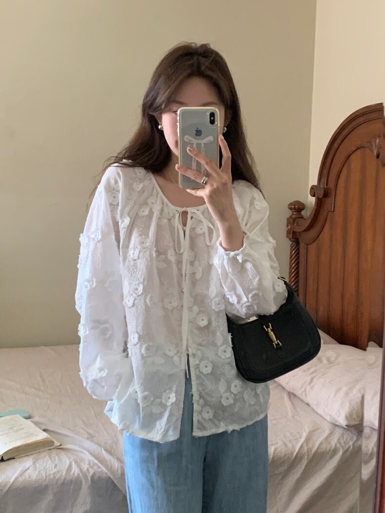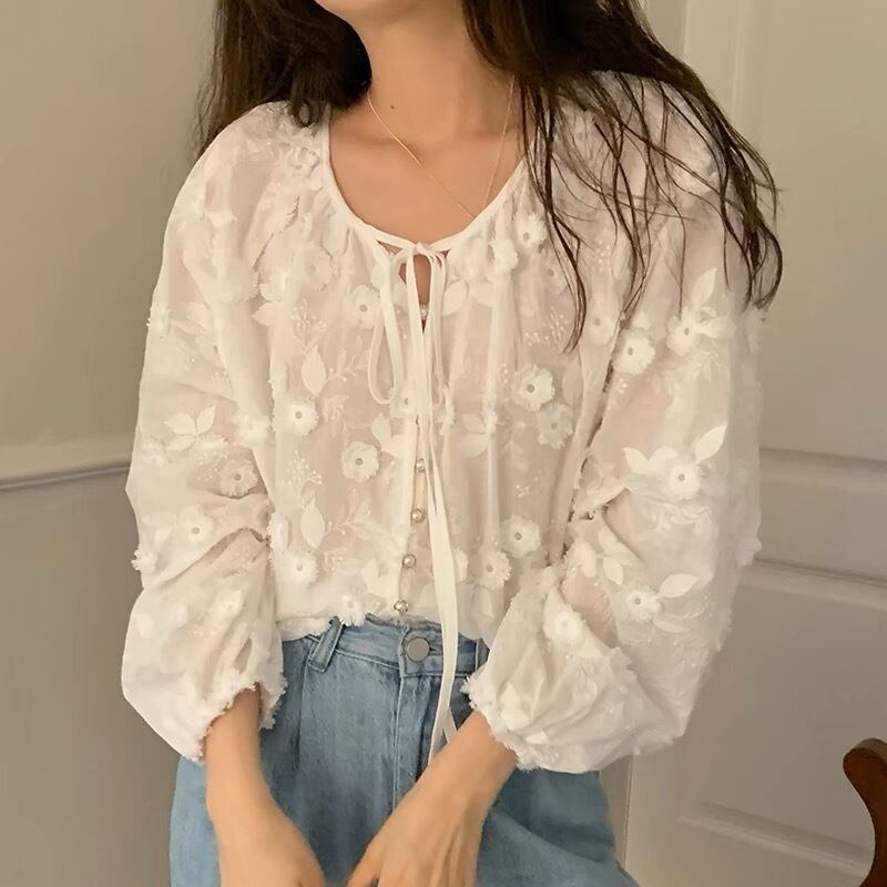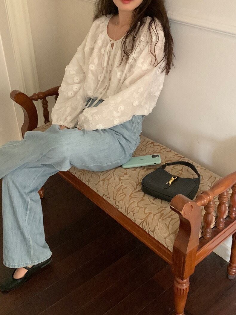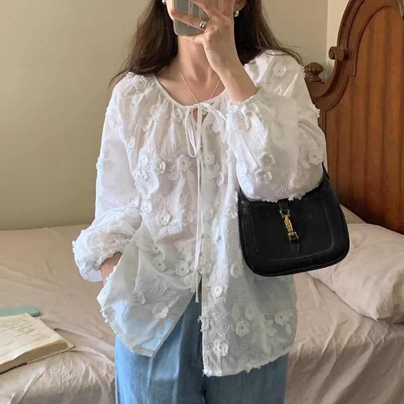 【tops】フラワー刺繍シャツブラウス KG0034