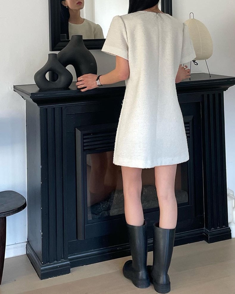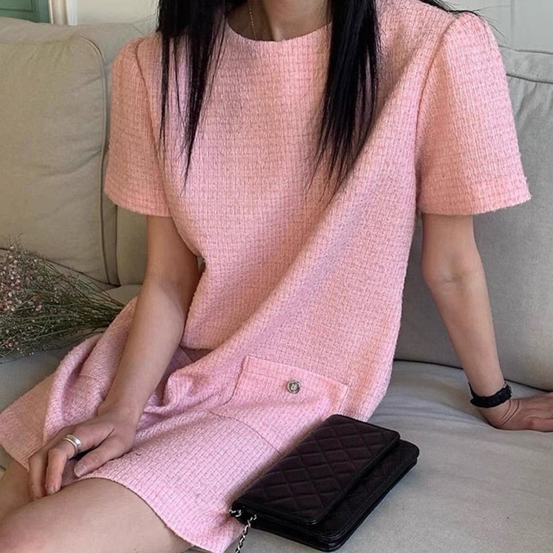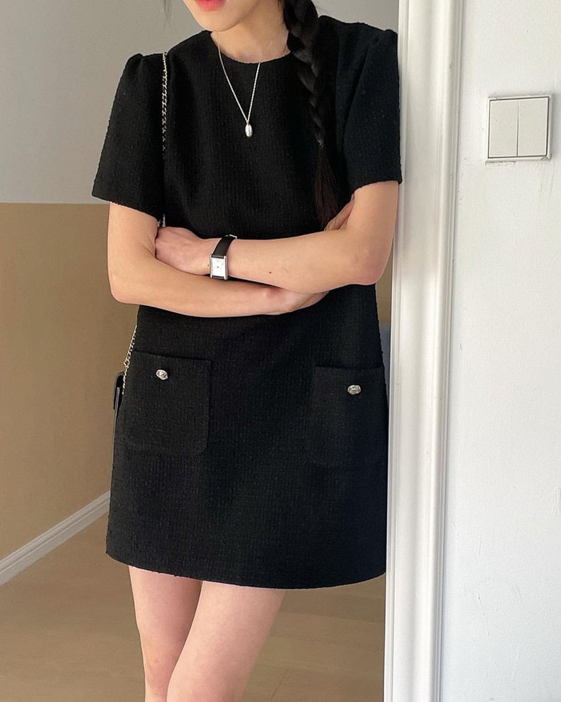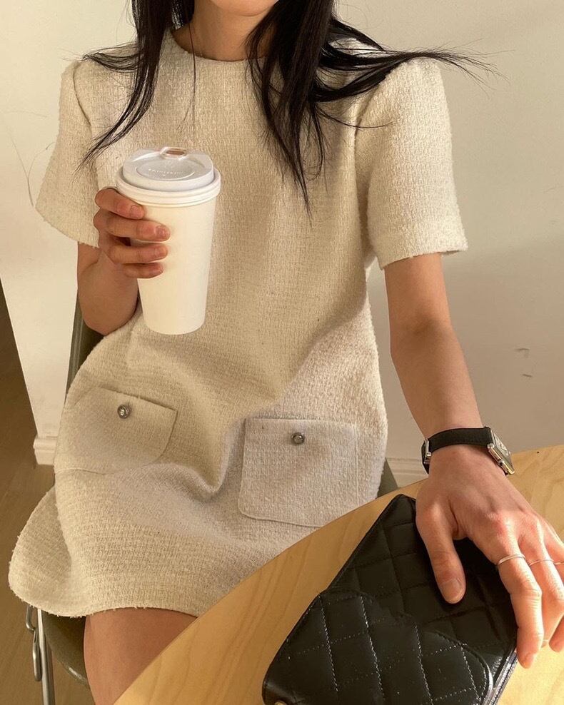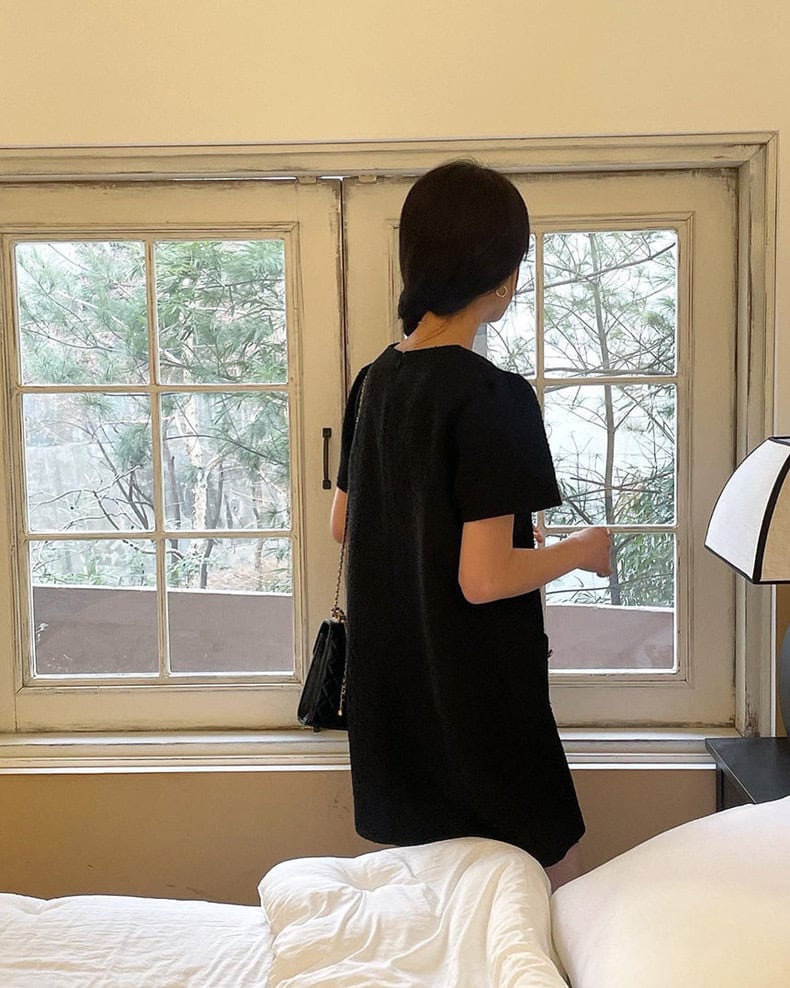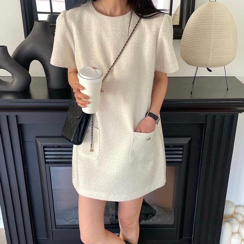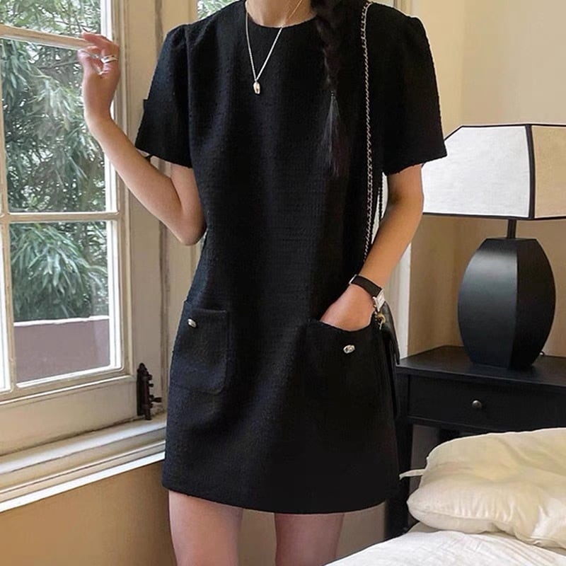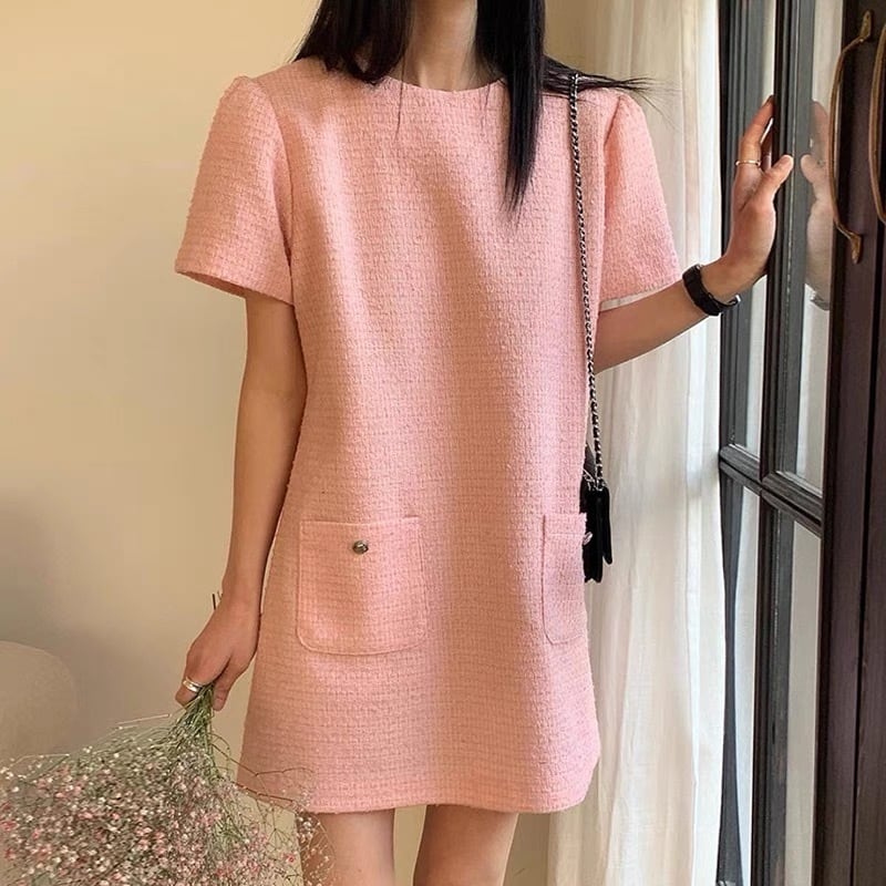 【dress】3色ラウンドネックダブルポケットワンピース XA0005
