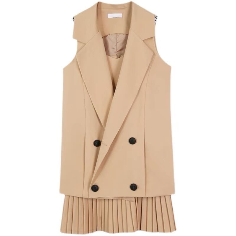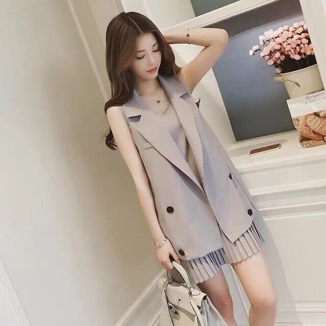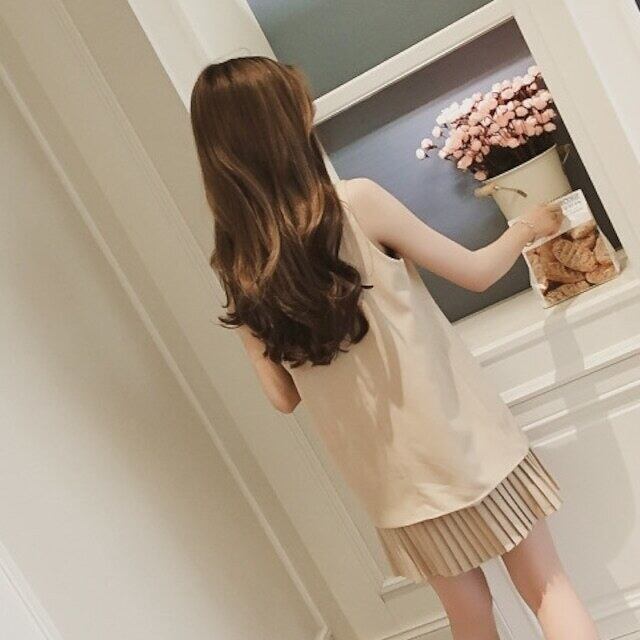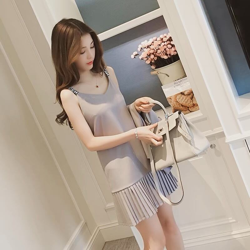 【set】プリーツキャミワンピxベスト2色 XA0011