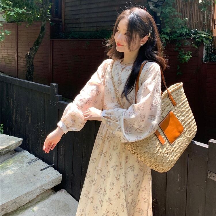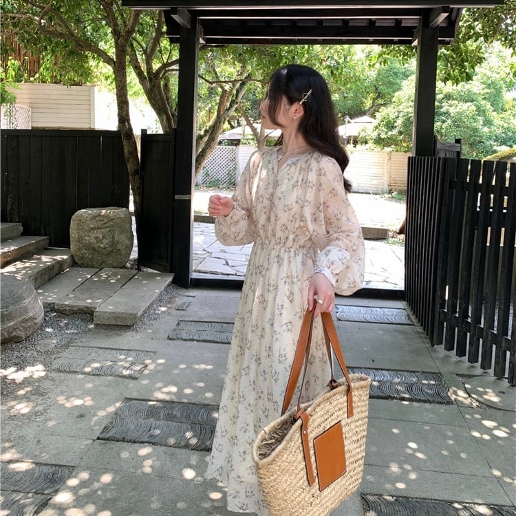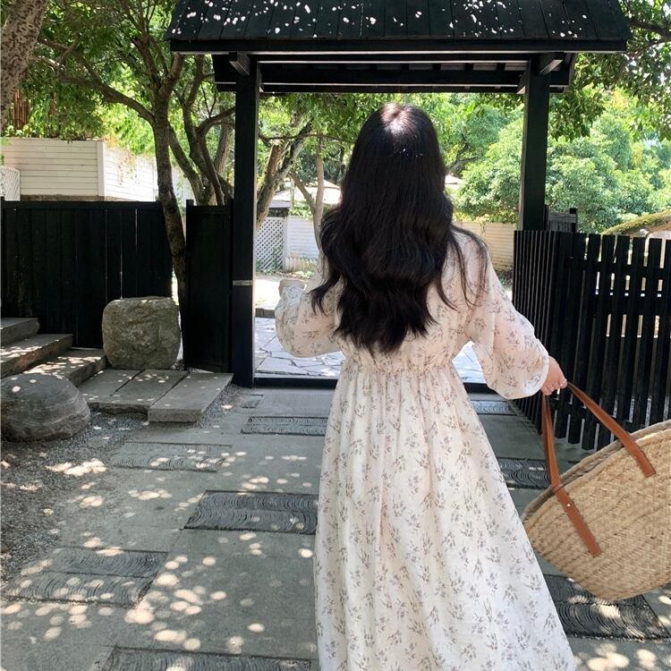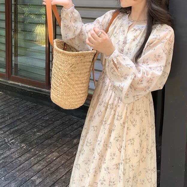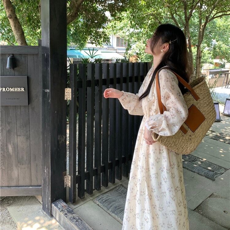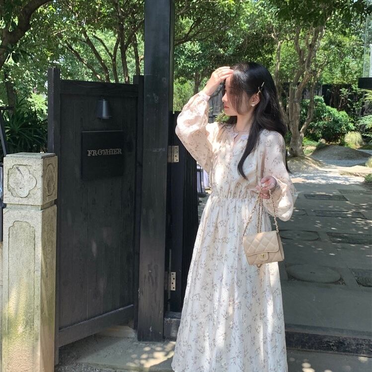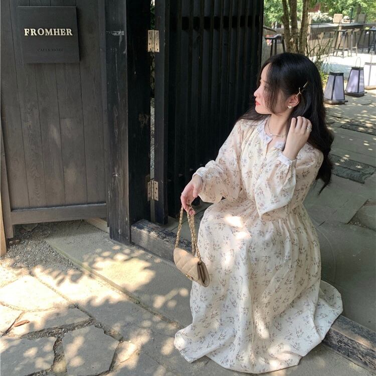 【dress】フラワー柄長袖ワンピース XA3003