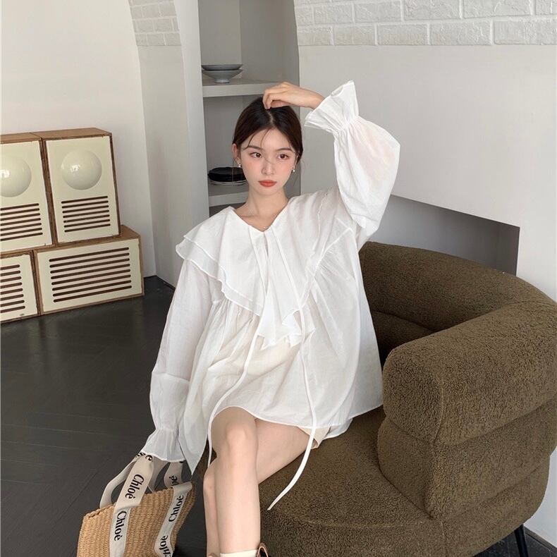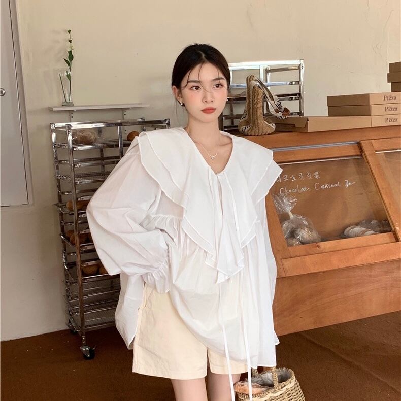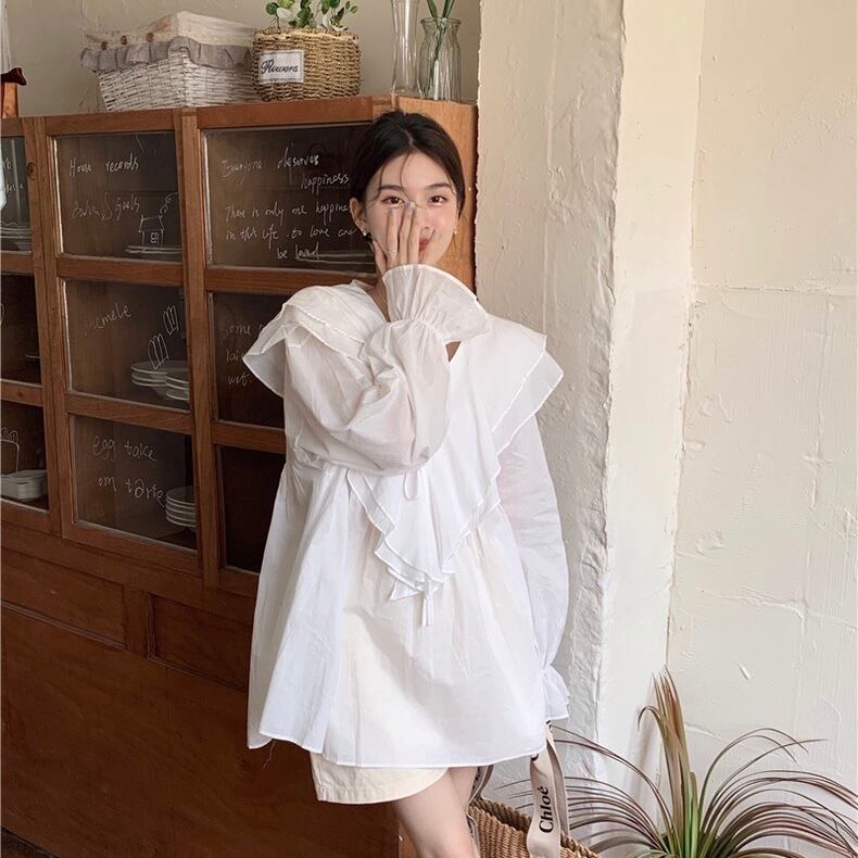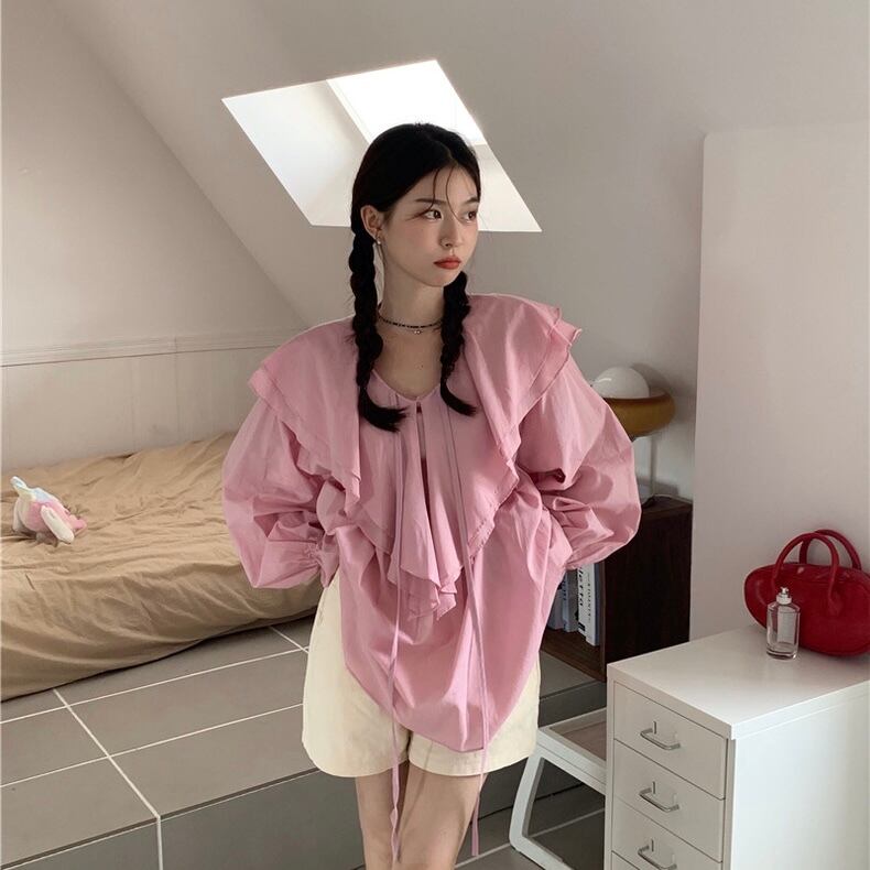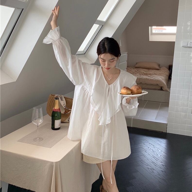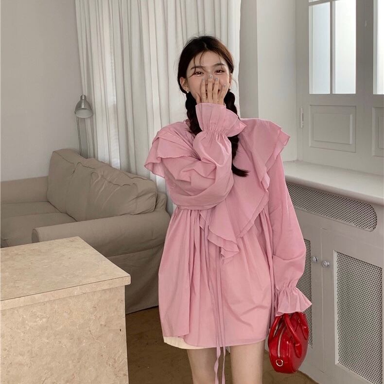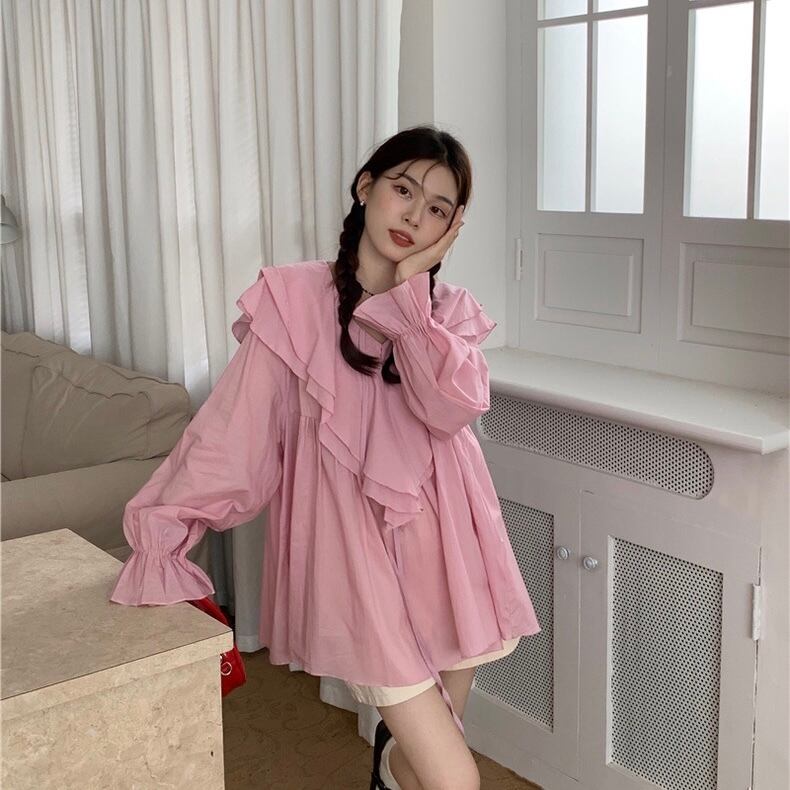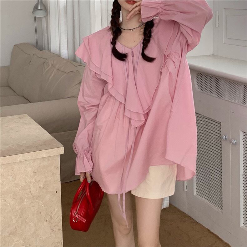 【tops】ラッフルフリルシャツブラウス2色 XA3007